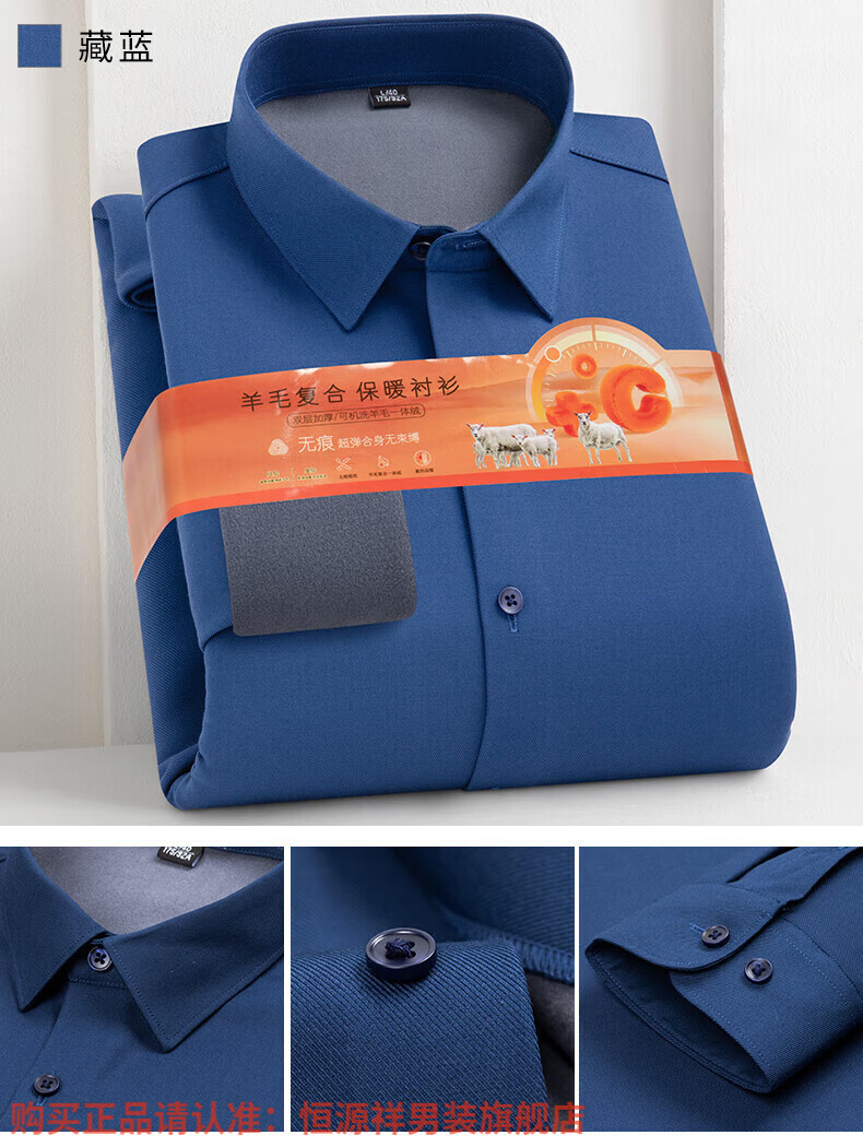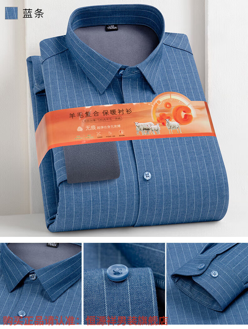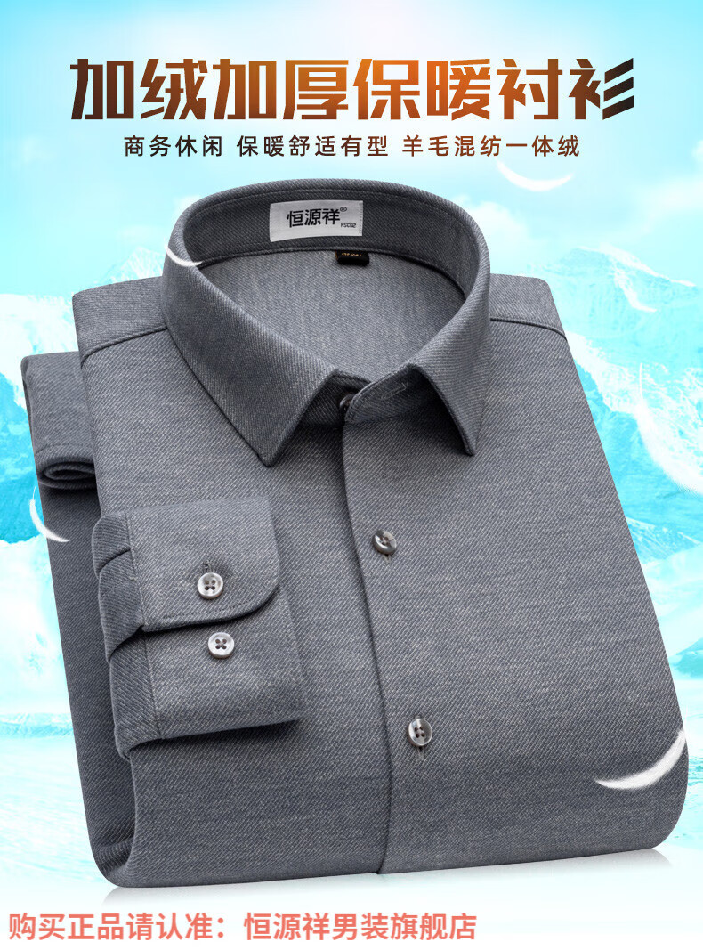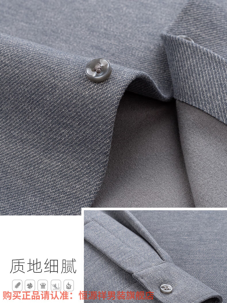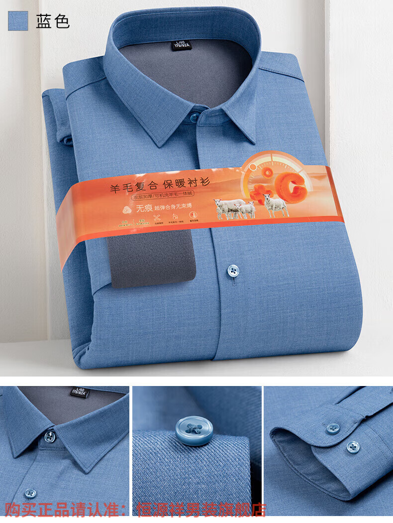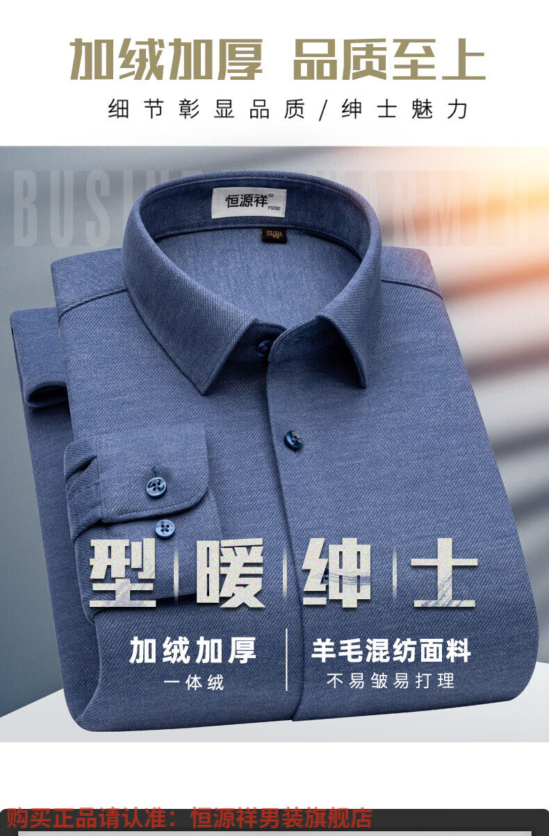 Hengyuanxiang high-end one-piece velvet wool thermal shirt men's autumn and winter velvet thickened solid color long-sleeved warm shirt jacket blue velvet 41 96A