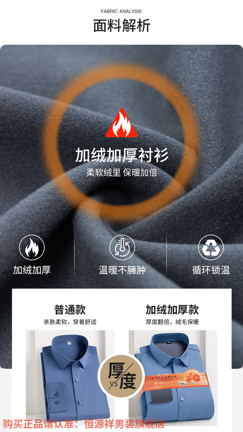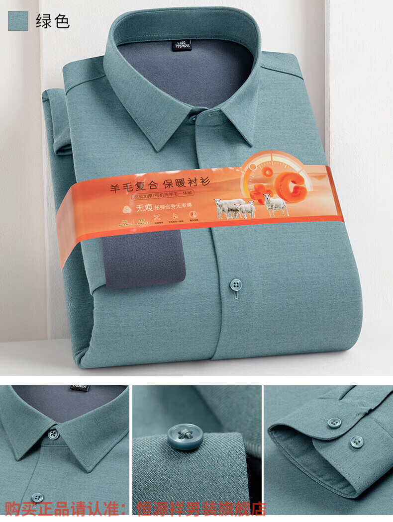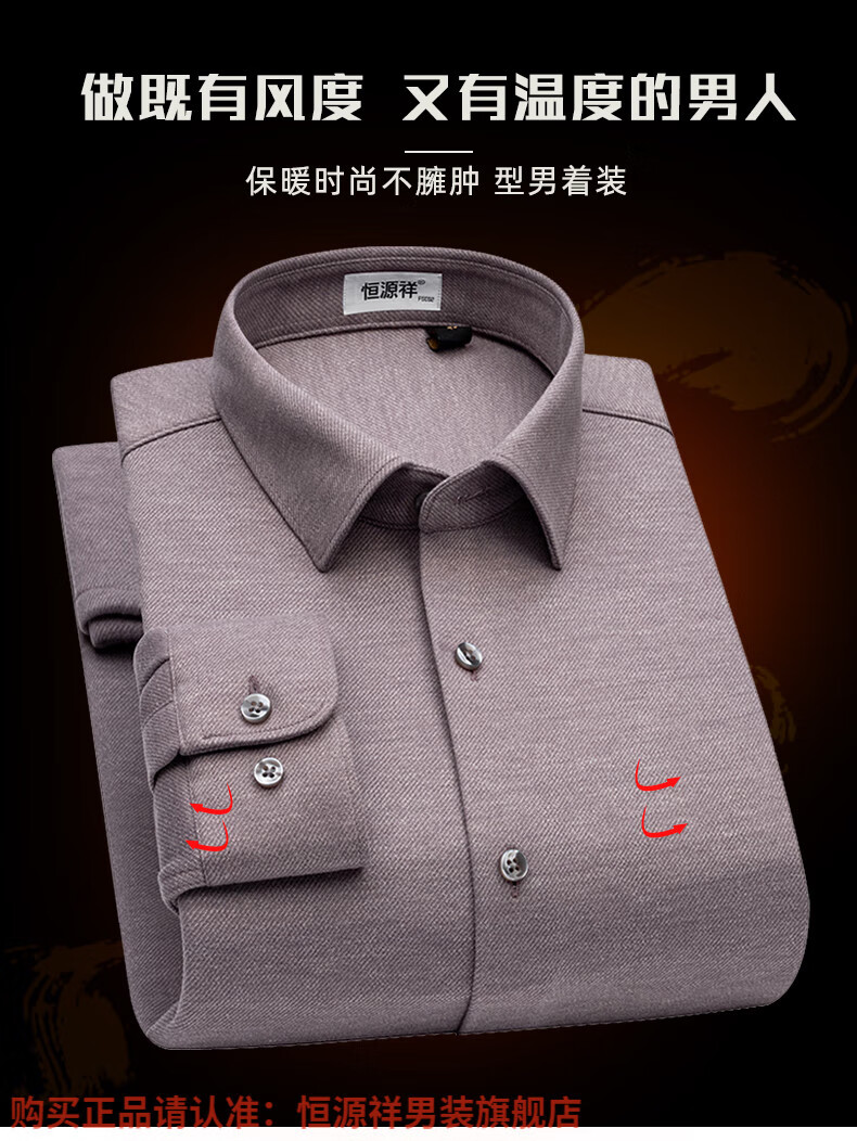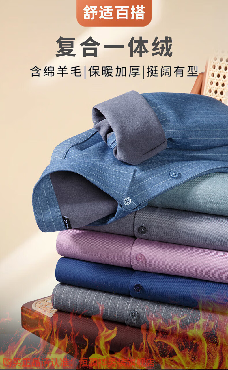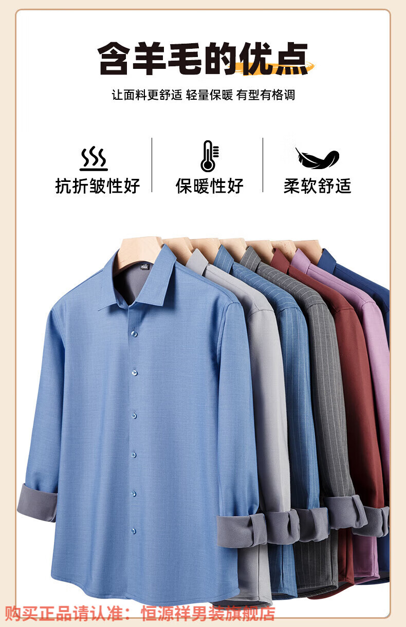Hengyuanxiang high-end one-piece velvet wool thermal shirt men's autumn and winter velvet thickened solid color long-sleeved warm shirt jacket blue velvet 41 96A