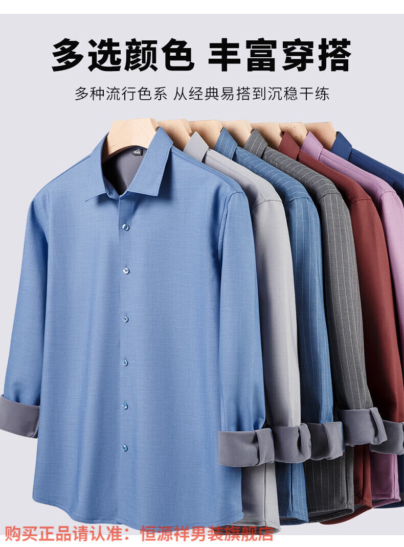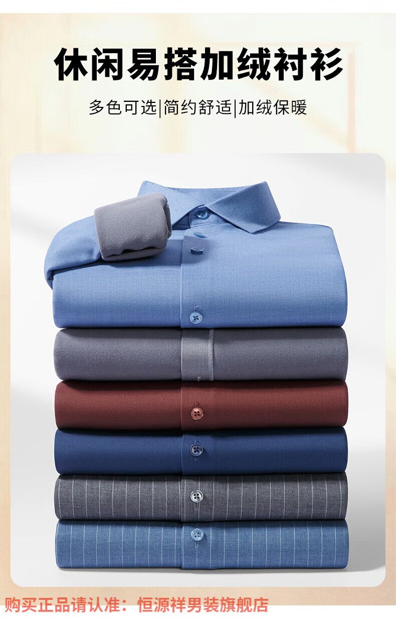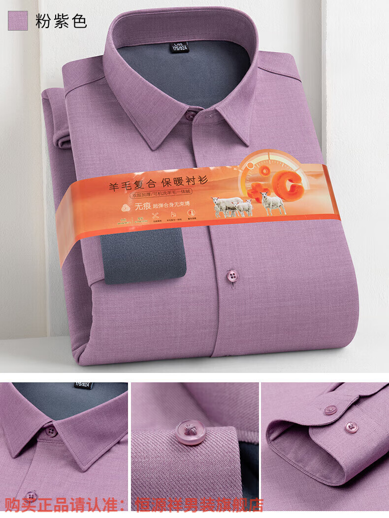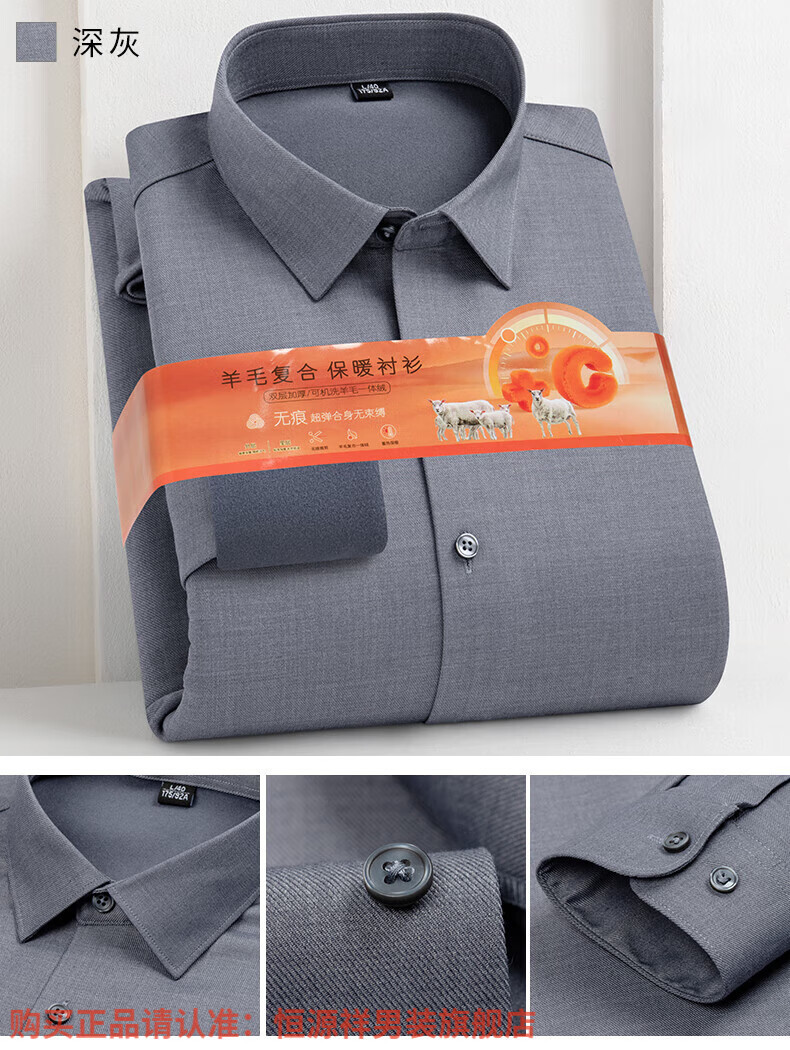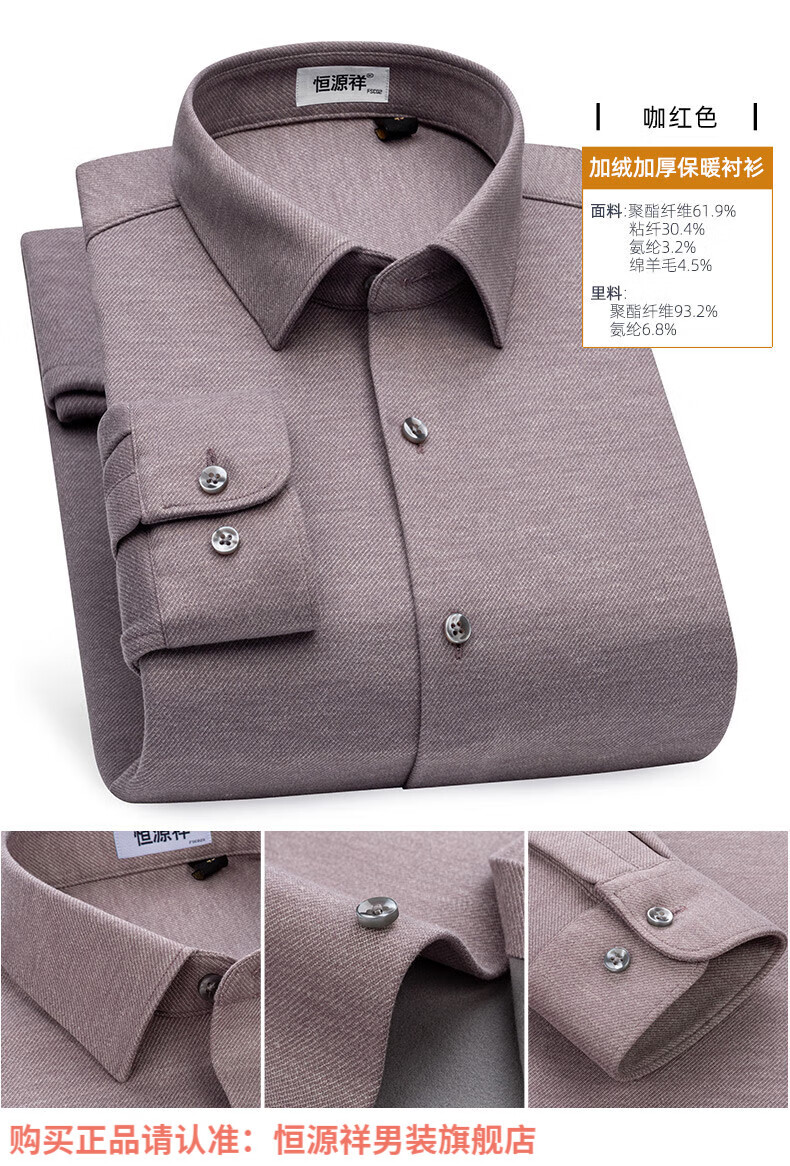 Hengyuanxiang high-end one-piece velvet wool thermal shirt men's autumn and winter velvet thickened solid color long-sleeved warm shirt jacket blue velvet 41 96A