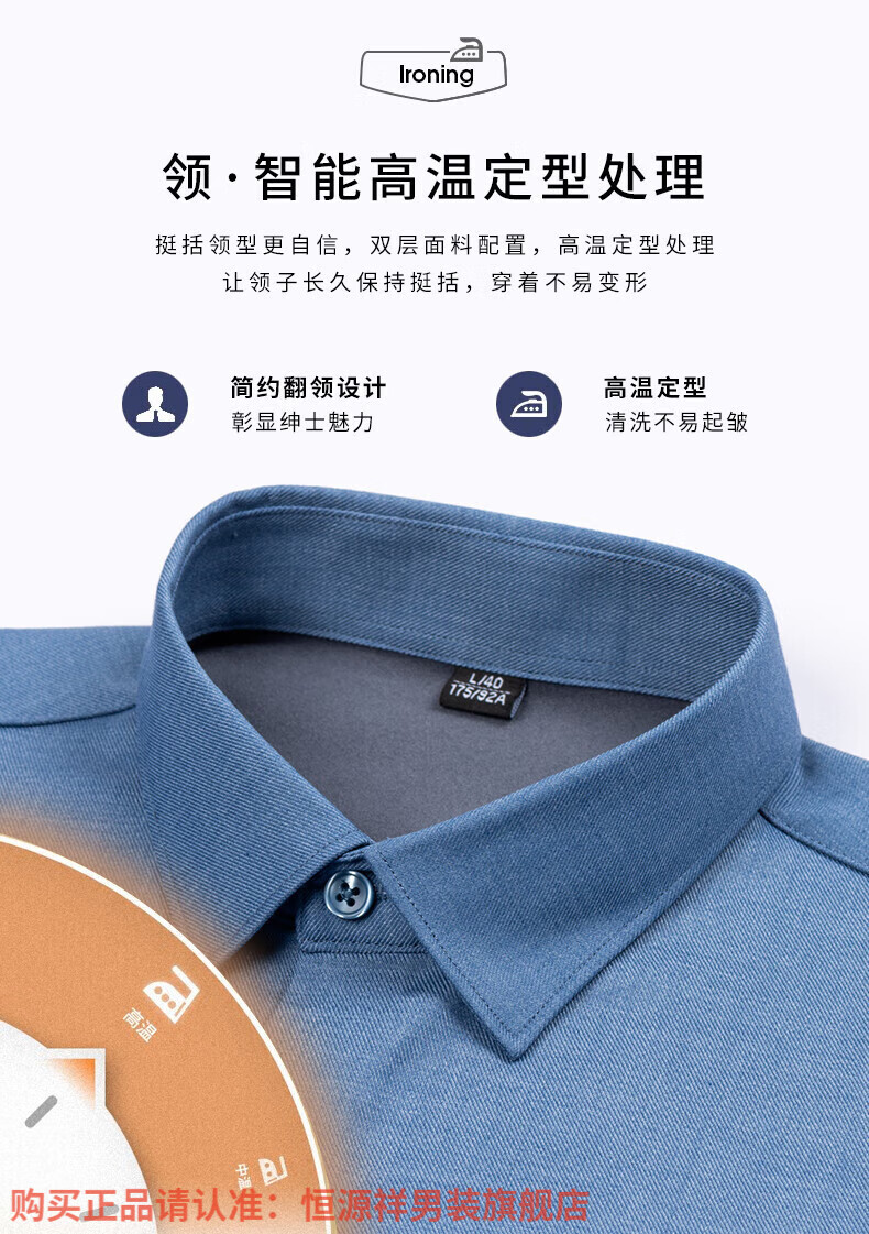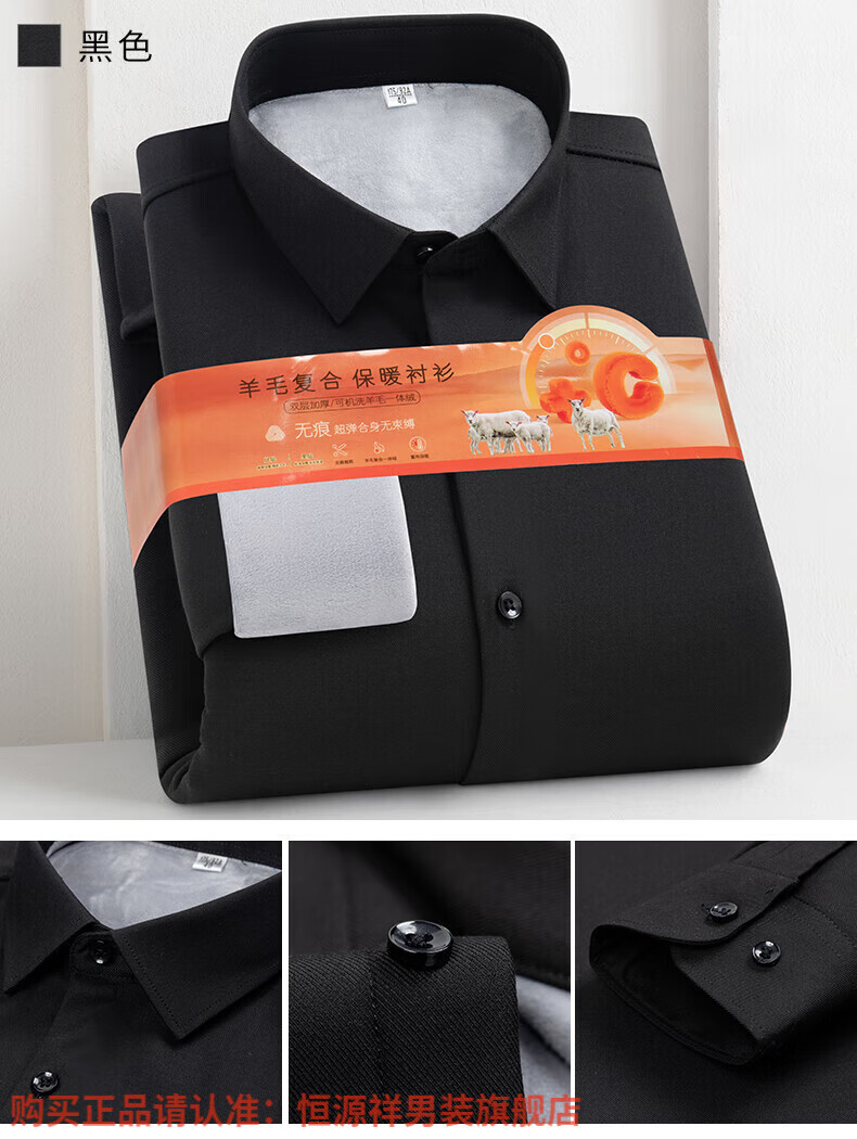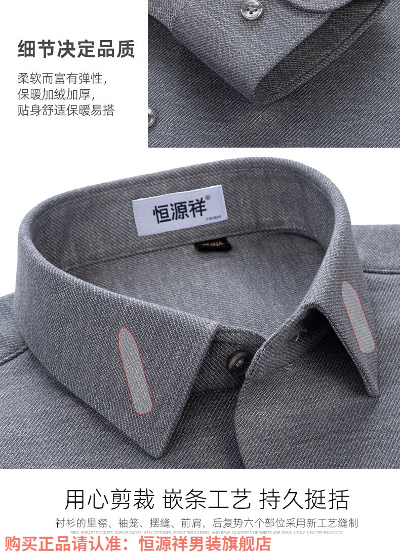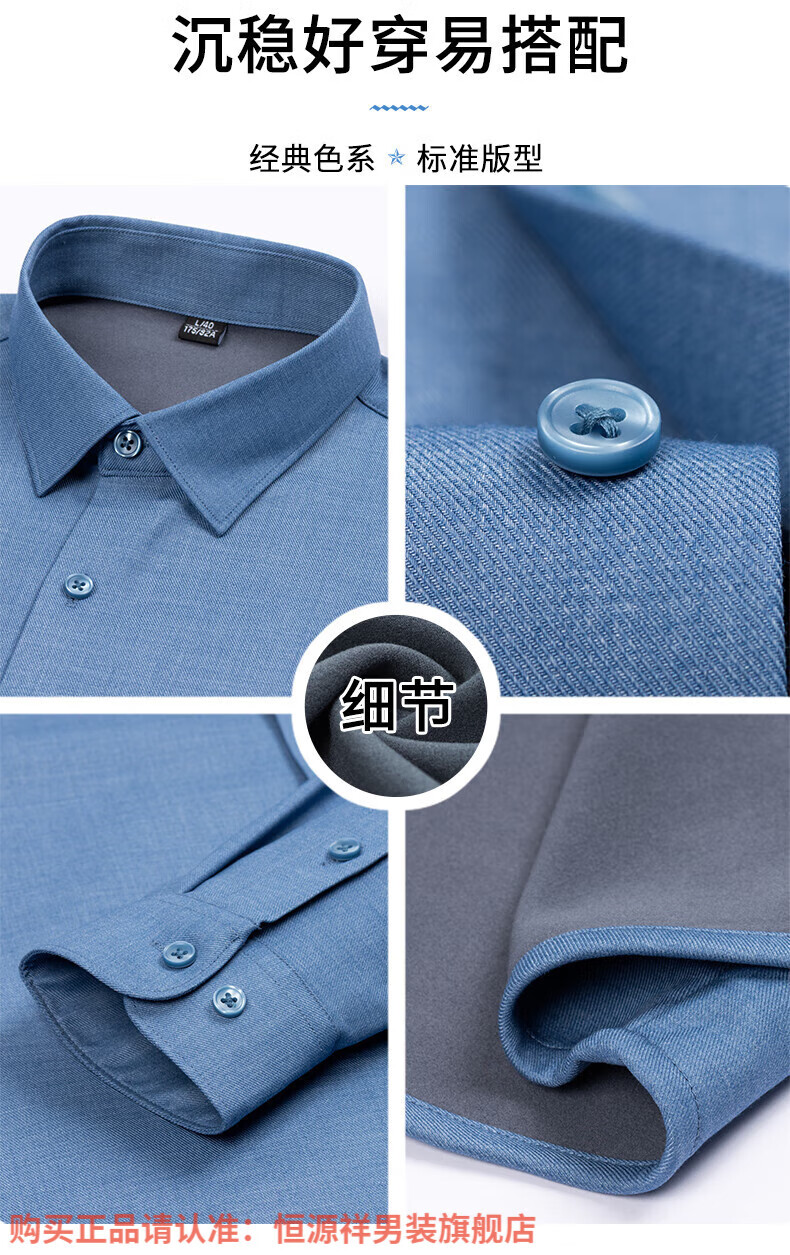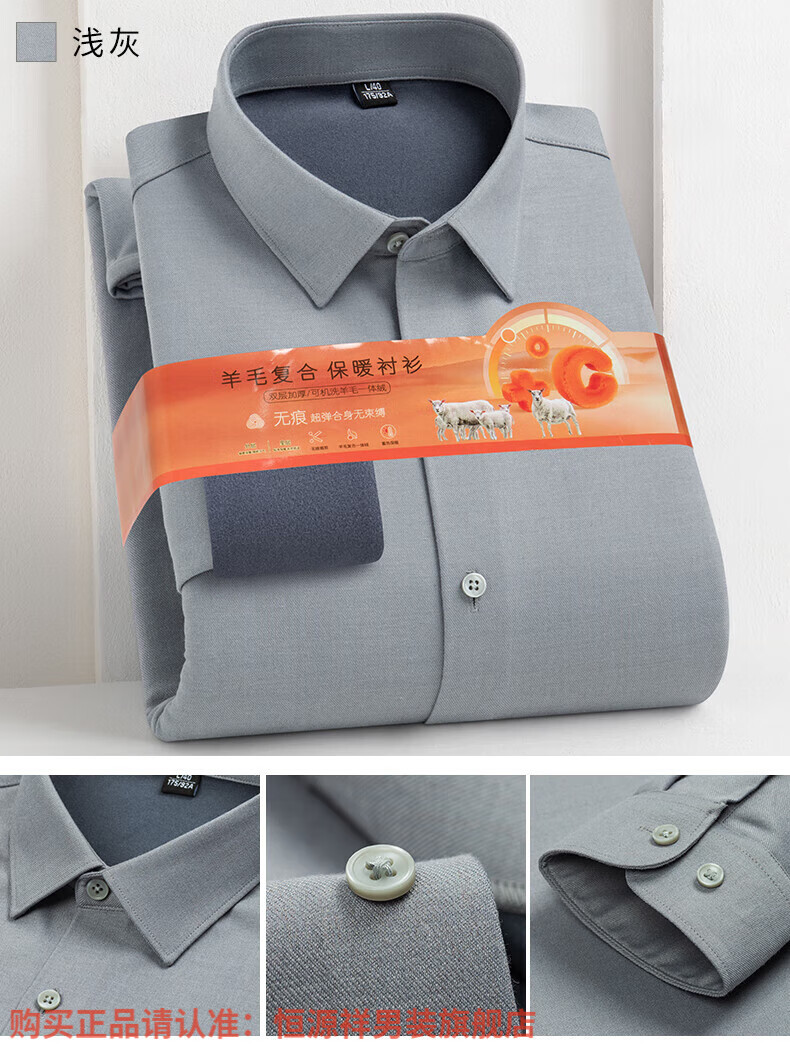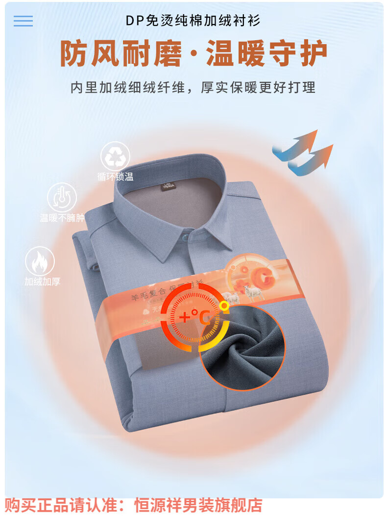 Hengyuanxiang high-end one-piece velvet wool thermal shirt men's autumn and winter velvet thickened solid color long-sleeved warm shirt jacket blue velvet 41 96A