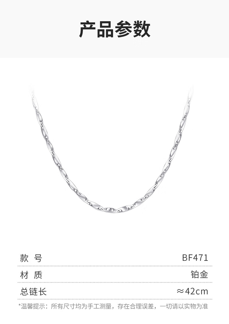 Xie Ruilin (TSL) platinum necklace simple Pt platinum plain chain women's clavicle chain BF471 platinum necklace (about 4.90g)