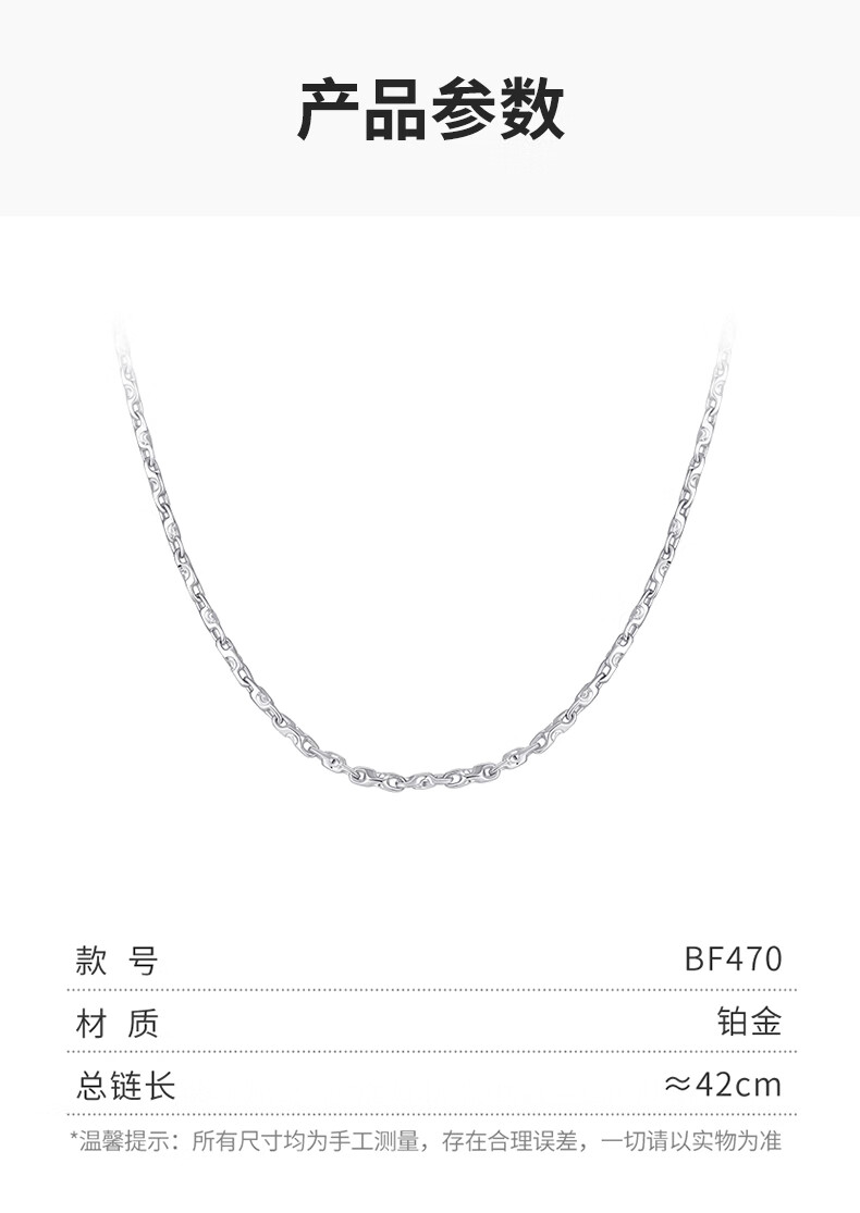 Xie Ruilin (TSL) platinum necklace simple Pt platinum four-corner ingot chain women's clavicle chain BF470 platinum necklace (about 3.8g)
