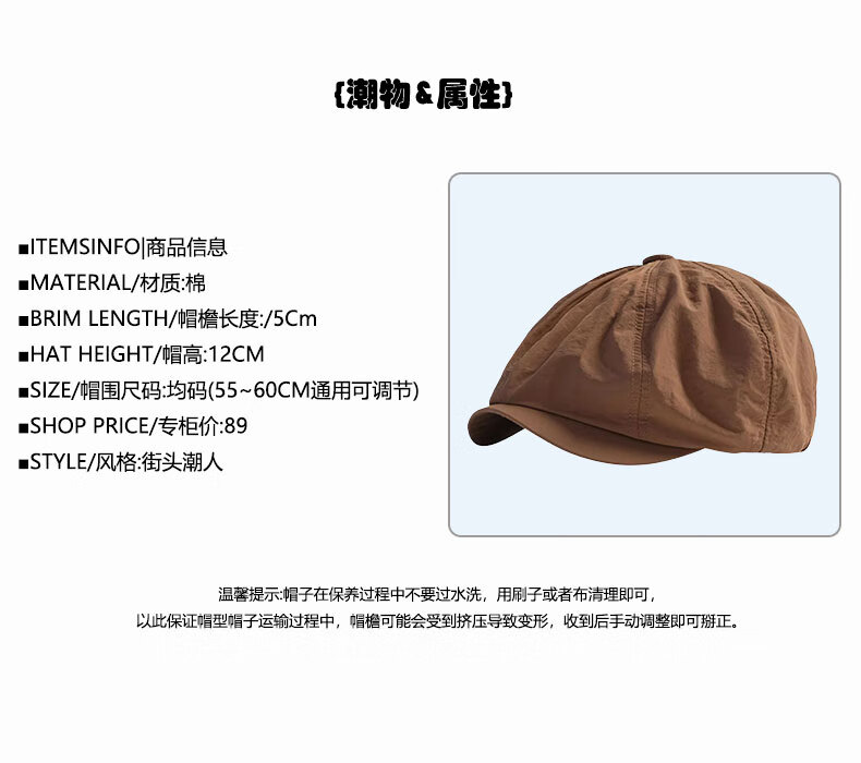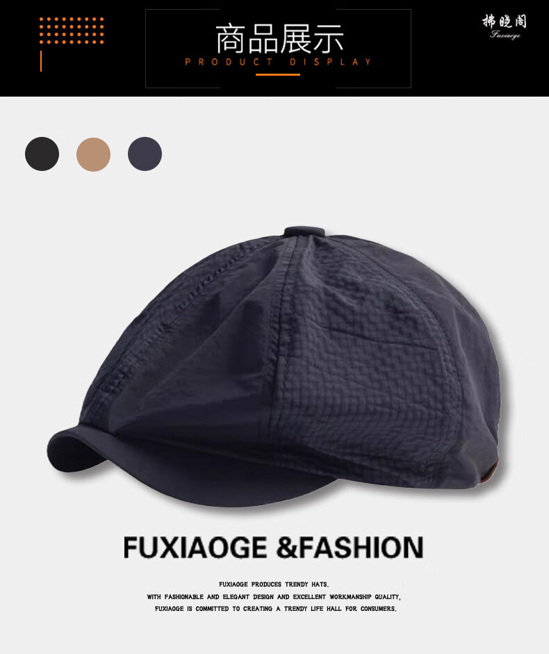 Fuxiaoge (fuxiaoge) American retro quick-drying forward hat men's octagonal hat men's newsboy hat painter hat beret female khaki quick-drying breathable forward hat FXG1015 one size adjustable