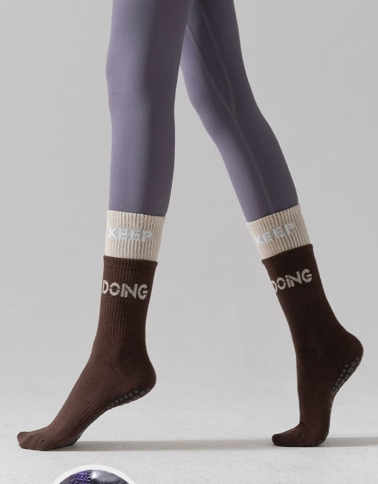 German quality yoga socks, non-slip, breathable, deodorant, sports and fitness training, split-toe mid-tube Pilates for women, silicone non-slip - gray powder + pink rice