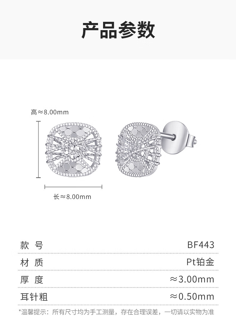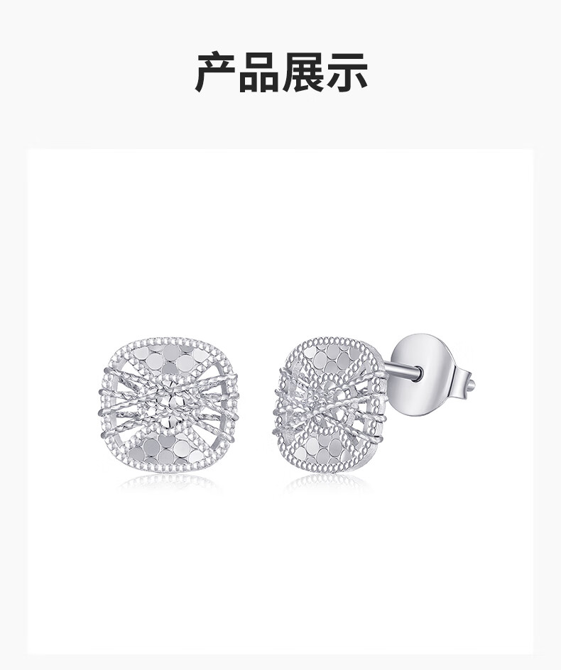 Xie Ruilin (TSL) platinum earrings square simple Pt platinum earrings women's earrings BF443 pair (about 2.0g)