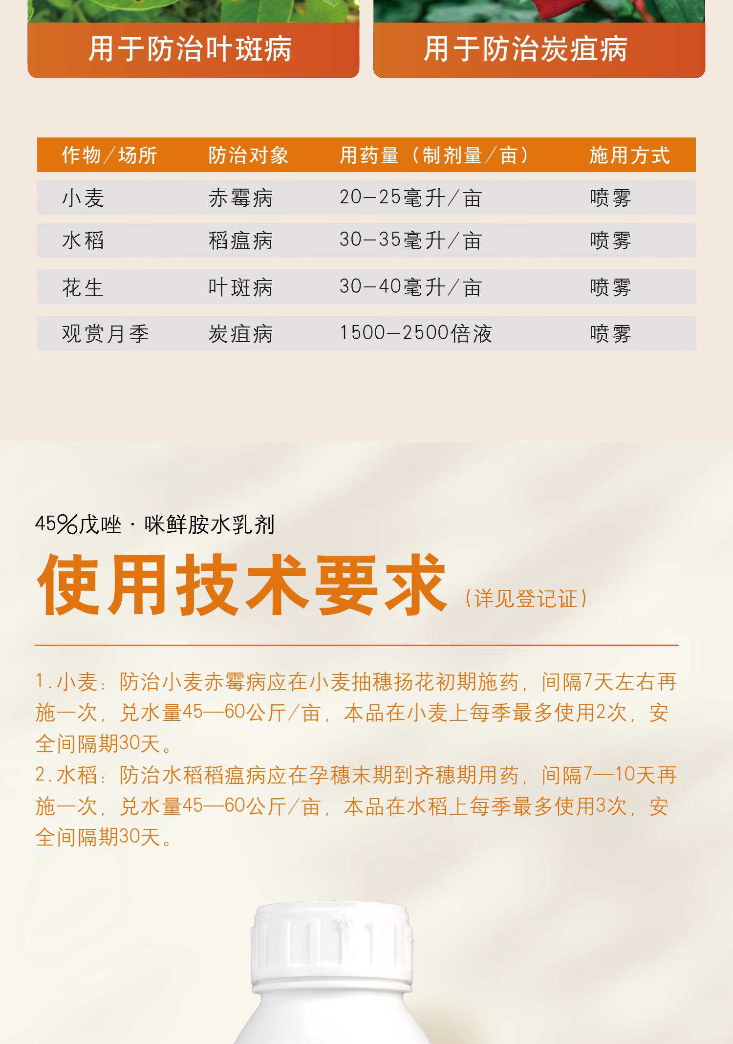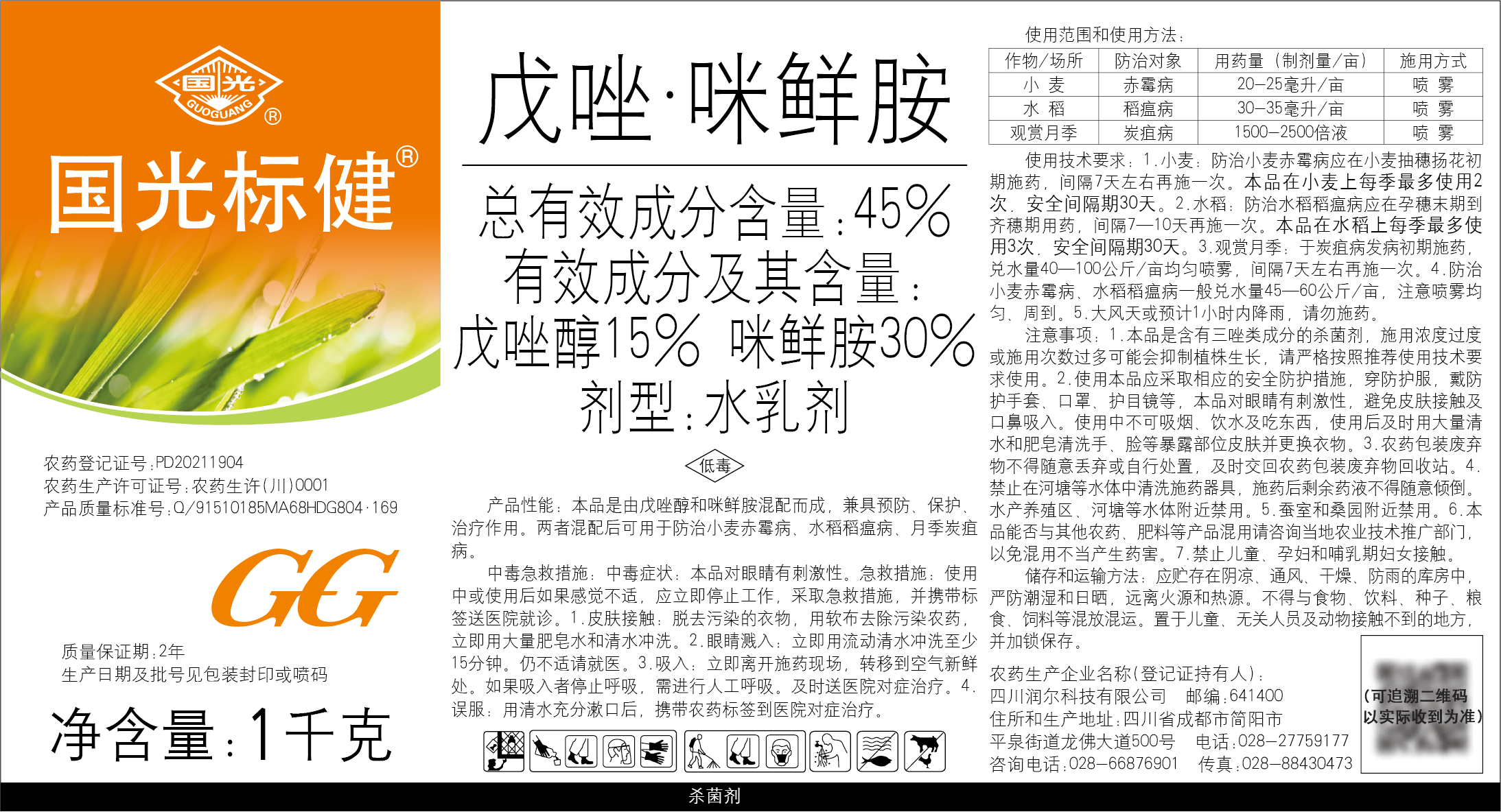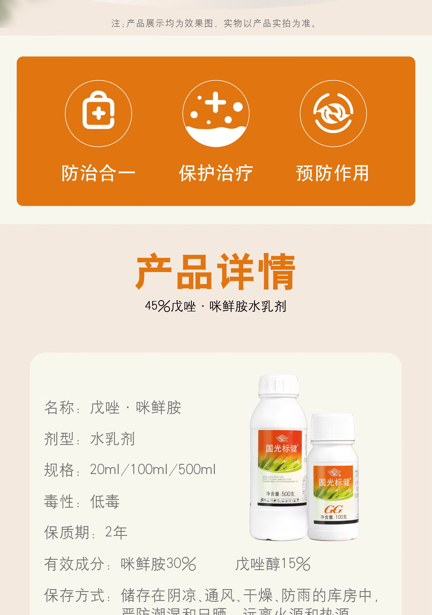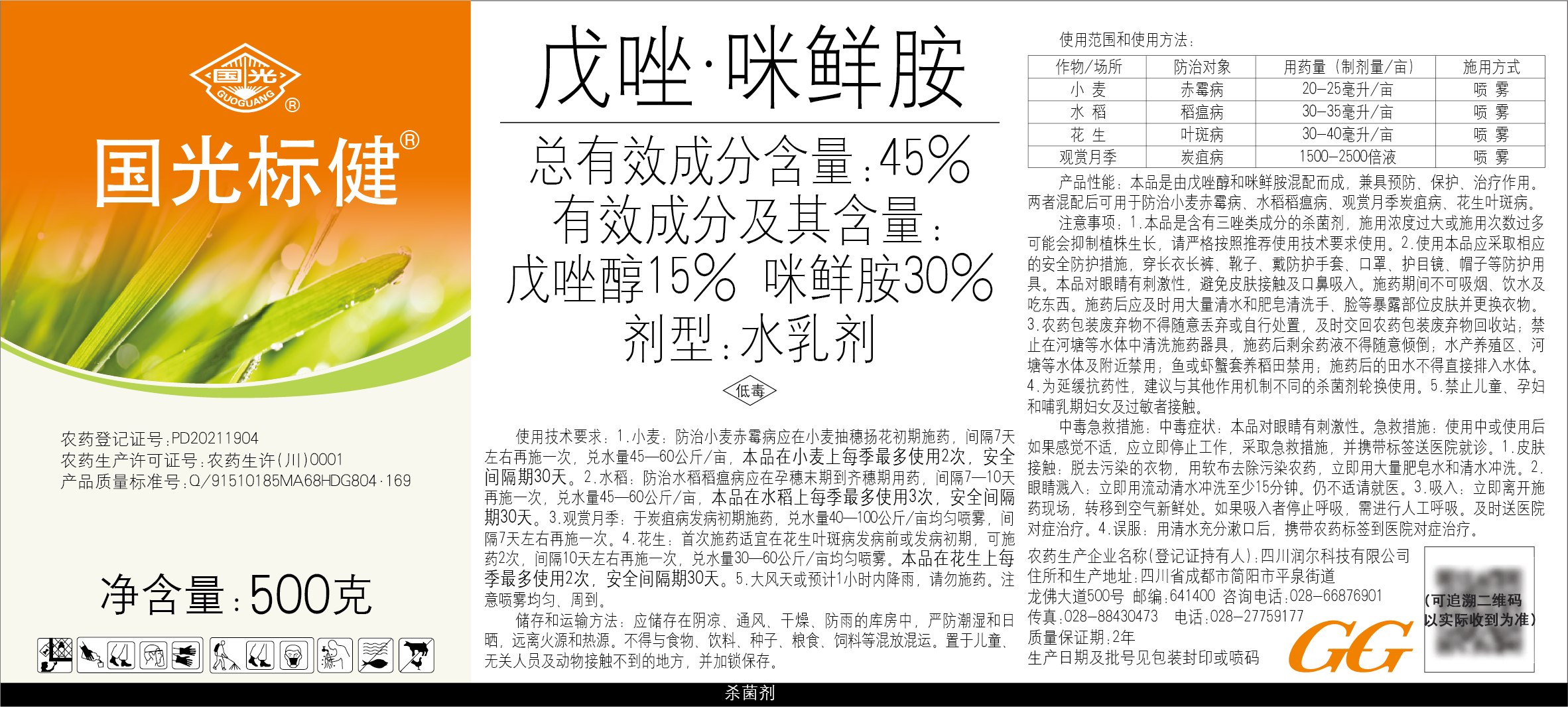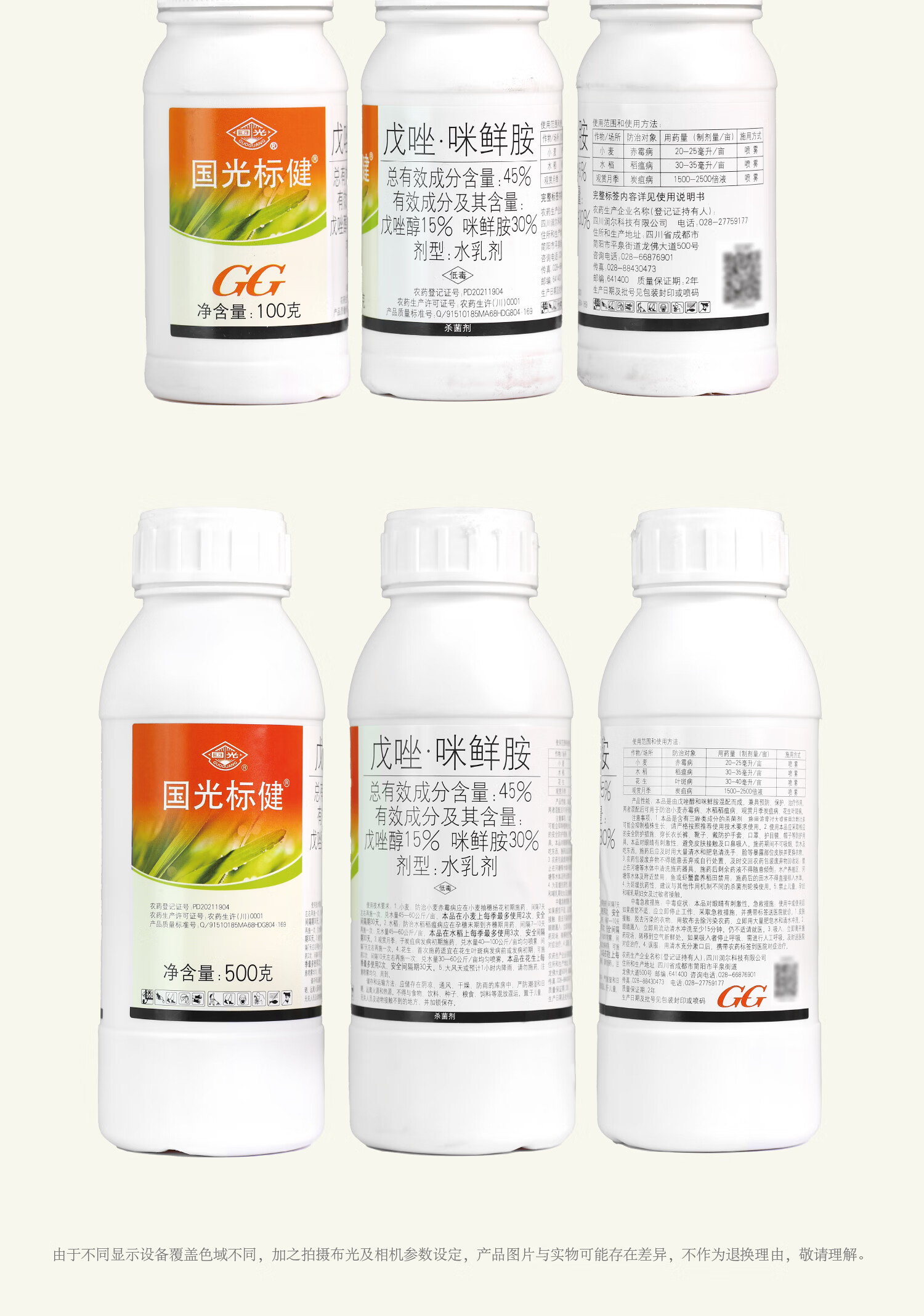 Guoguang Biaojian 45% tebuconazole prochloraz, rose fruit tree, wheat scab, anthracnose fungicide pesticide 500ml