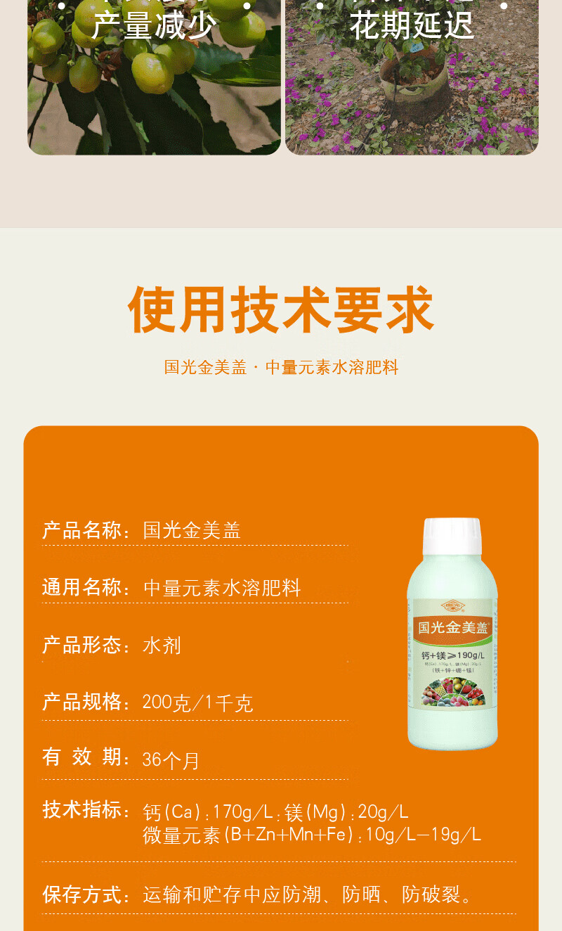 Guoguang Jinmeigai calcium magnesium boron zinc iron medium element water soluble fertilizer fertilization genuine fruit tree promotes root expansion 1kg