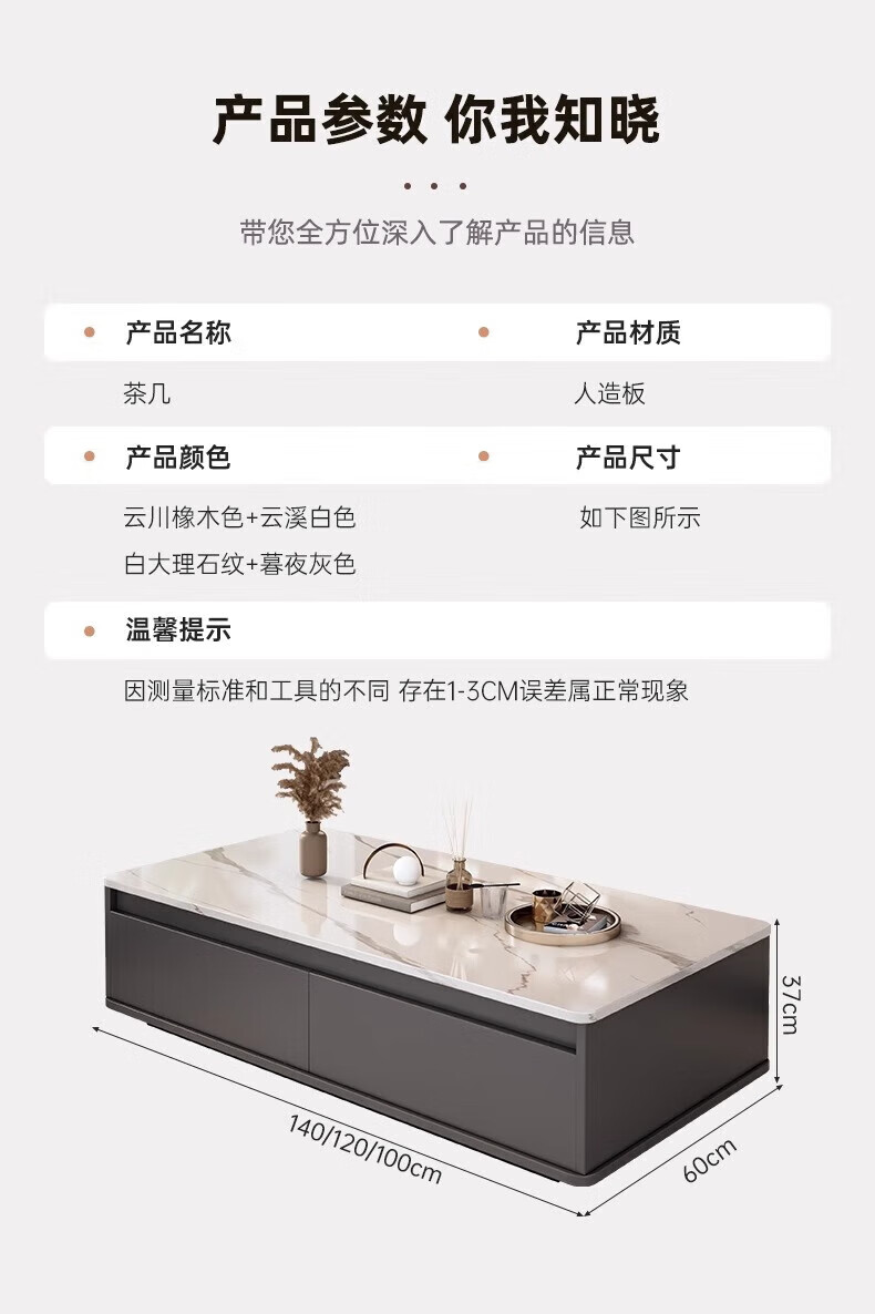 Coffee table for living room home 2025 new light luxury small apartment modern simple creative square coffee table table Muye dark gray 120*60*37cm