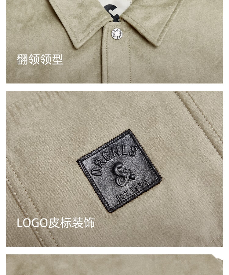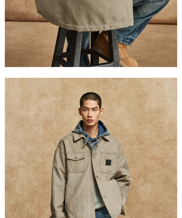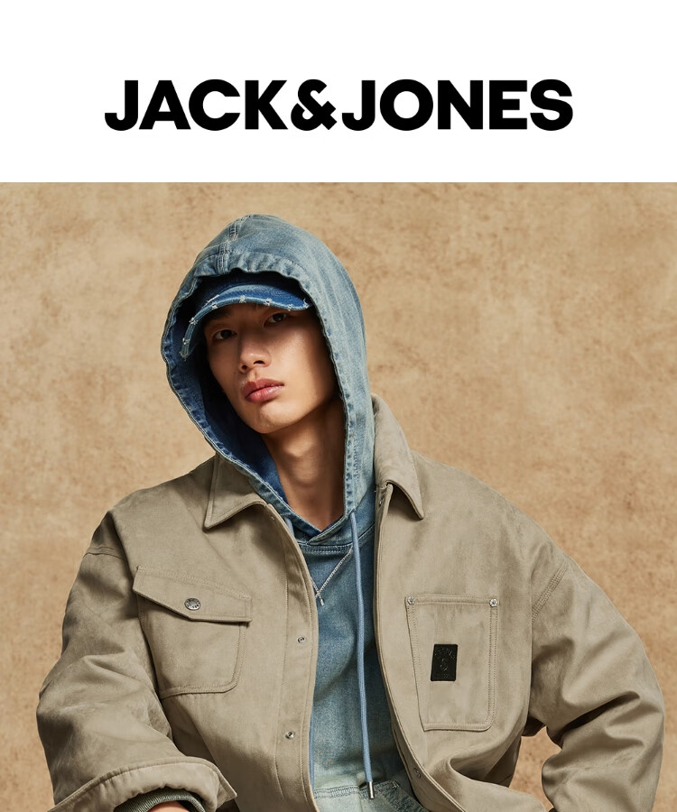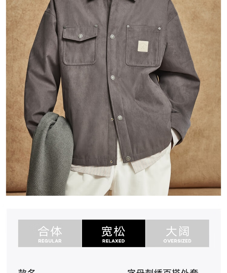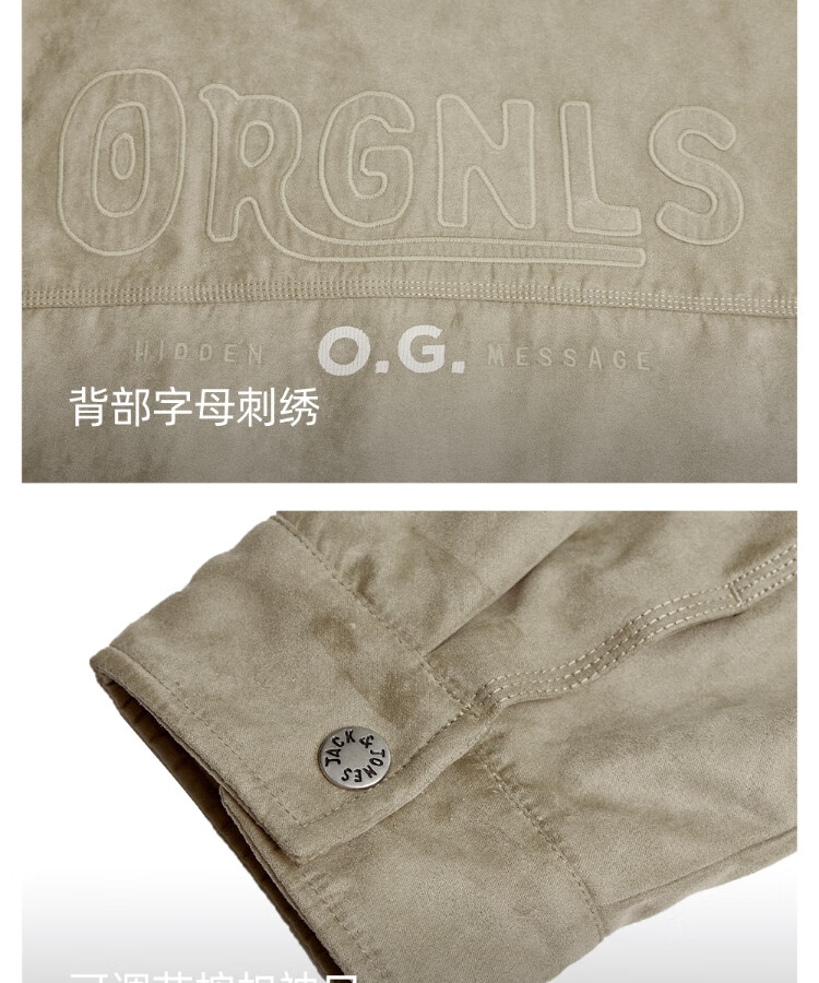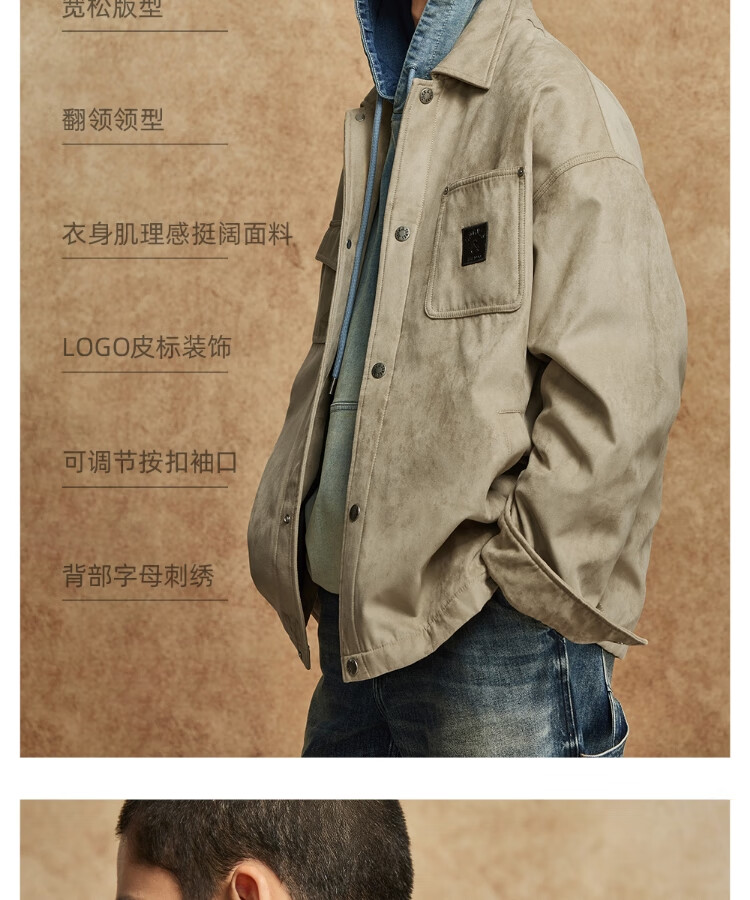 JACK&JONES Men's Spring Cotton Clothes Loose Lapel Very Wide Fit Workwear Pocket Letters Embroidered Jacket 225409039 E11 Khaki M (175)