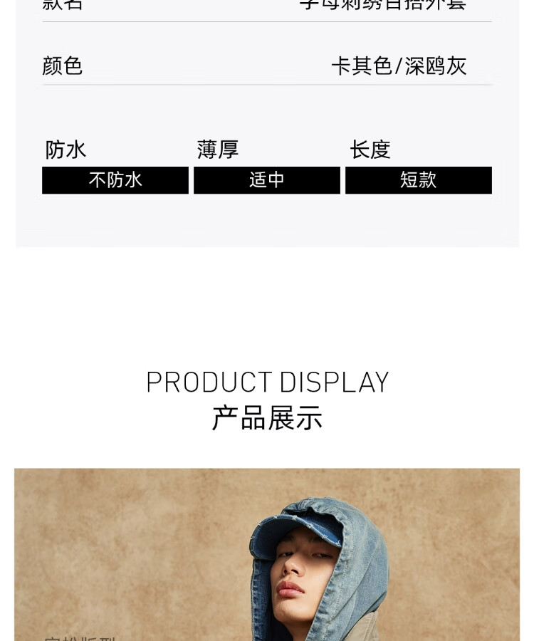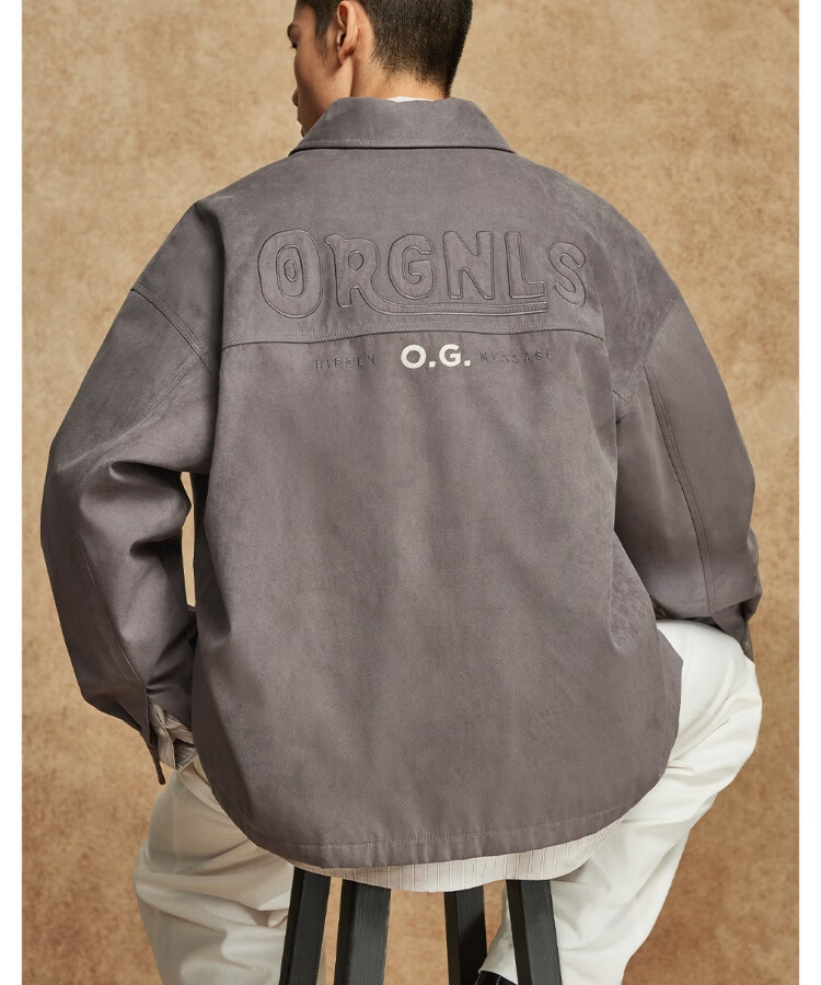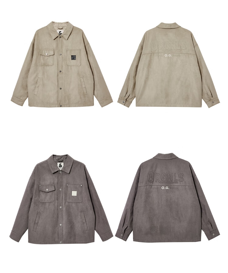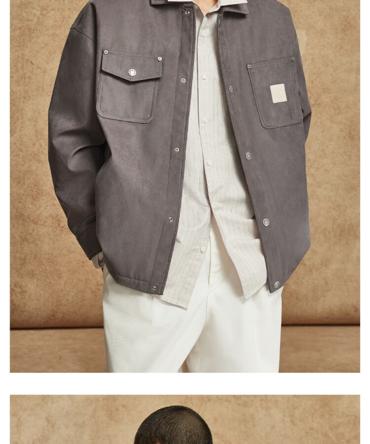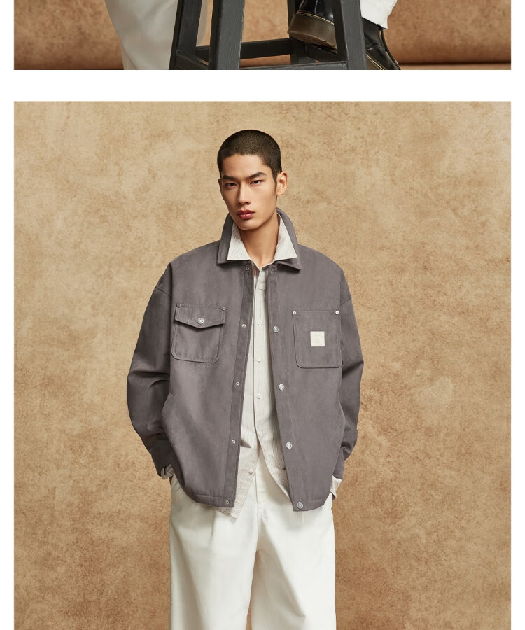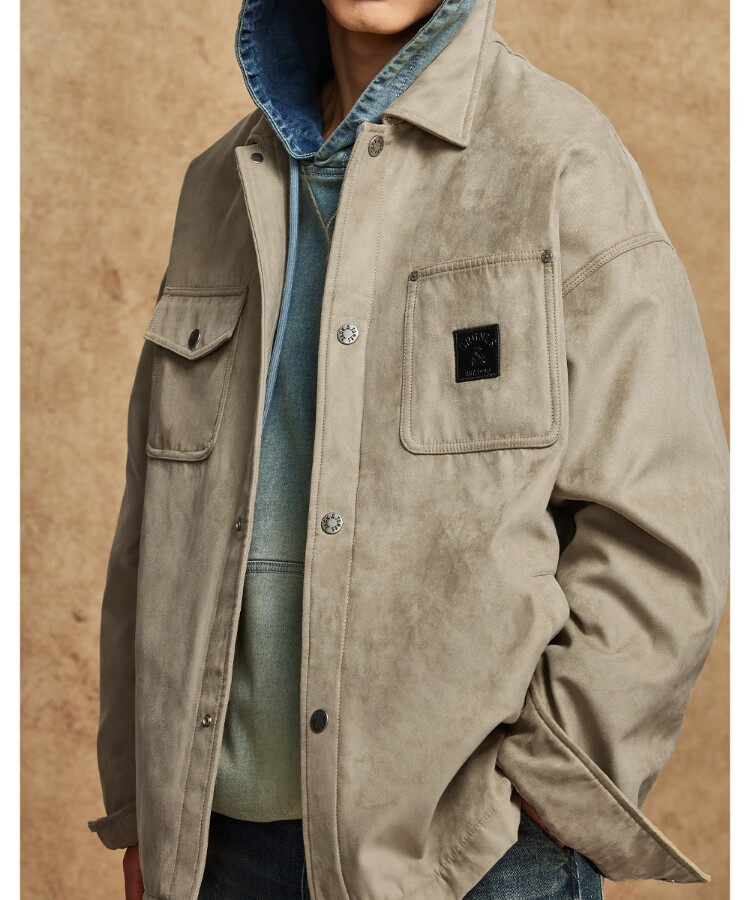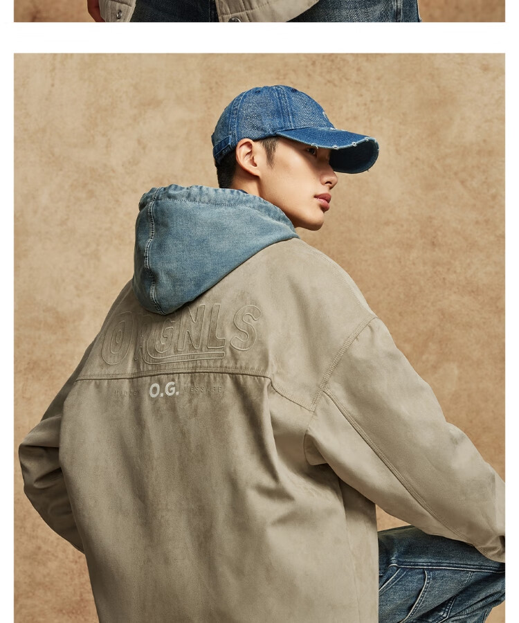 JACK&JONES Men's Spring Cotton Clothes Loose Lapel Very Wide Fit Workwear Pocket Letters Embroidered Jacket 225409039 E11 Khaki M (175)