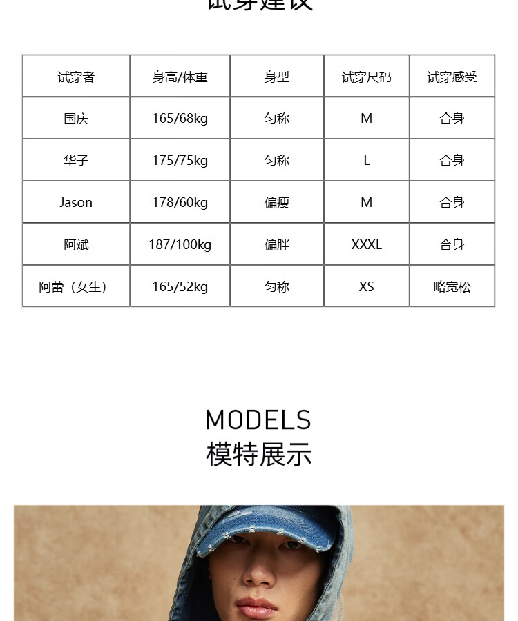 China (cm) 165 / 88-90 170 / 96-98 175 / 108-110 180 / 118-122 185 / 126-130