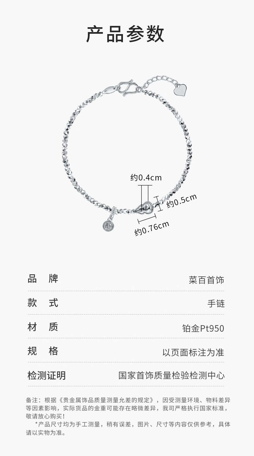 Caibai Jewelry Platinum Bracelet Pt950 Platinum Fashionable Bundi Beads Fu Brand Chinese Style Gourd Bracelet Priced BJ Platinum Bracelet About 5.32g About 17cm