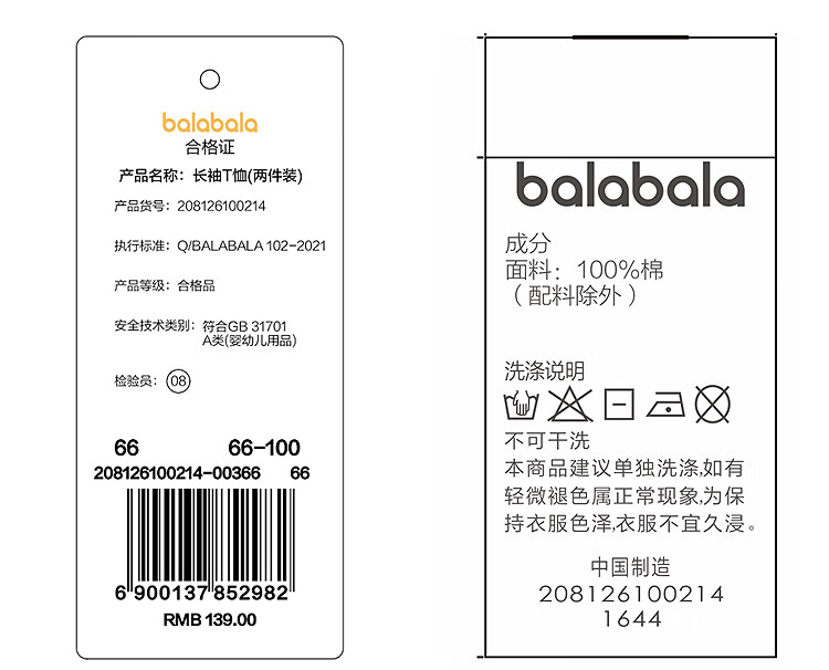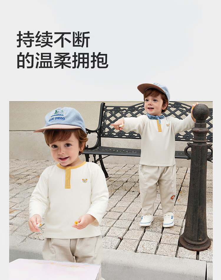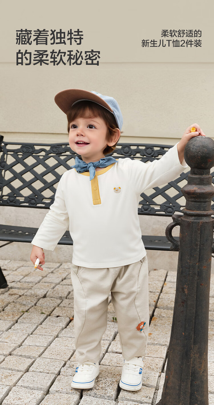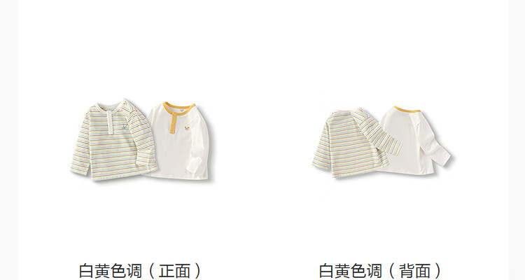 BALABALA 2-piece children's clothing baby long-sleeved cotton T-shirt boys and girls bottoming shirt baby top simple, fresh and trendy coffee green stripes + pure white T-shirt pure cotton two-piece set 100