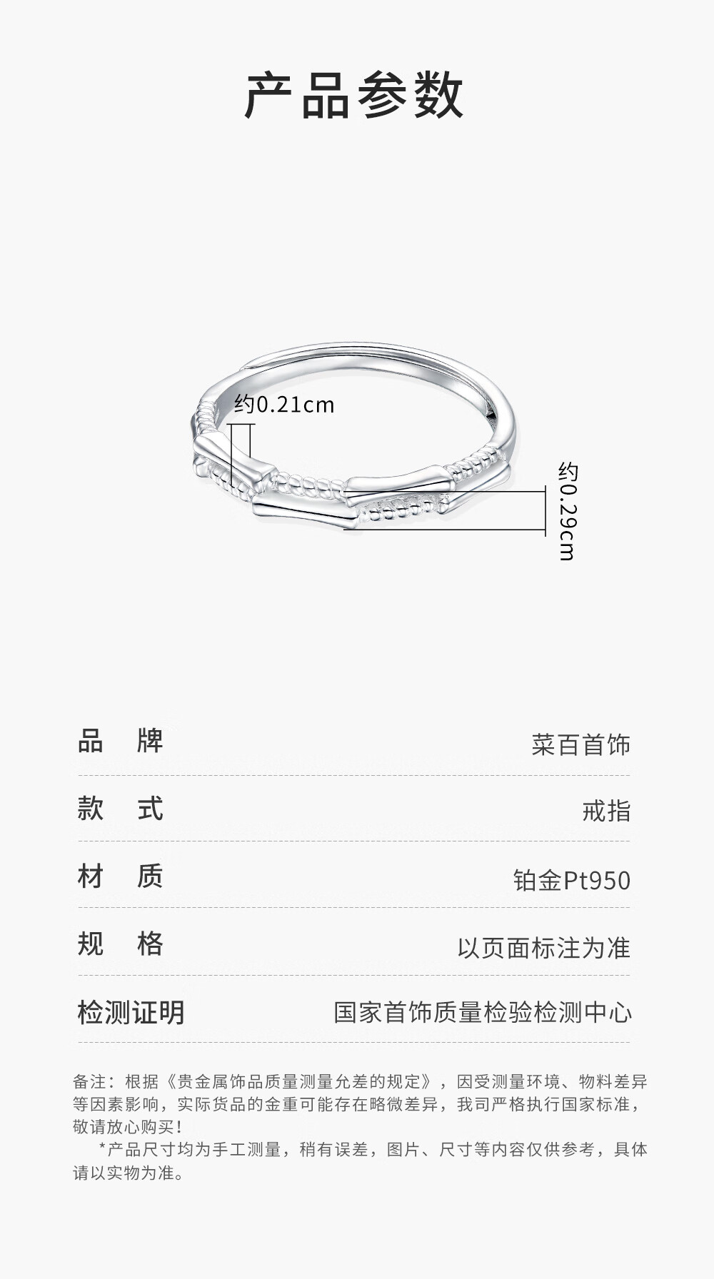 Caibai Jewelry Platinum Ring Pt950 Fashion Bamboo Splicing Ring Versatile Fashion Living Ring Price BJ Platinum Ring Approximately 2.68g
