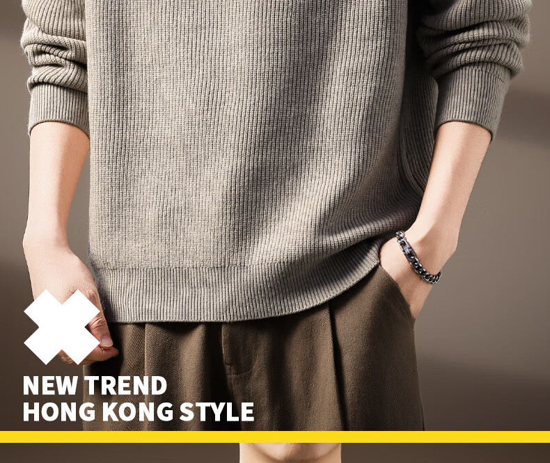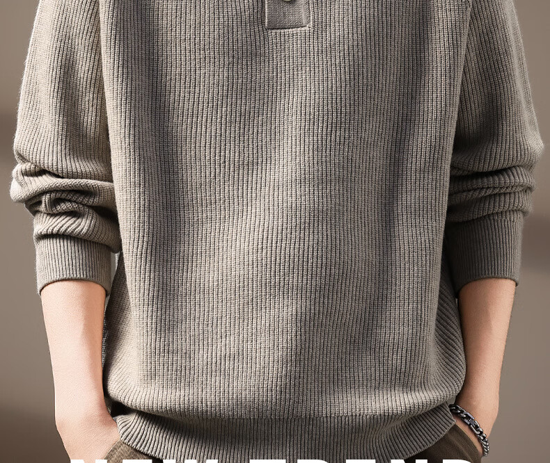 OLJ high-end luxury brand sweater men's high-end Henry collar sweater autumn and winter new style lazy loose long-sleeved base oatmeal color M suitable for 110-130Jin Jin equals 0.5 kg