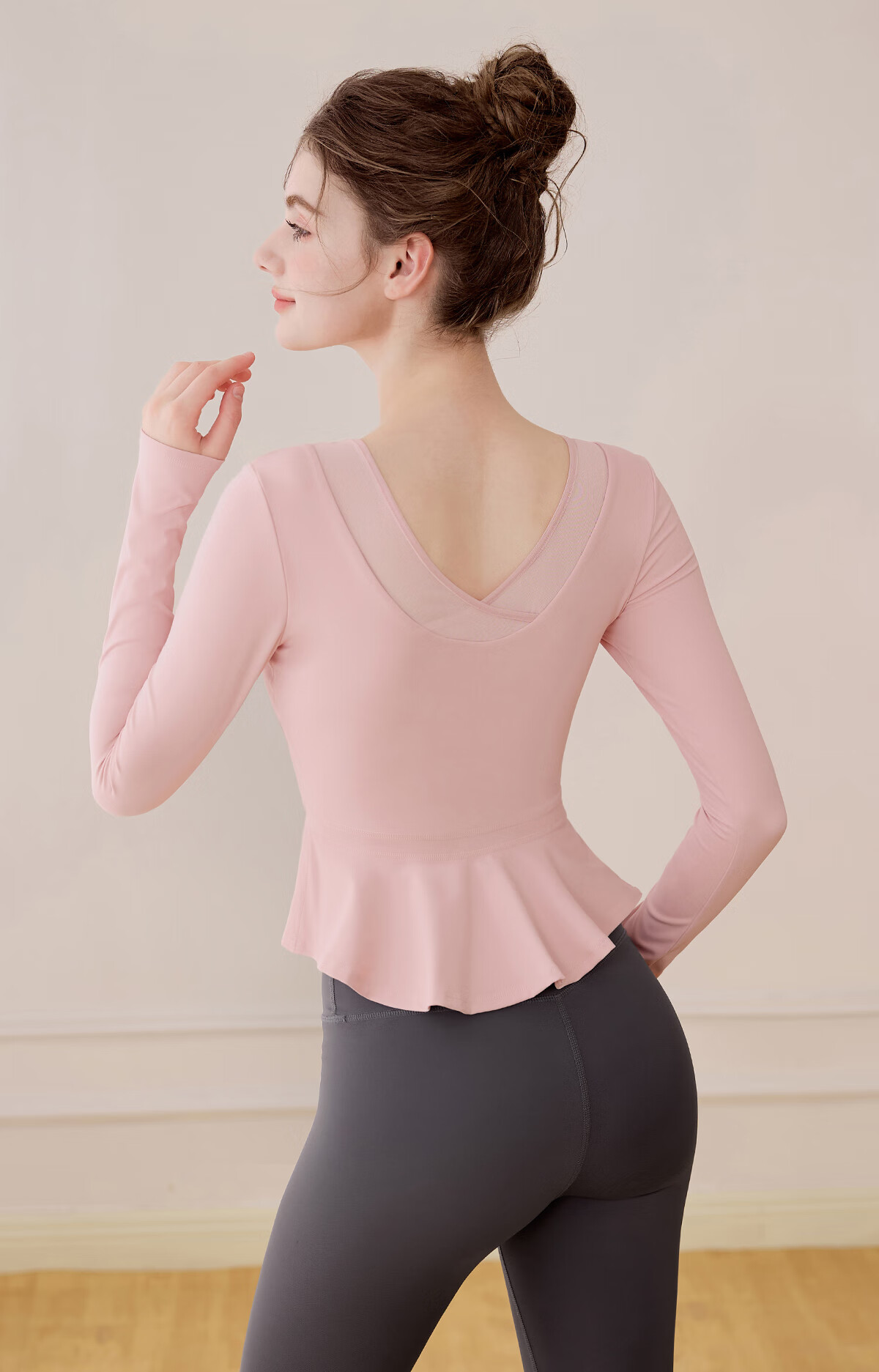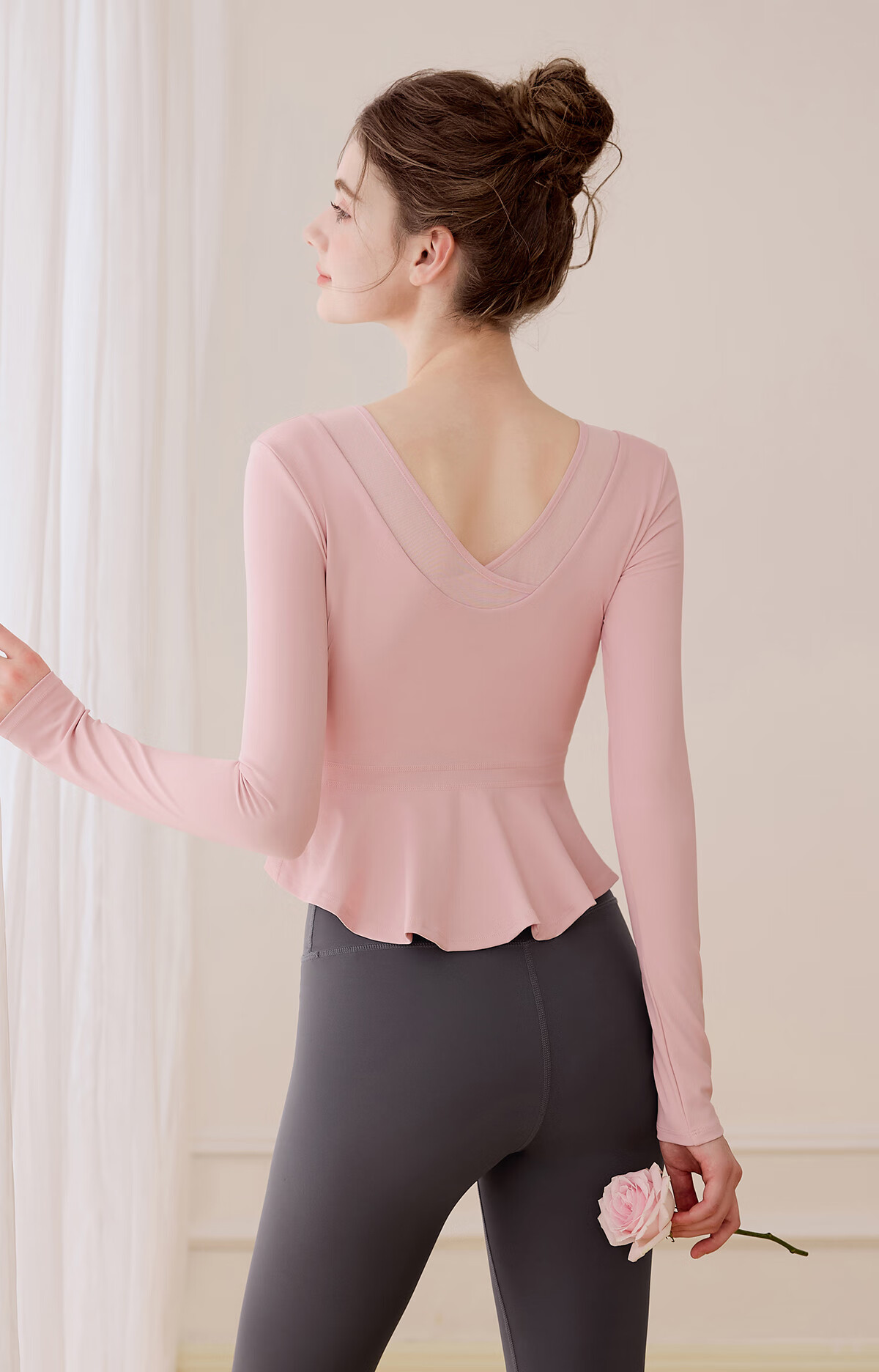 LULULMCCTN yoga clothing tops for women with chest pads, Pilates professional training, autumn and winter new fitness sports long sleeves, cherry blossom pink long sleeves L