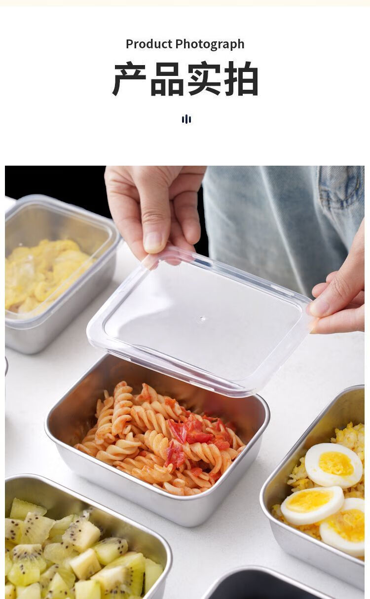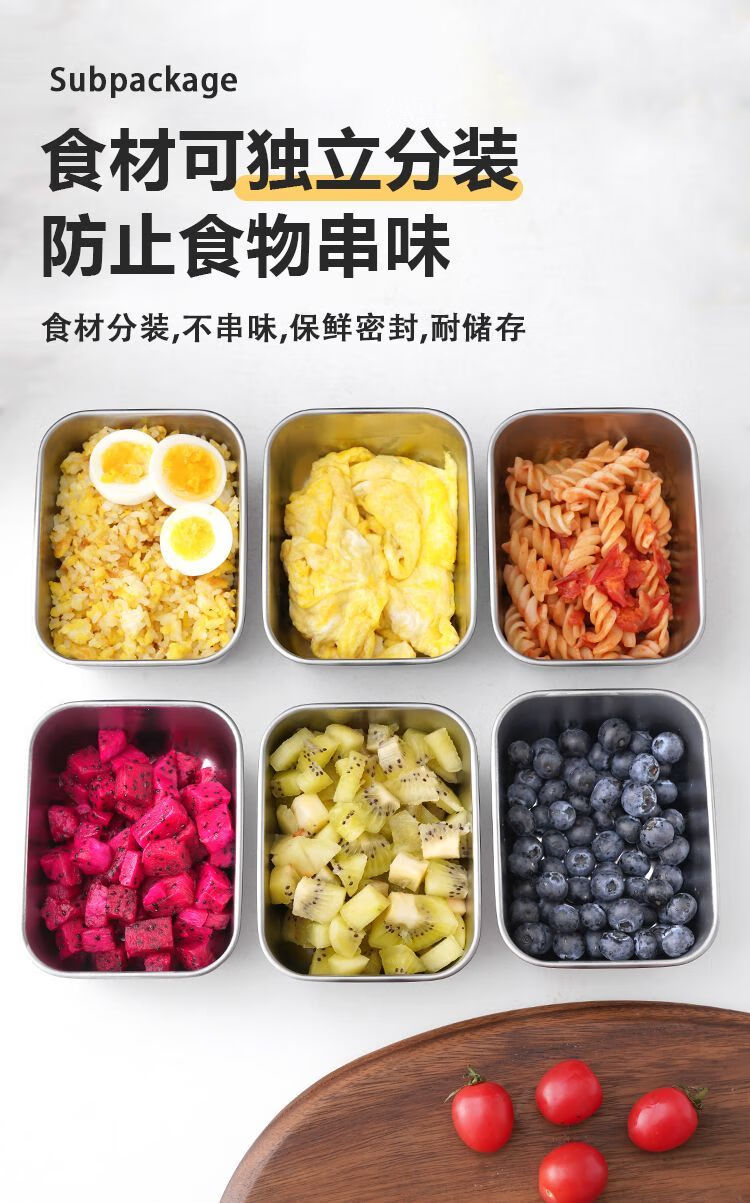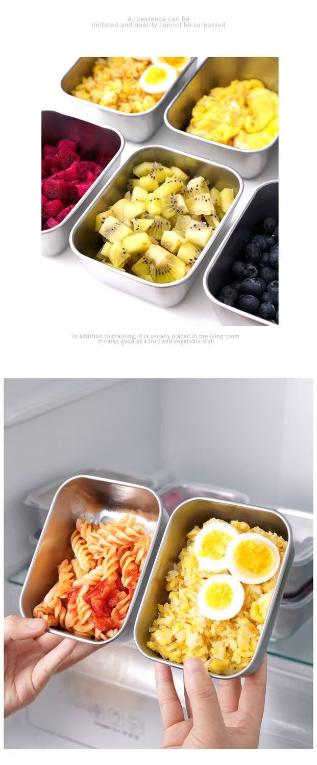 Shoot one for five stainless steel fresh-keeping box stall square plate picnic box multi-purpose box storage fruit artifact 13*10*5 5 pack storage fresh-keeping artifact