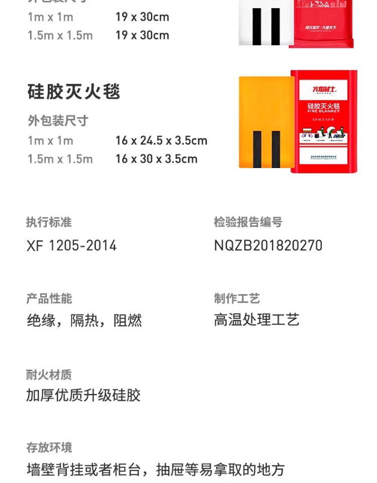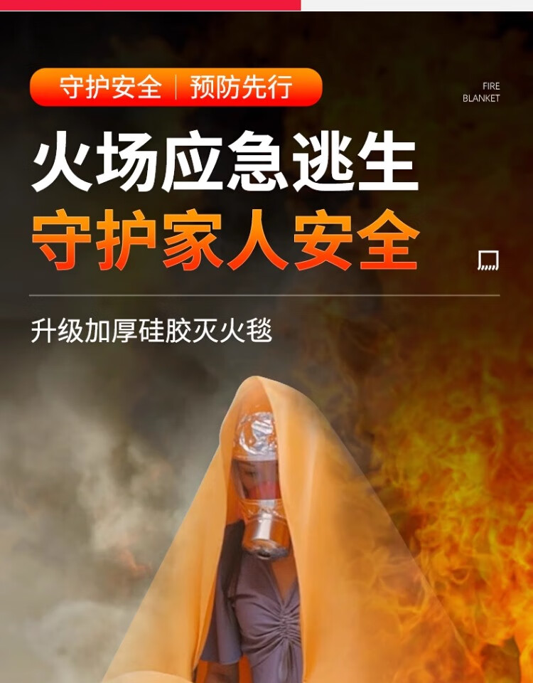 Flame Warrior Fire Blanket Fire Blanket Home Kitchen 1.5 Meter Silicone Commercial Escape National Standard Fire Certification 1.5 Meter Silicone Fire Blanket Boxed