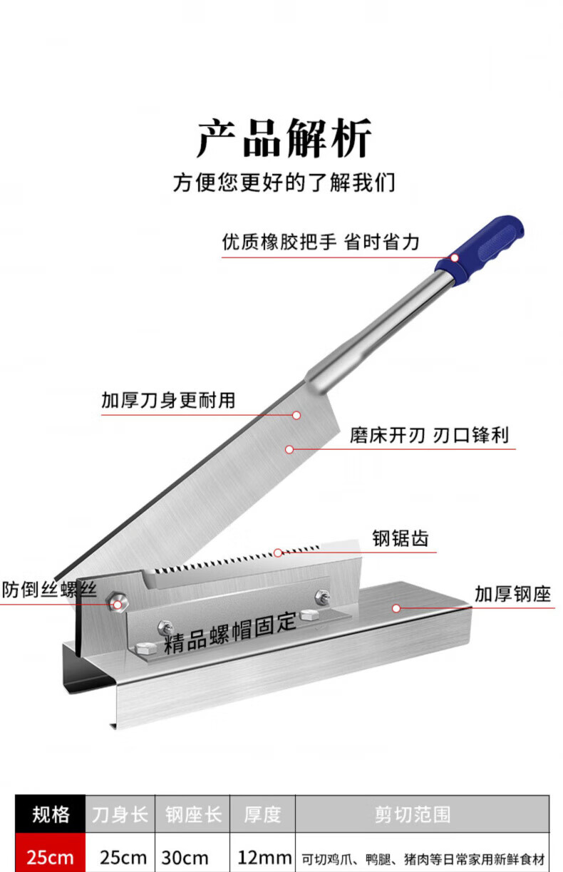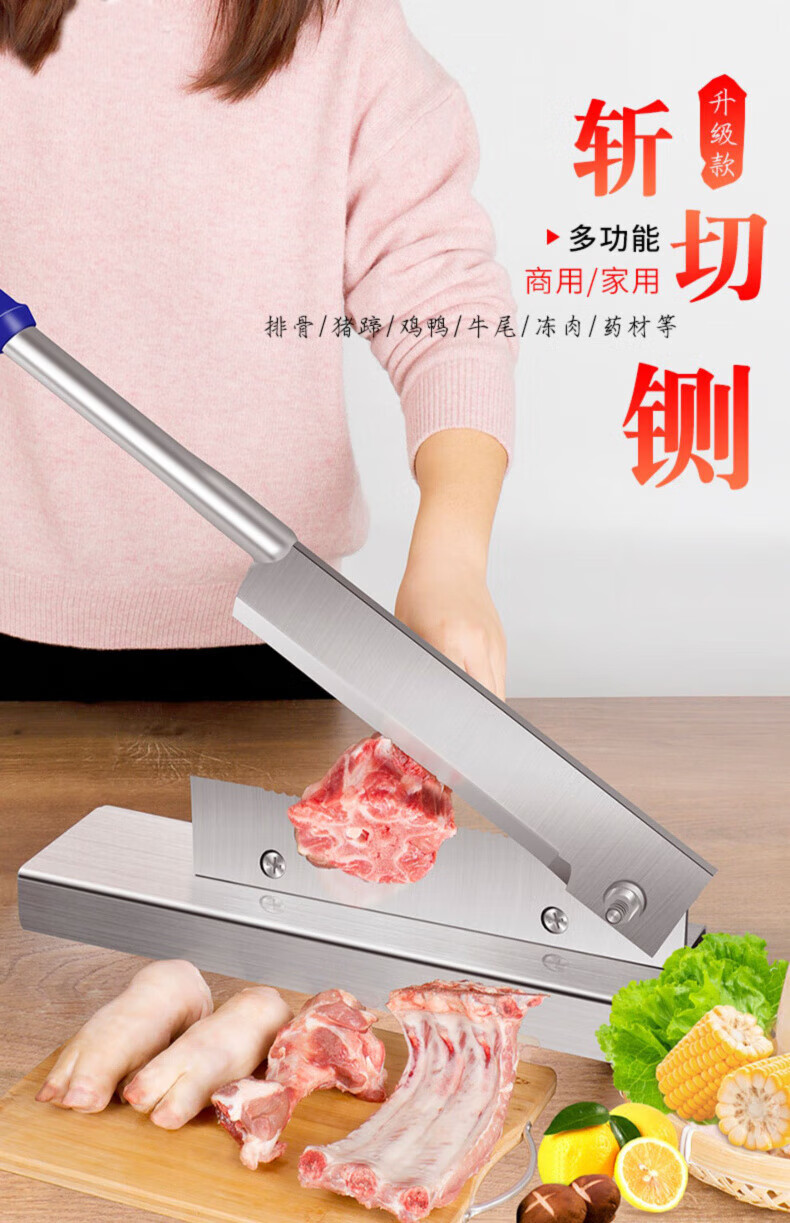 Jingxiao Misenhuo German guillotine for household bone and meat cutting, commercial small bone cutting artifact, knife for cutting ribs and meat, kitchen bone cutting, red handle 35cm, thickened sharp steel, specializes in cutting large bones | ribs | pig's trotters | chickens and ducks 200% labor-saving