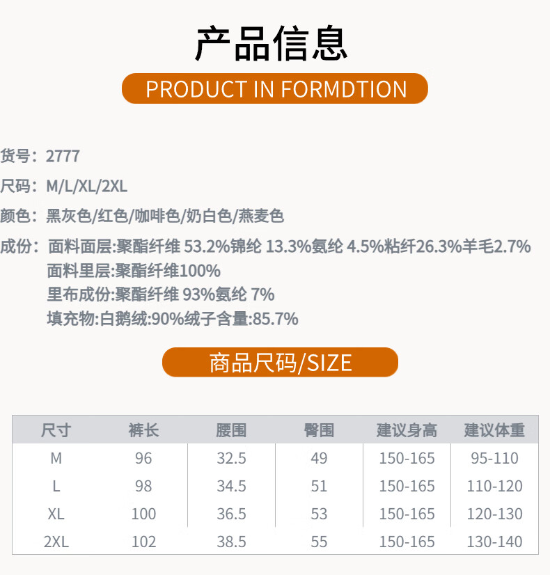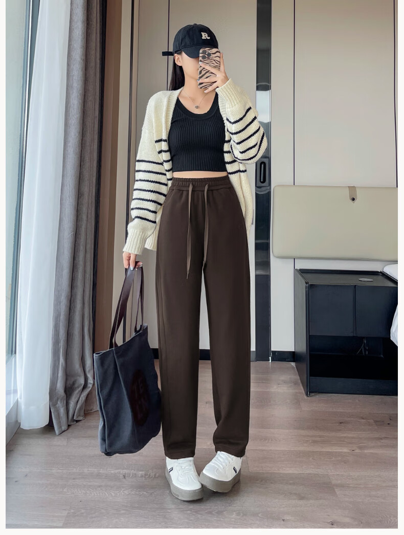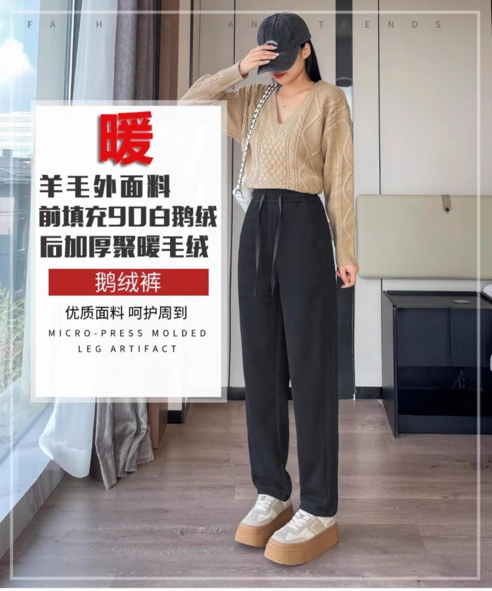 TKSY Fashion Goose Down Pants Women's Outerwear Winter 2026 New Plus Velvet Thickened Casual Sports Wear Pants Fashion Down Pants Brown-White Goose Down 2XL 140-155Jin Jin equals 0.5 kg