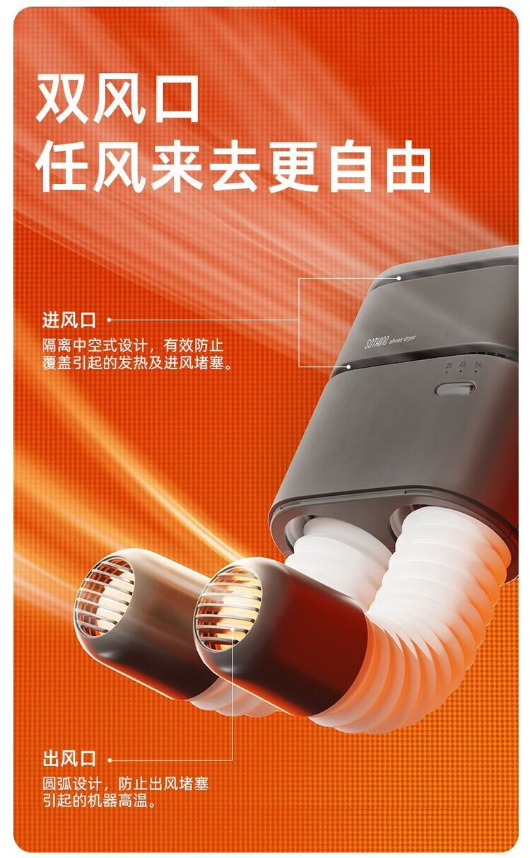 SOTHING snowshoe boot glove dryer shoe dryer wet and dry hot air deodorization sterilization shoe dryer shoe dryer black telescopic hose type - foldable and portable - suitable for all shoes