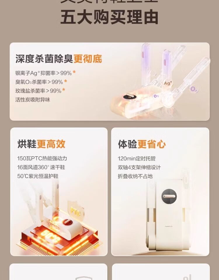 AIRMATE shoe dryer household deodorizing sterilizing dryer shoe machine dormitory fully automatic shoe wet dual-use artifact four-bracket folding model 120min timing antibacterial