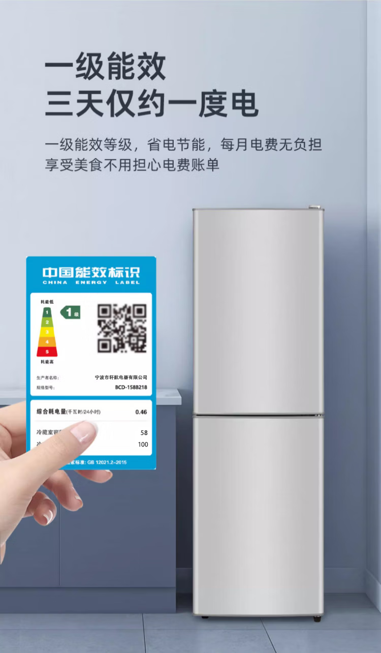 Hiacr home appliance subsidy 25% refrigerator household small first-class energy efficiency refrigeration and freezing energy saving and electricity saving next day delivery old for new 218B288 upgraded model first class energy efficiency丨large capacity