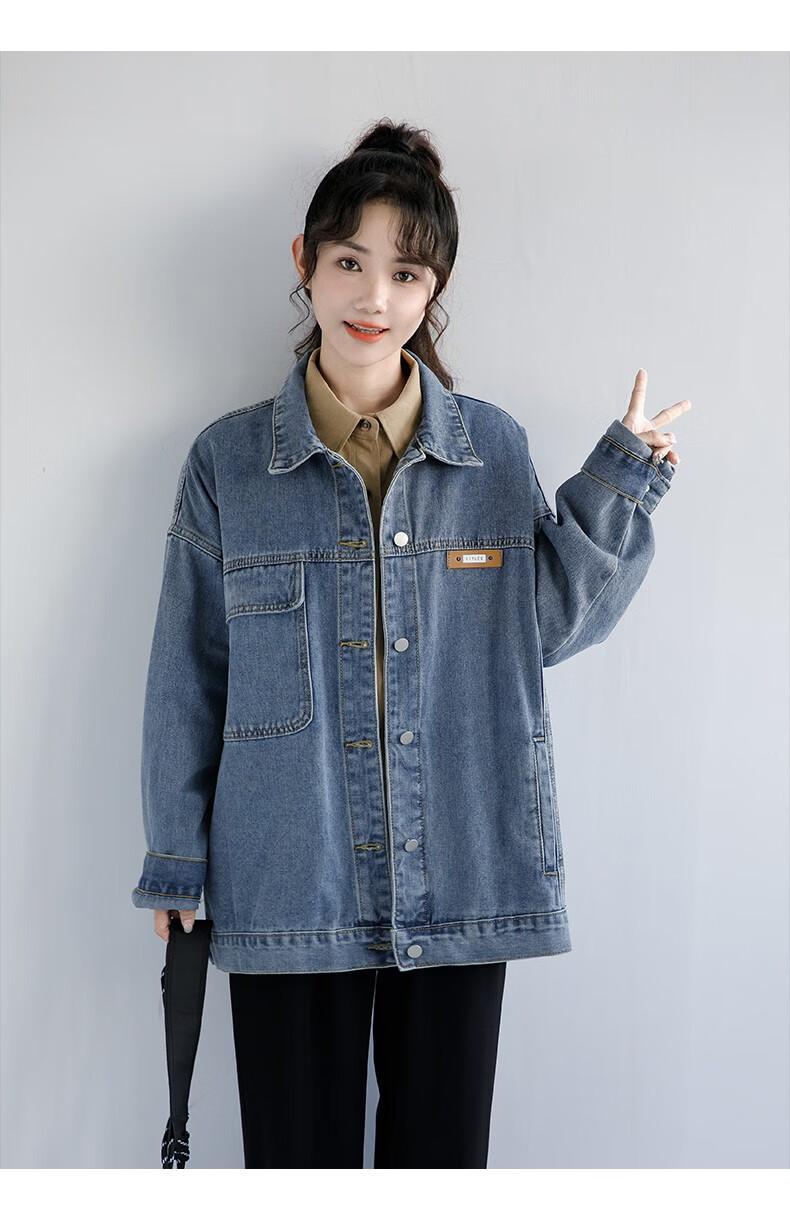 Semir spring and autumn new blue retro Hong Kong style denim jacket for women Korean style loose casual jacket bf student top blue Semir s 12XL blue