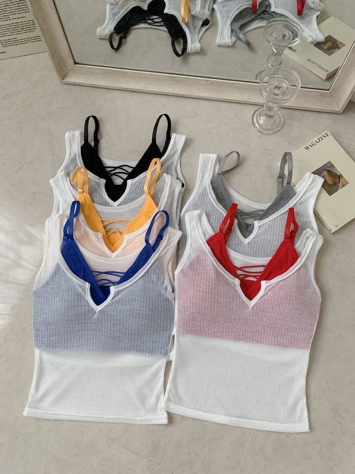 Tingluan (TINGLUAN) new two-piece set slightly see-through Tencel vest with small straps slimming white + red one size fits all 80-120 Jin Jin equals 0.5 kg