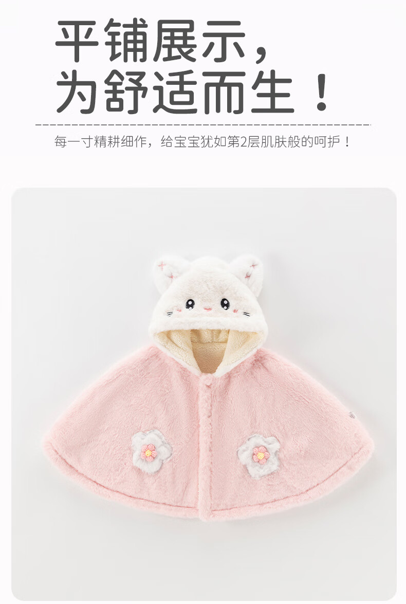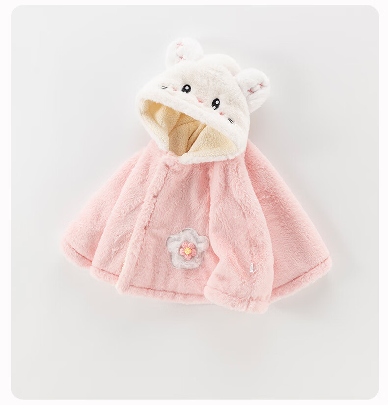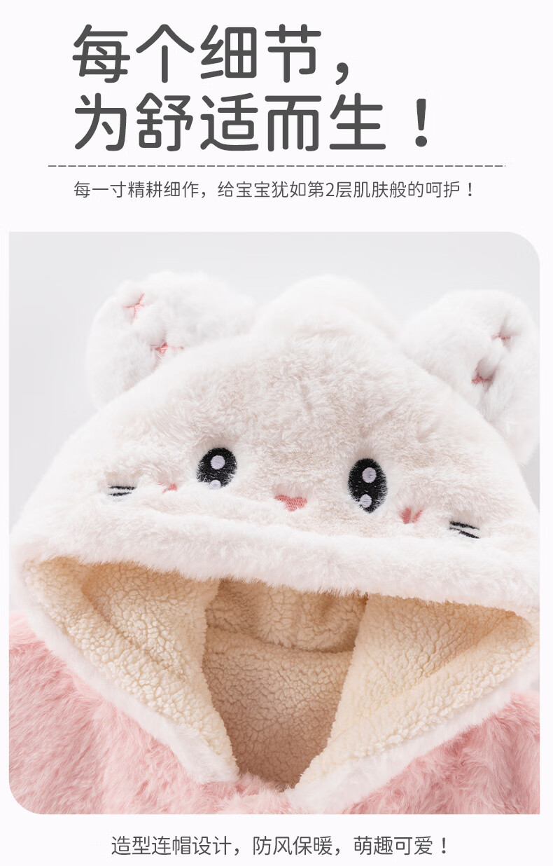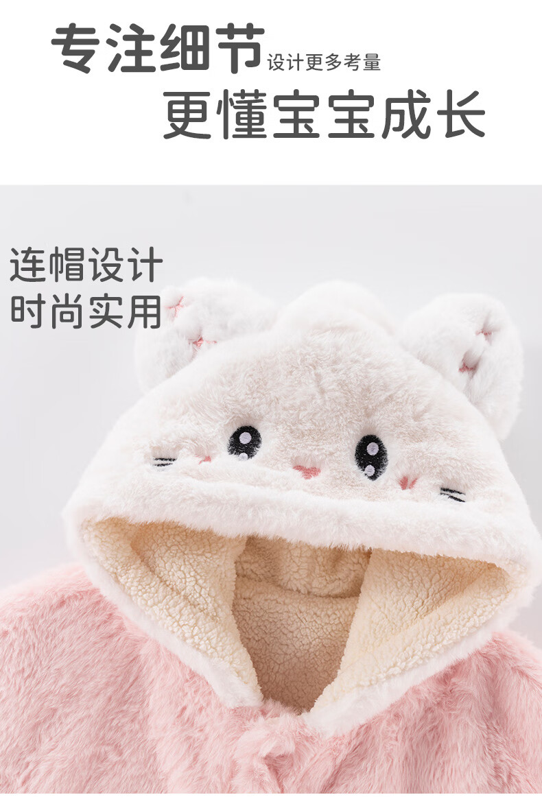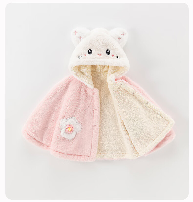 Cute and super cute children's clothes baby hooded cloak 2025 winter new baby plus velvet warm coat pink kitten cloak one size (one size fits all) 0-3 years old