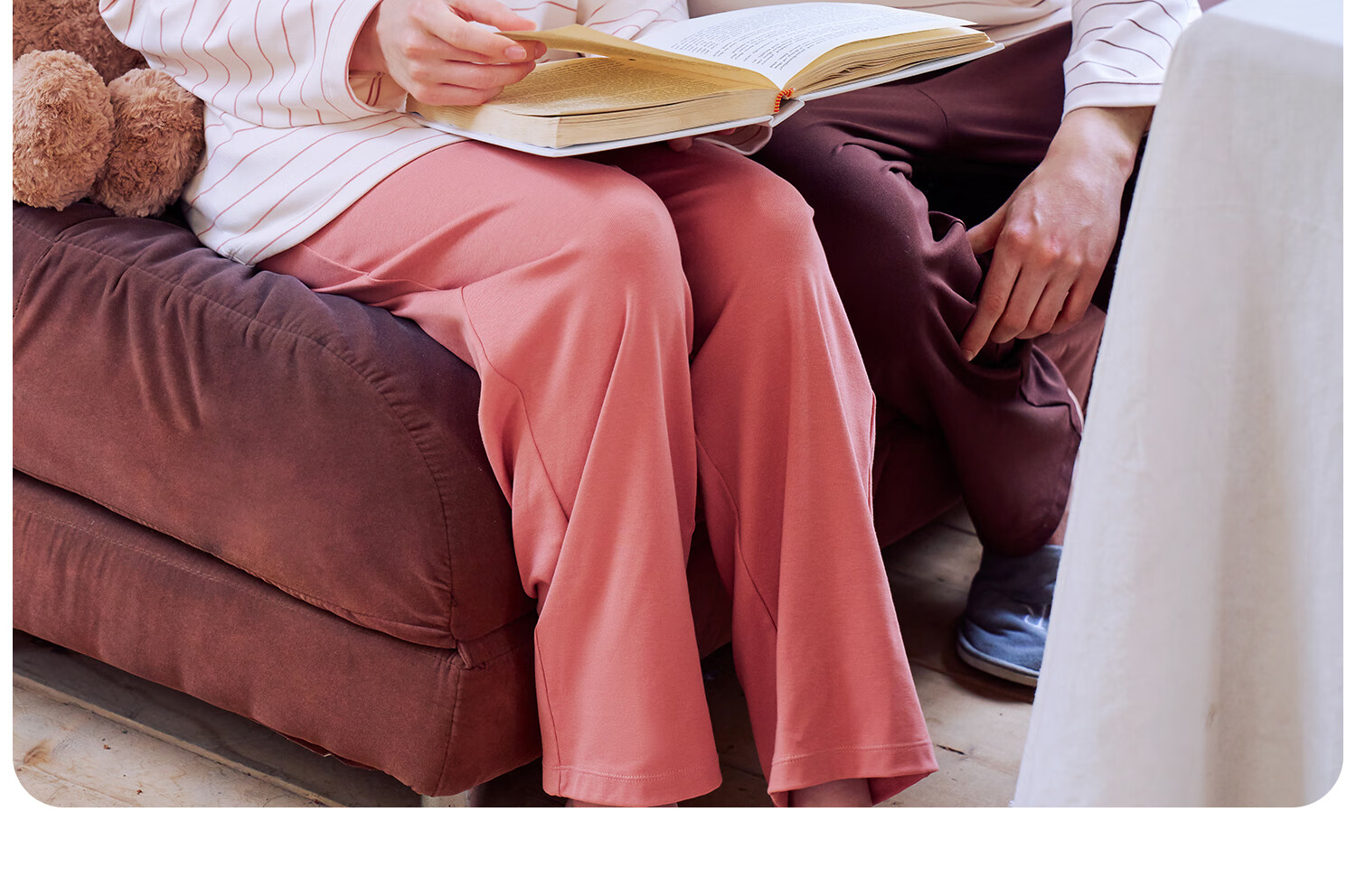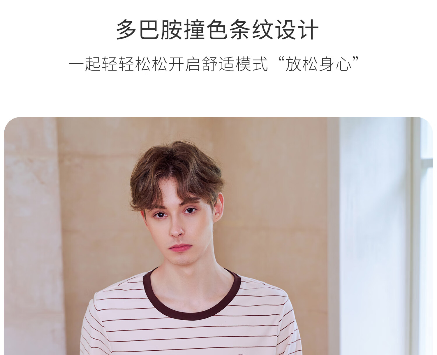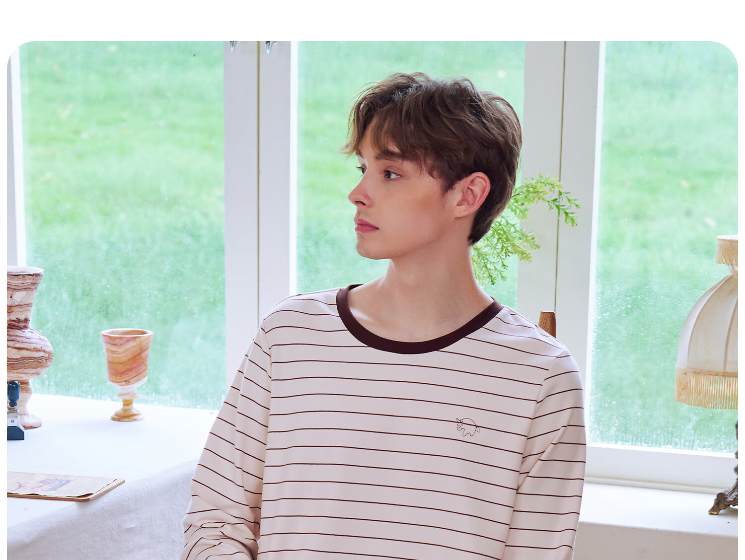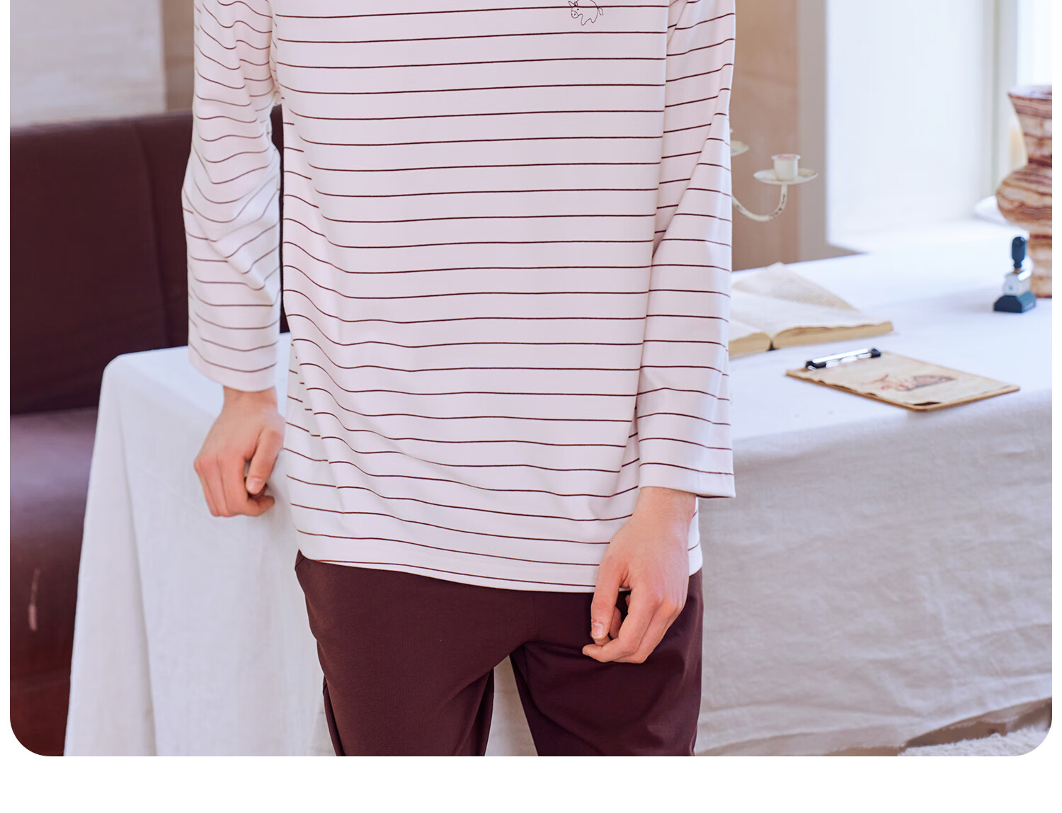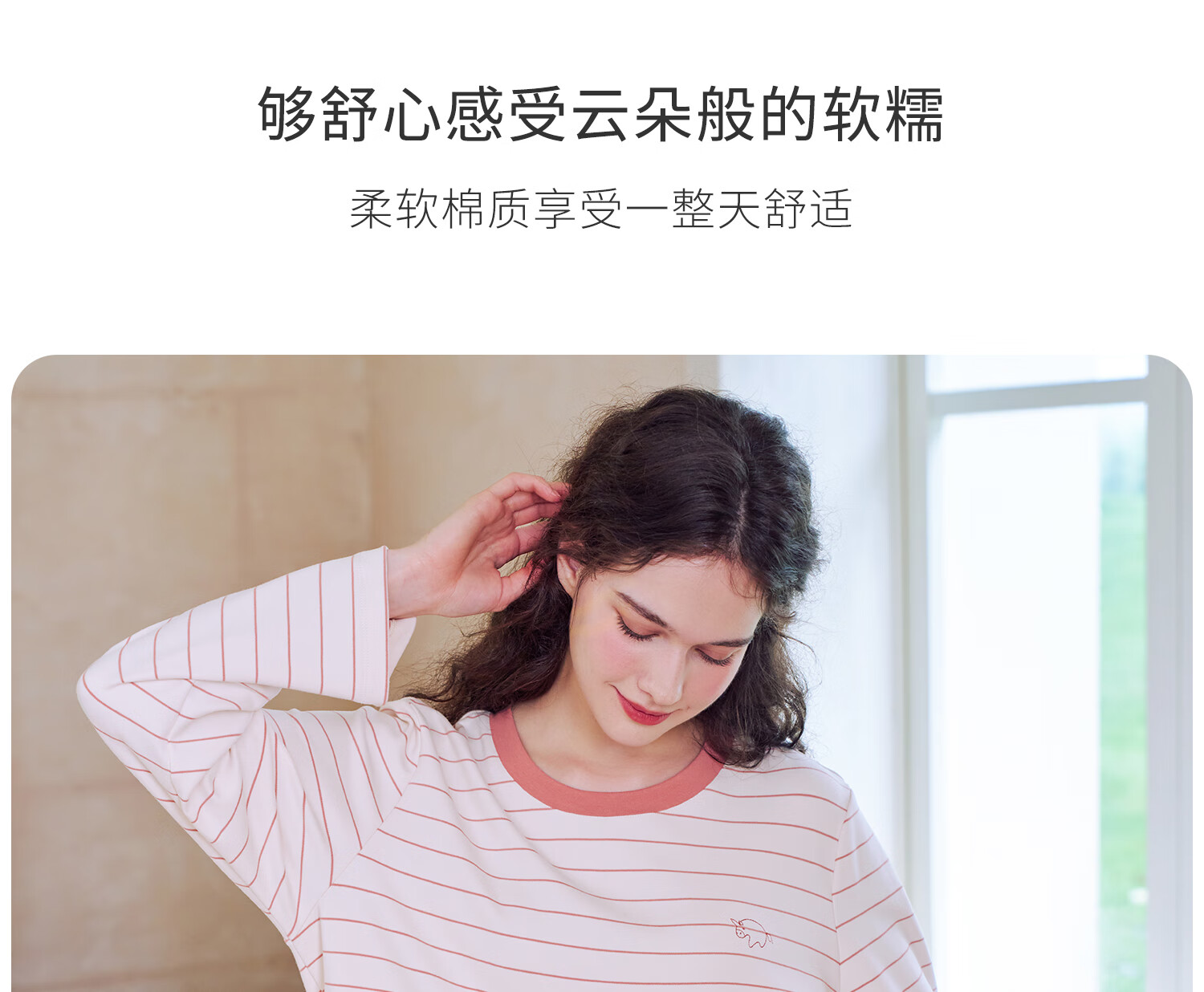 American Standard's new long-sleeved couple's soft cotton pajamas set for women in autumn and winter can be worn outside casual striped knitted cotton home clothes for men coral pink M