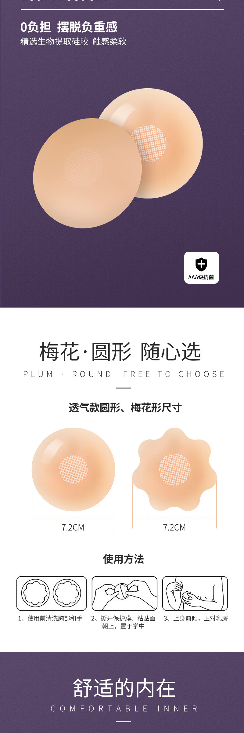 Breast stickers for women's slings, summer thin silicone nipple stickers for wedding dresses, small breasts to prevent bumps and light exposure, invisible nipple stickers, round 4 pairs