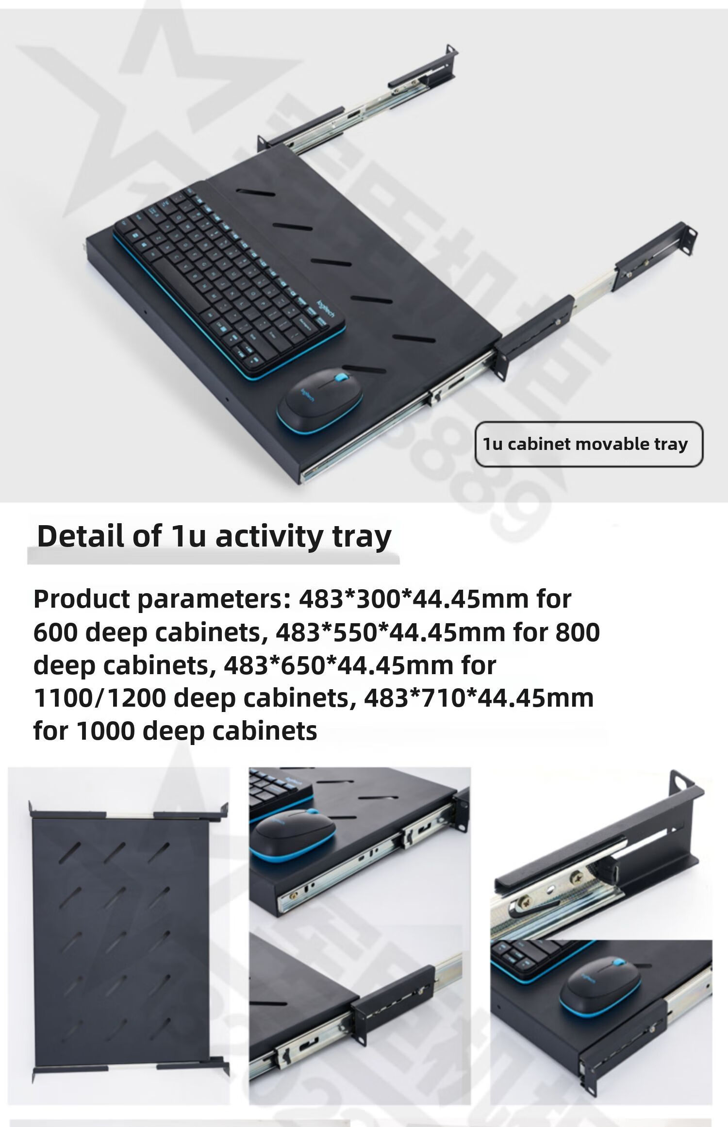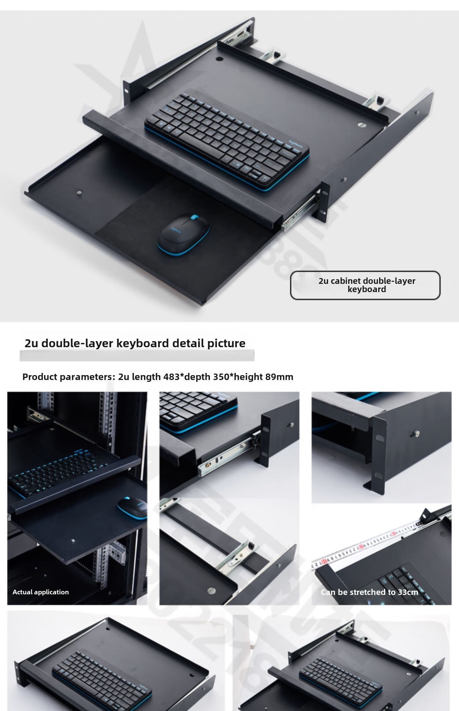 19-inch 1U cabinet keyboard sliding drawer telescopic double-layer keyboard drawer partition pull-out cabinet tray black 1U keyboard drawer 350 deep 1x1x1cm