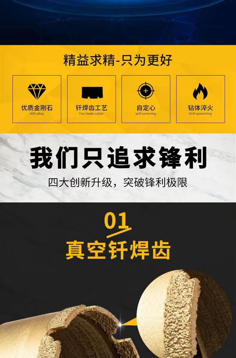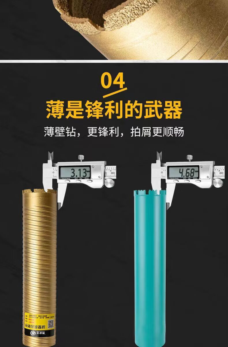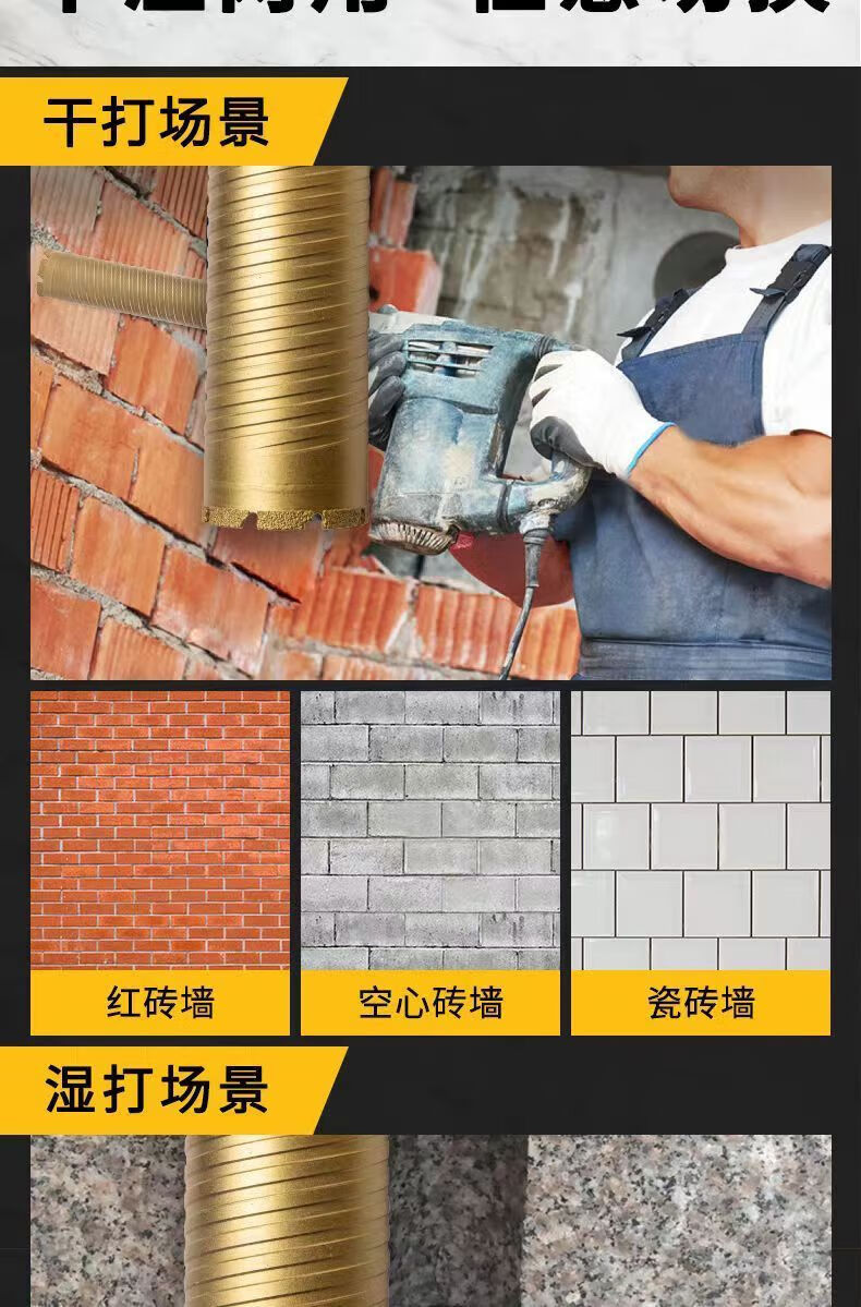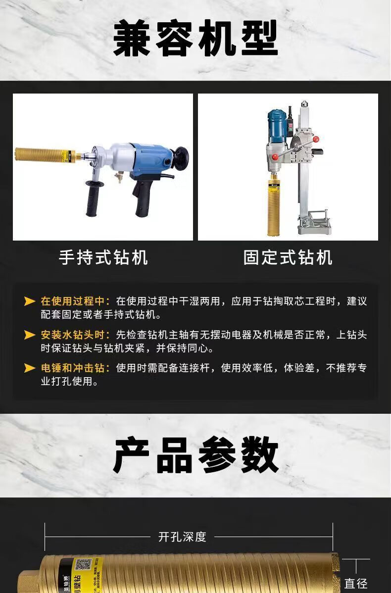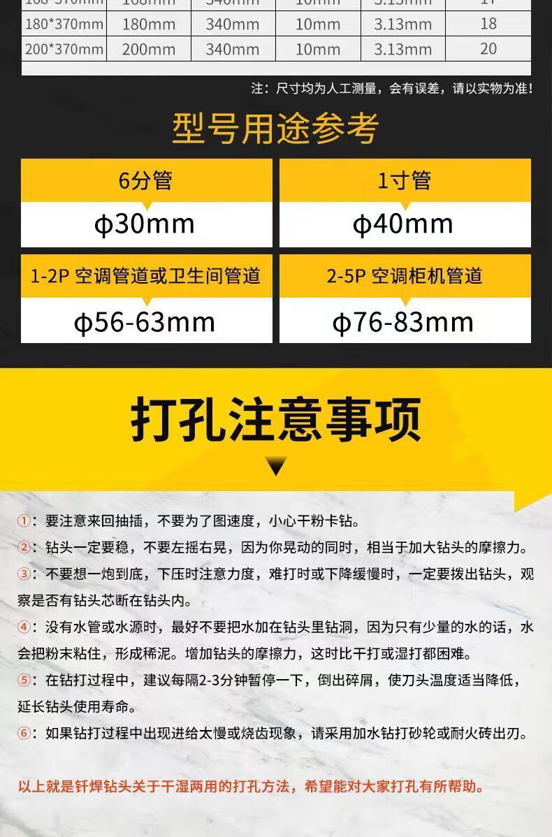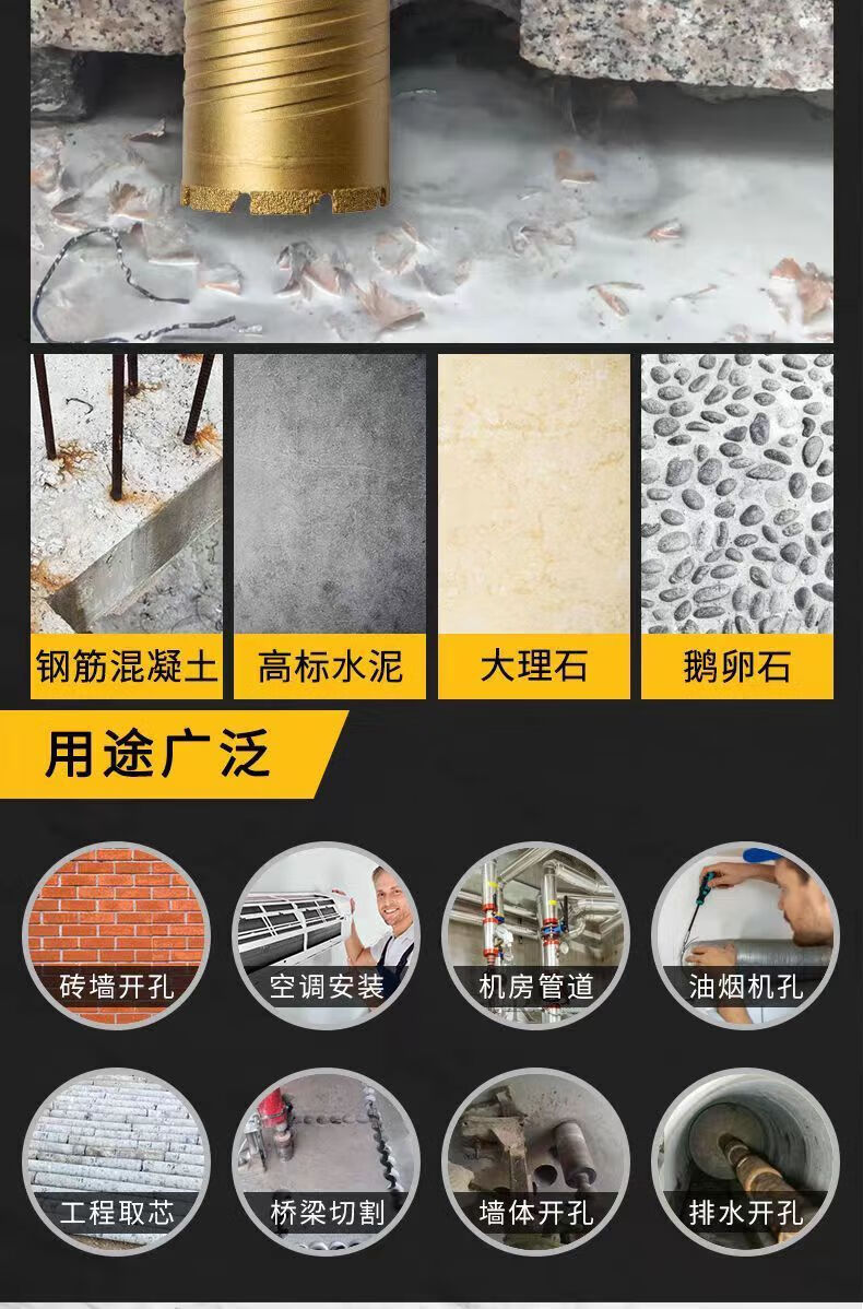 FANCYCHIC brazed water drill bit wet and dry express 63 thin-walled diamond drill for reinforced concrete air conditioning openings (flat non-threaded) 25*370mm