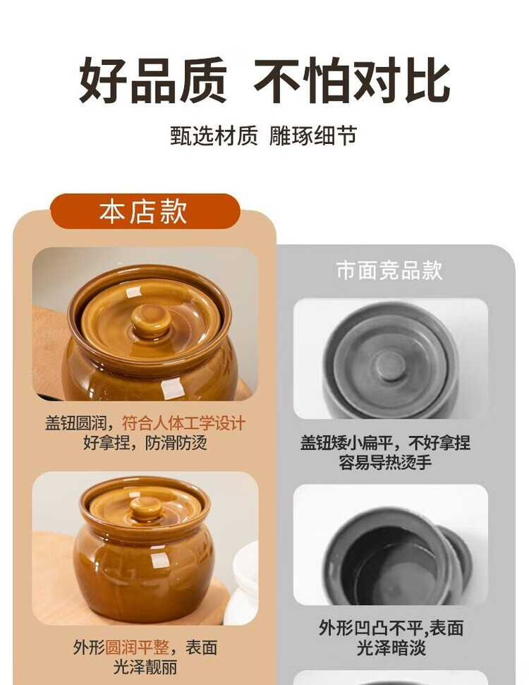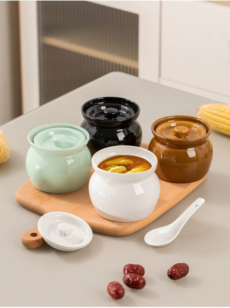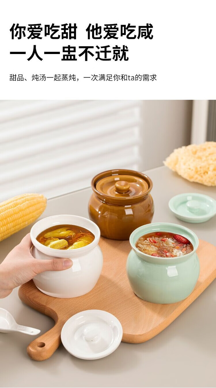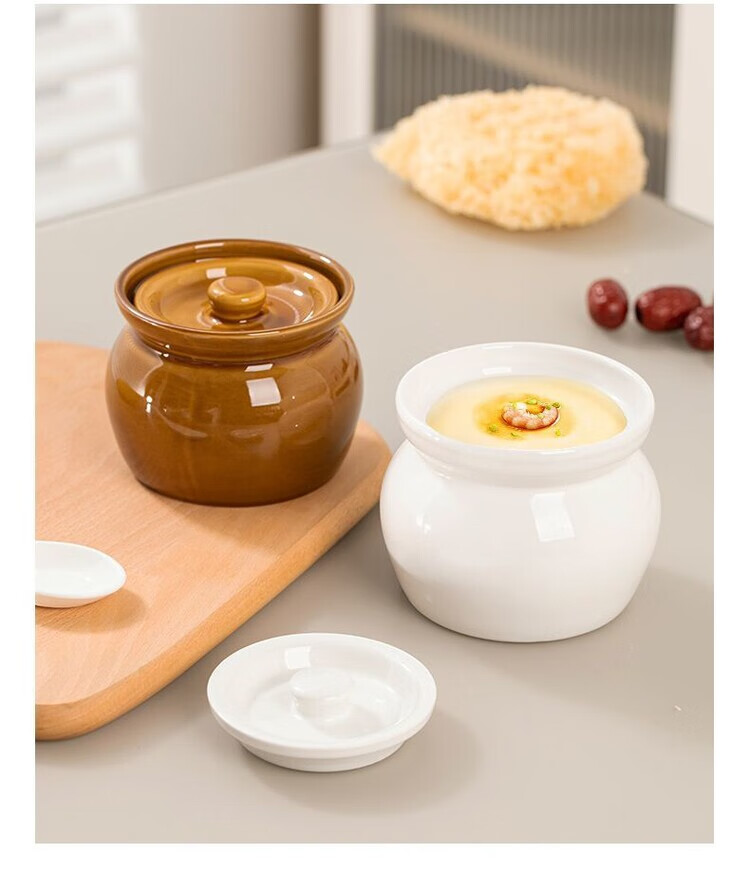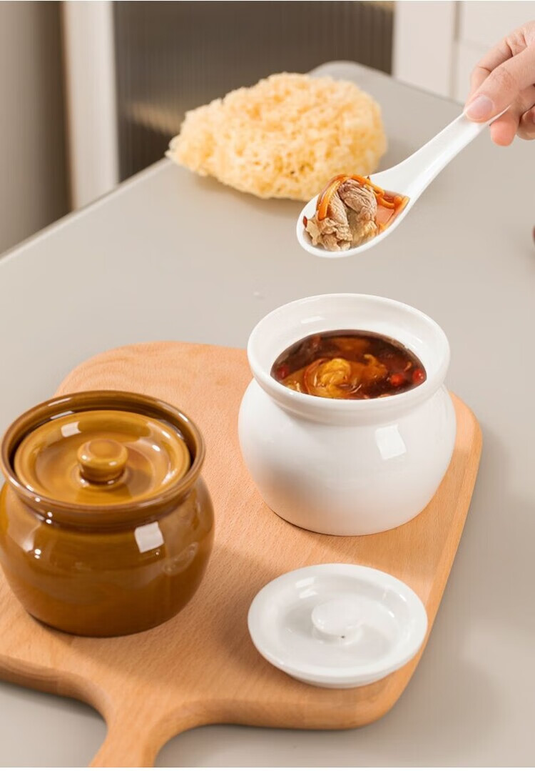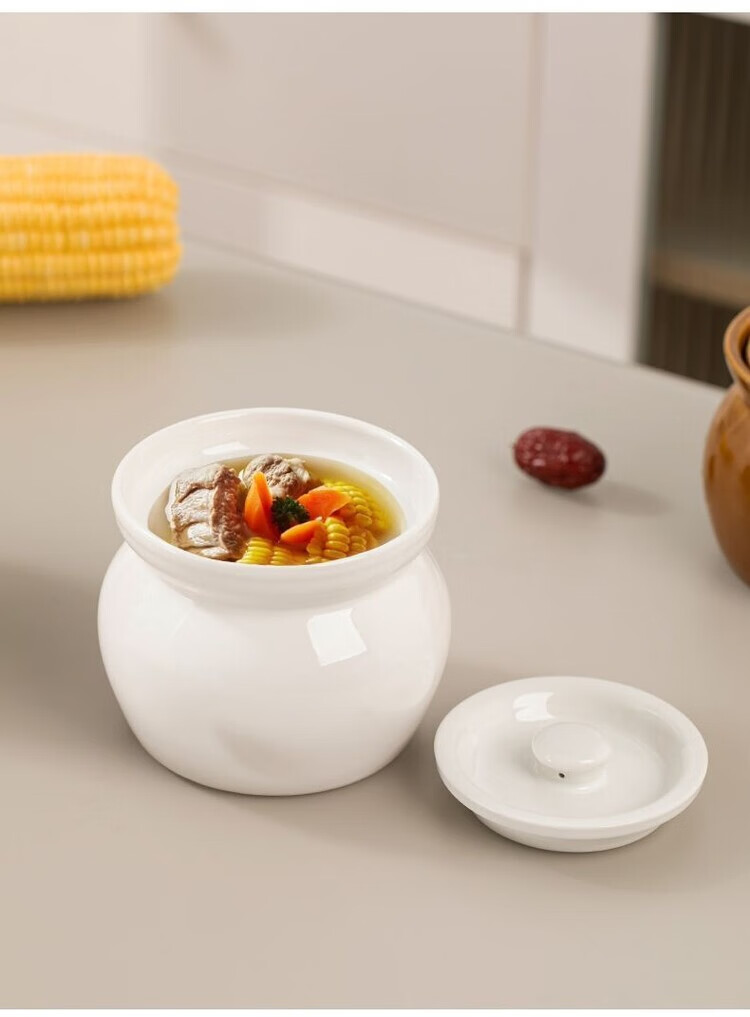Oupinyuan earthenware stew pot water-proof red bird soup steamed egg stew pot with lid soup pot Chinese Shaxian snack ceramic simmering soup pot white 500ML single pack