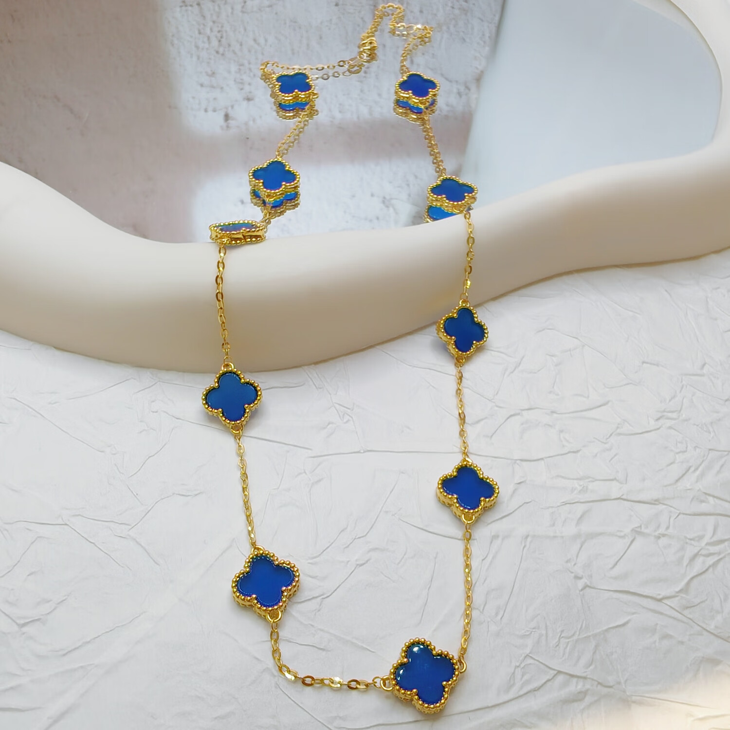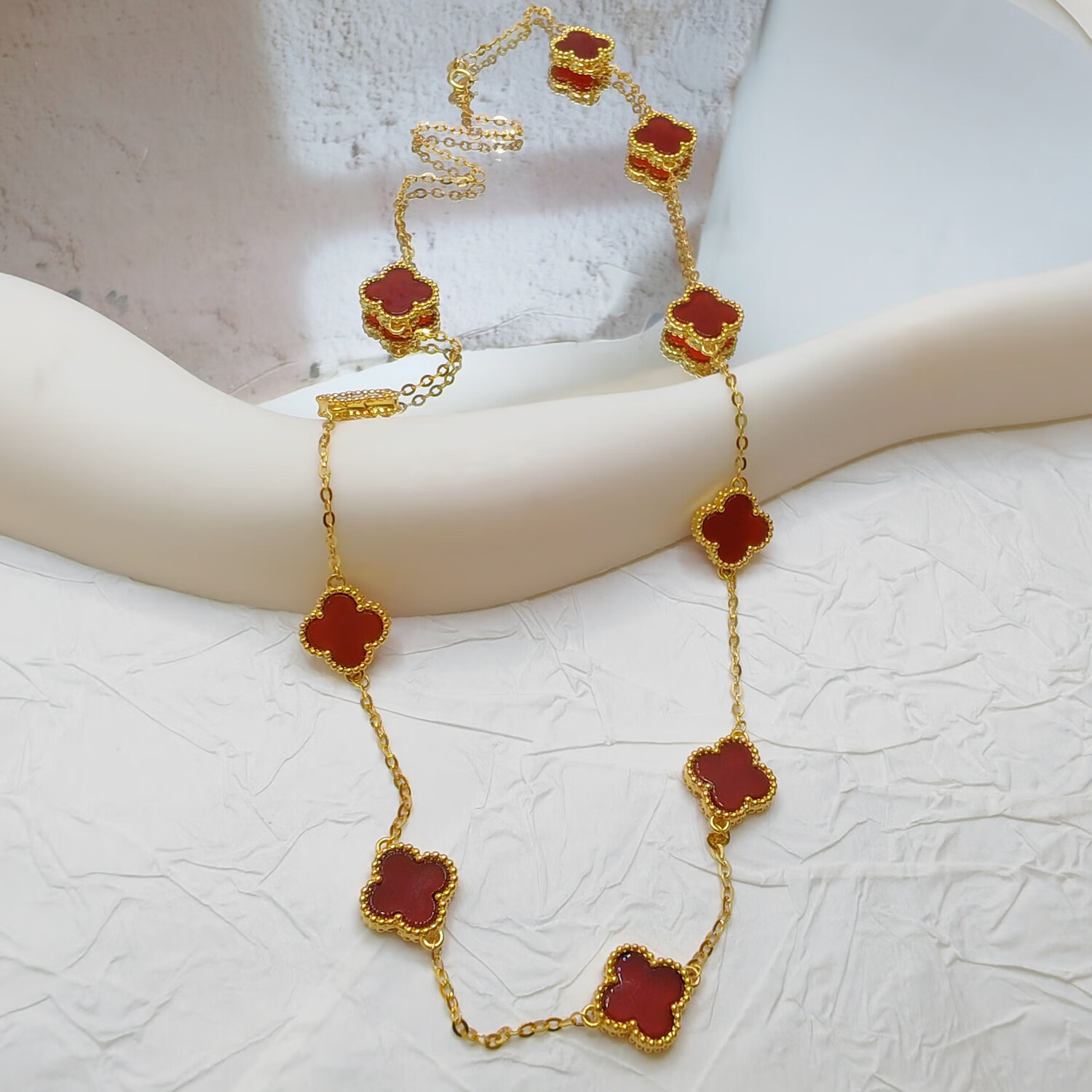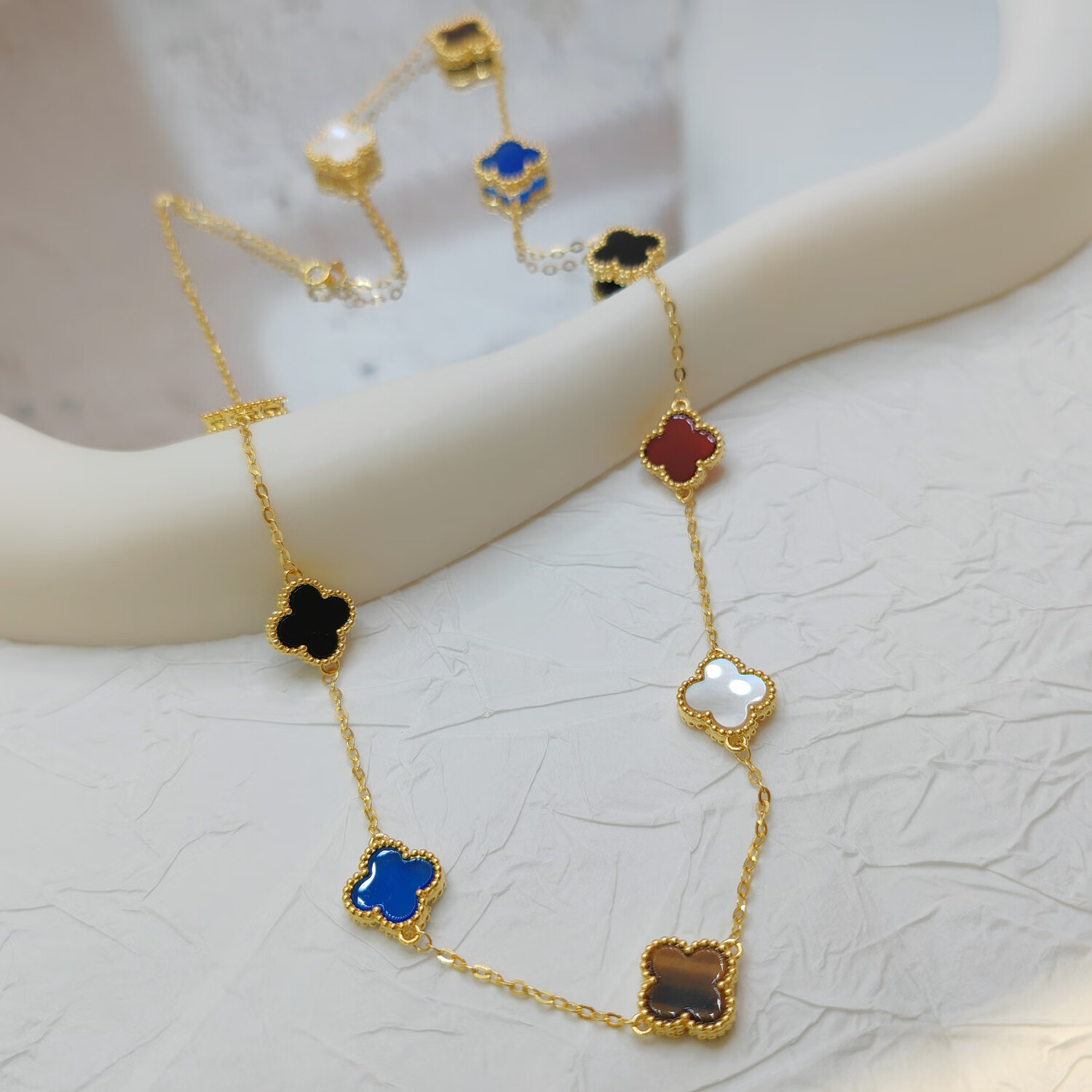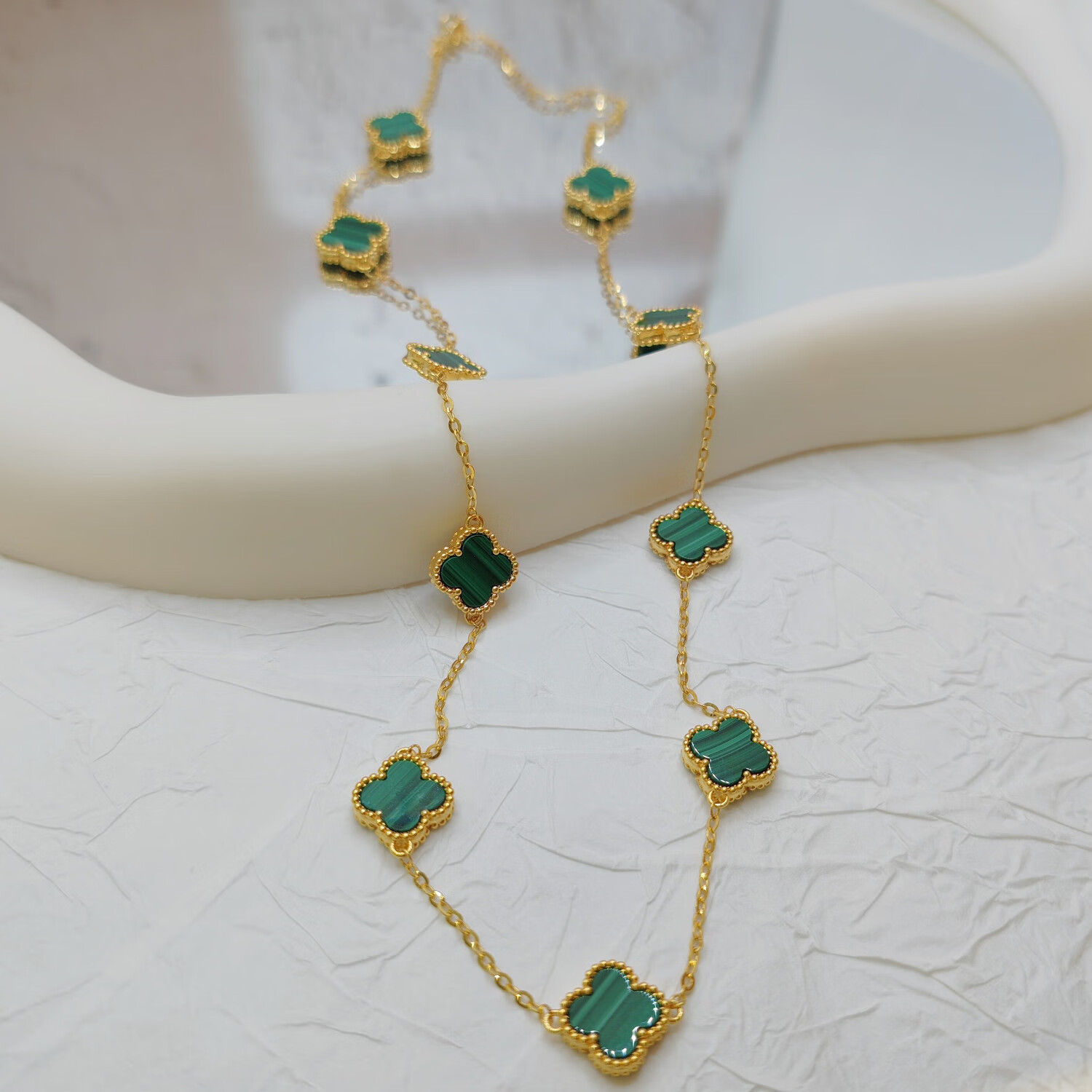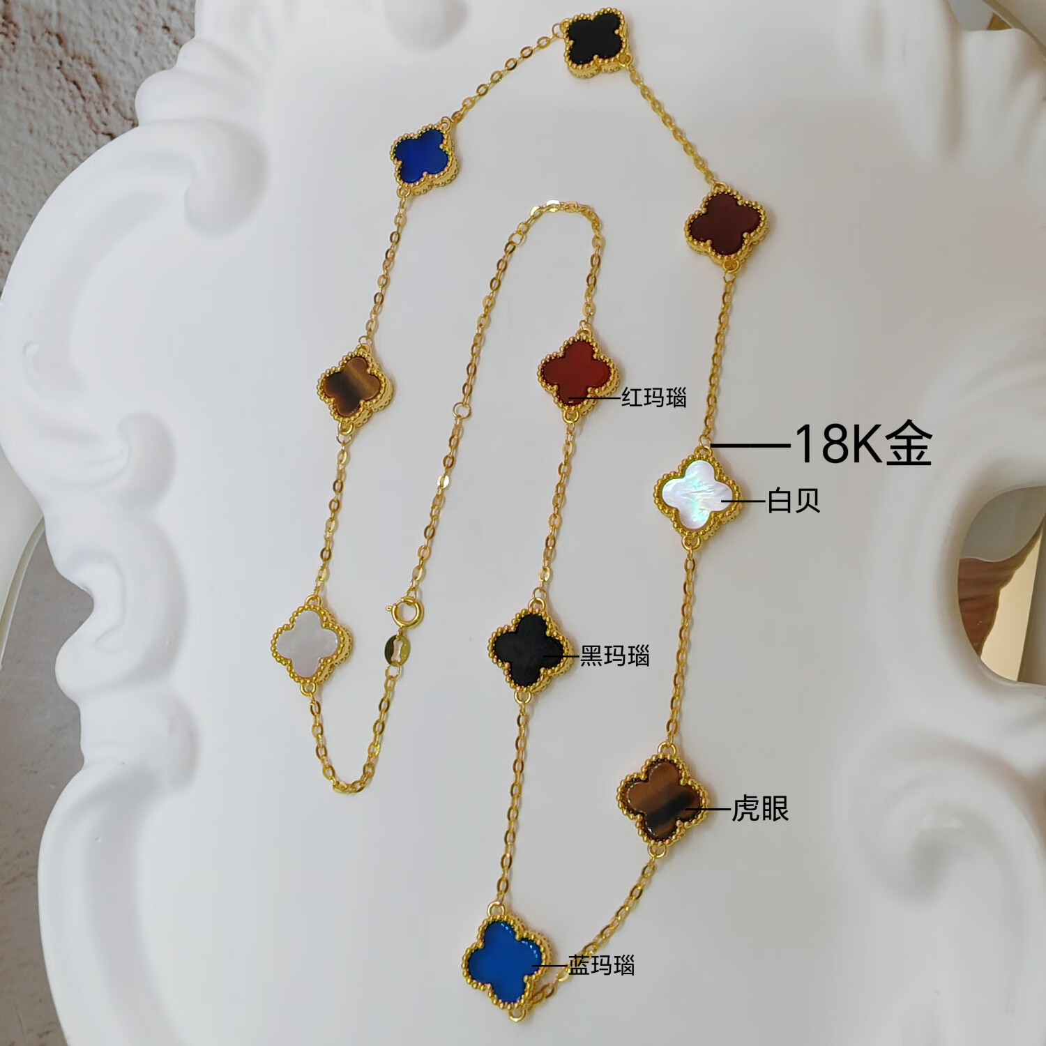 18K gold four-leaf clover clavicle chain, lucky guard, light luxury texture, Valentine's Day gift necklace for girlfriend, white
