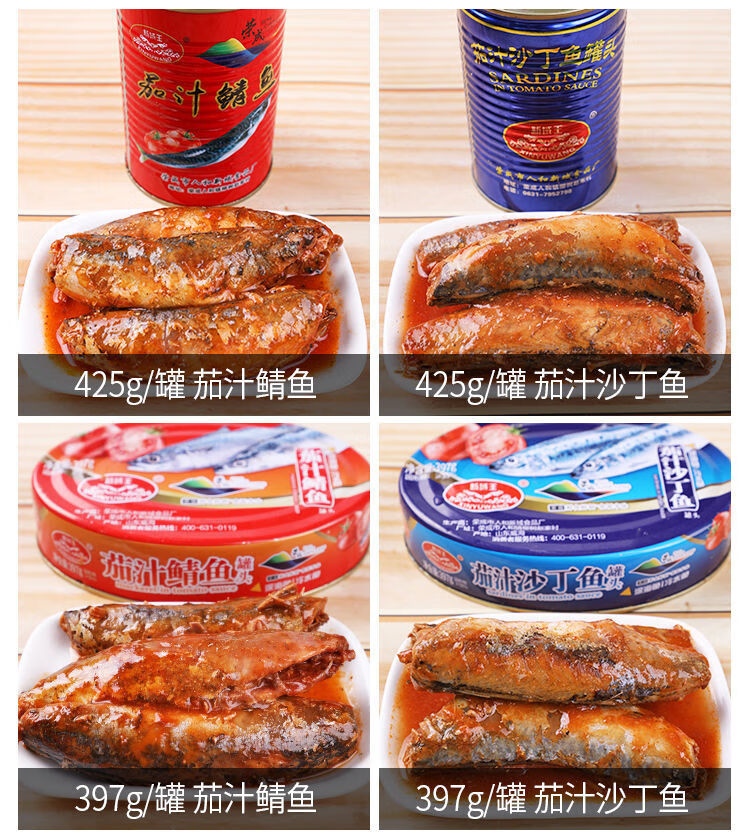 Canned sardines in tomato sauce 425g canned mackerel, seafood, tomato and fish, ready to eat with rice and wine, outdoor canned mackerel in tomato sauce, 425g*1 can