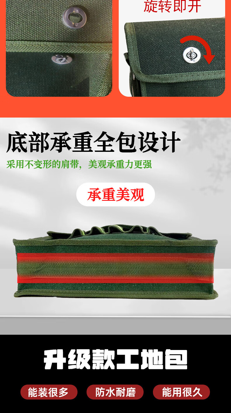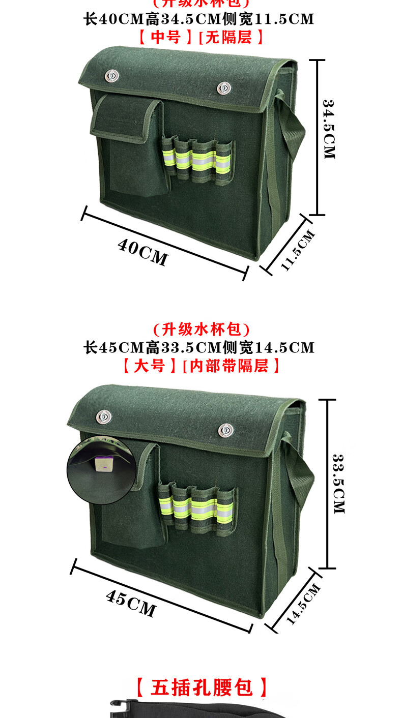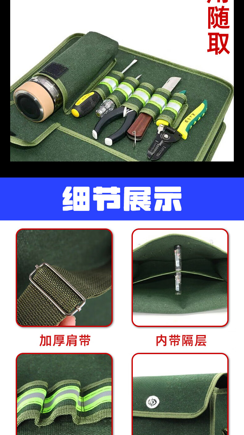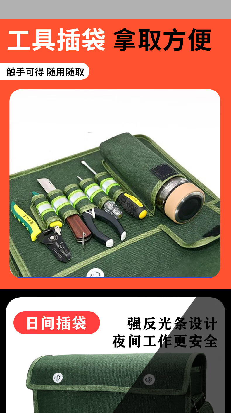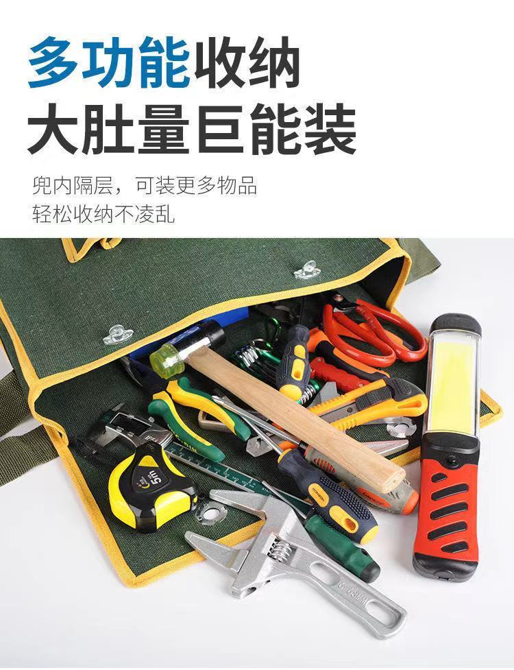 Shantou Lincun canvas tool bag thickened wear-resistant bricklayer storage bag construction site carpentry crossbody large capacity electrician multi-layer water cup pocket large compartment 45-15-36cm