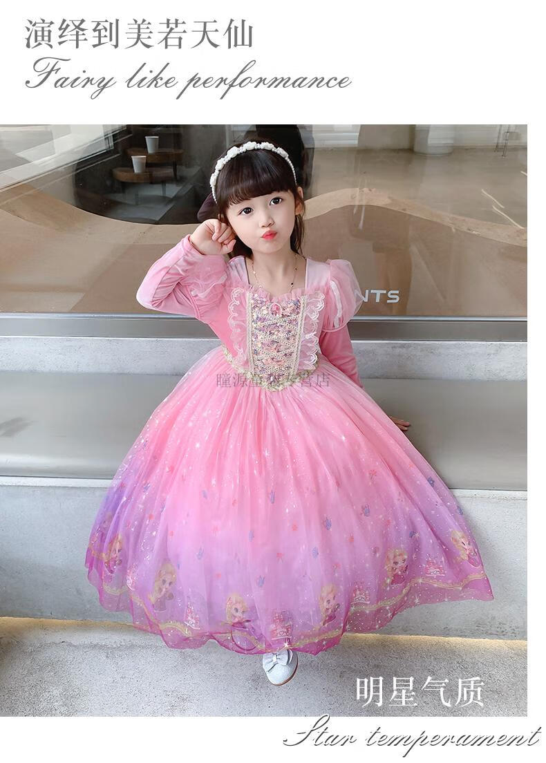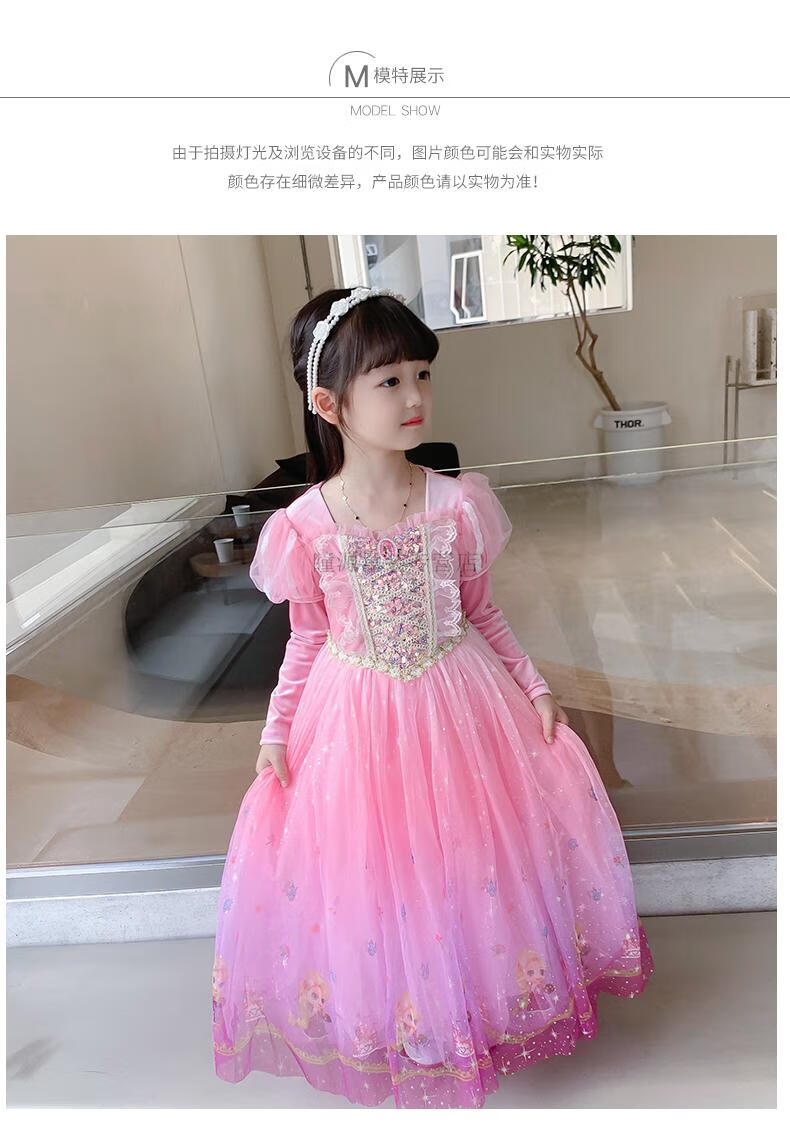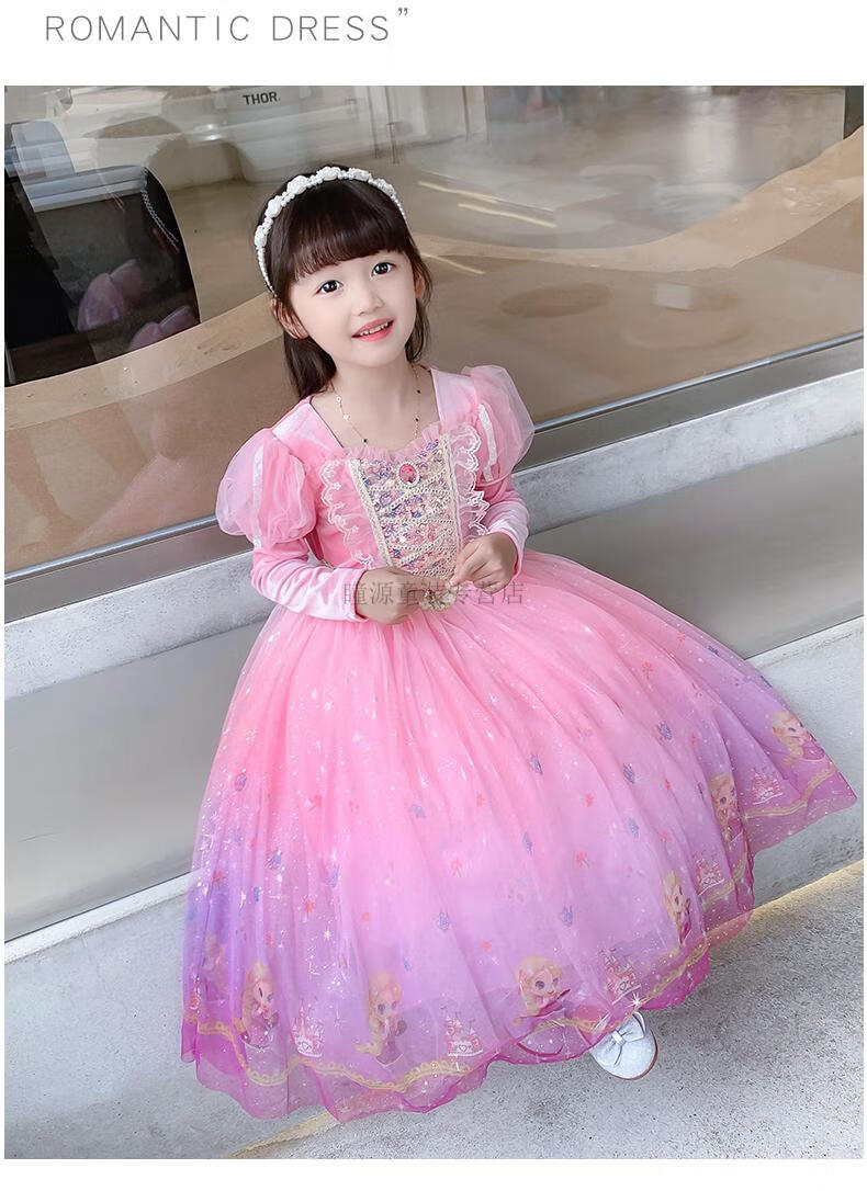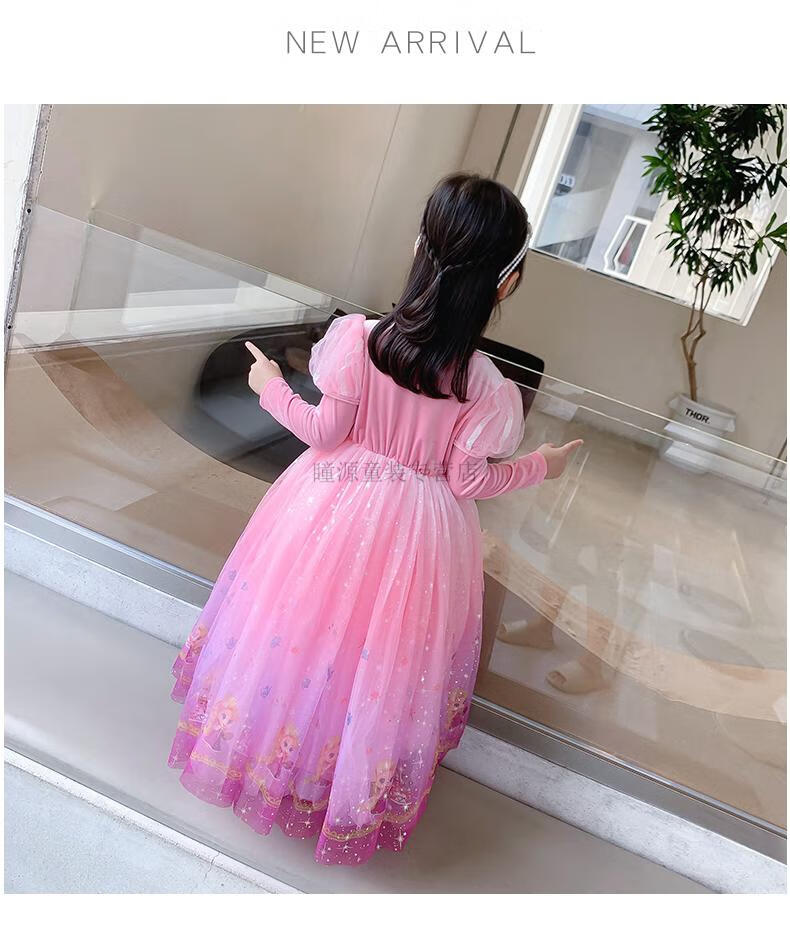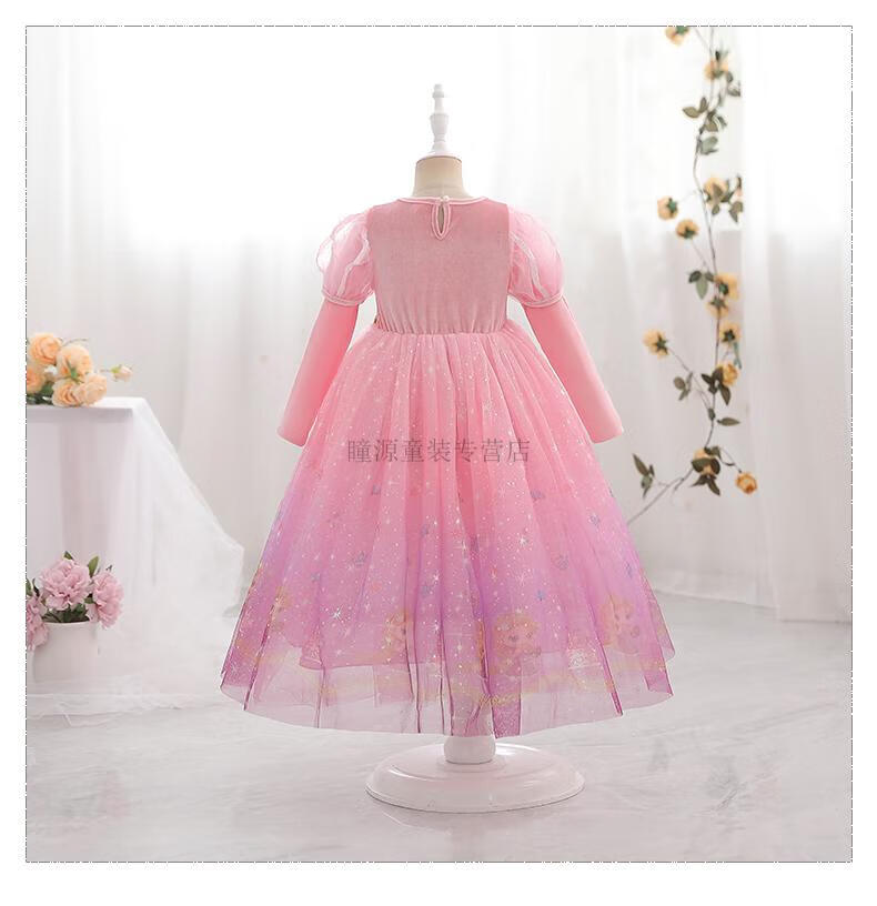 G.duck Elsa Princess Dress Girls Spring Autumn Winter 2025 New Long Sleeve Cute Birthday Puffy Mesh Midi Dress Q22209 Pink Single Skirt + Veil Velvet Fabric 110 110cm (Suitable for Height 100-110cm)