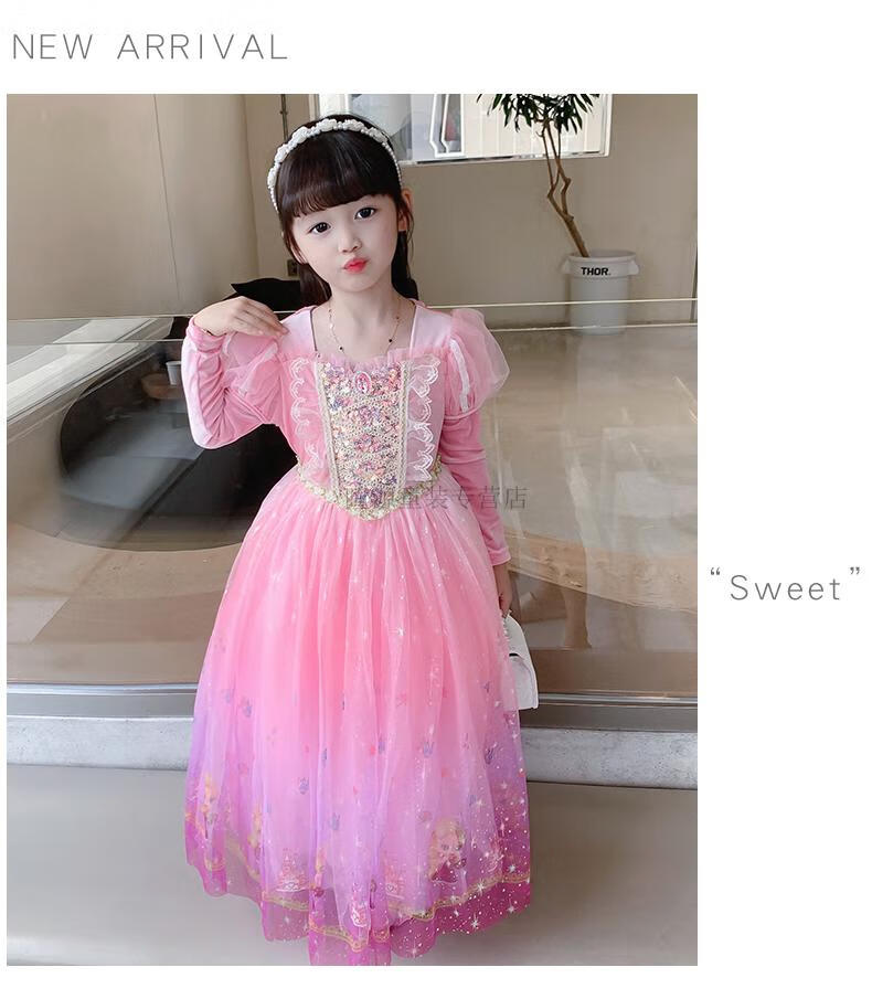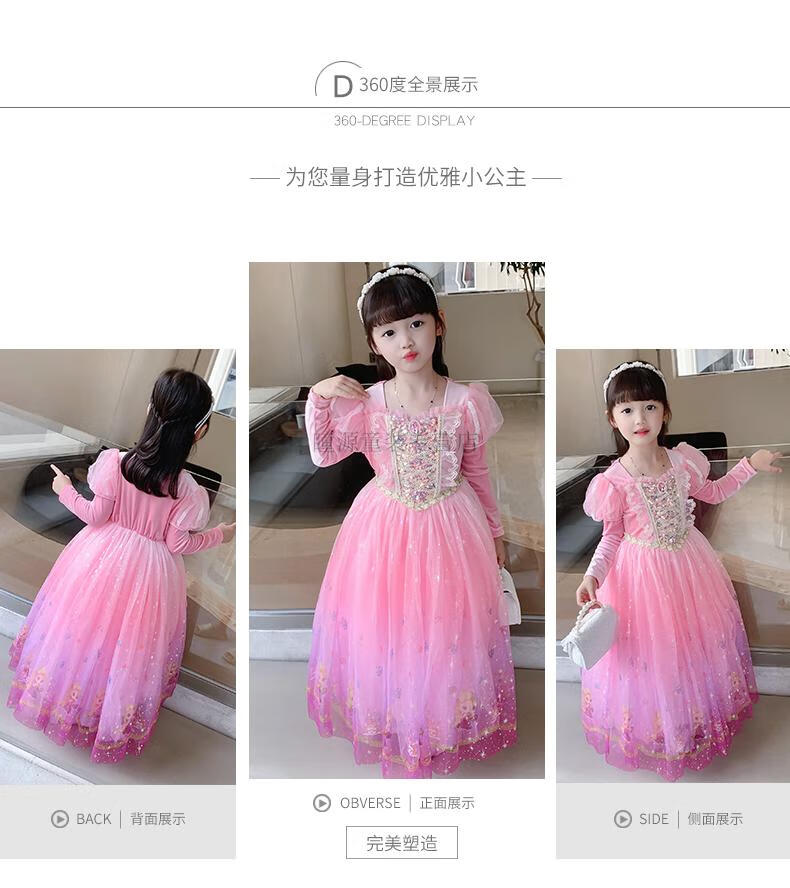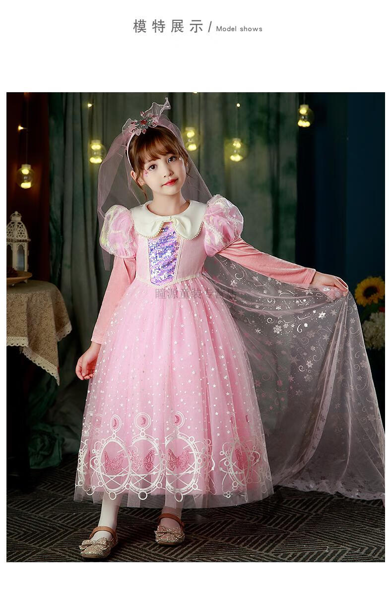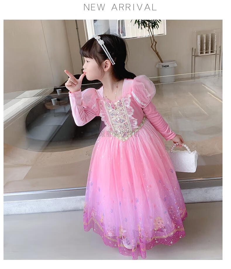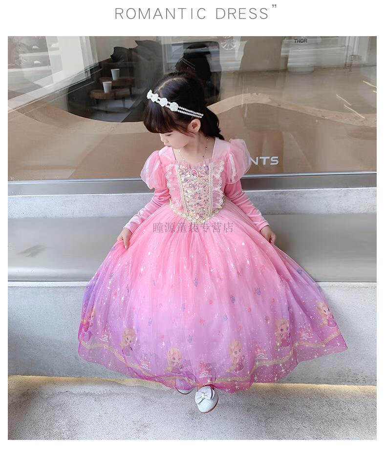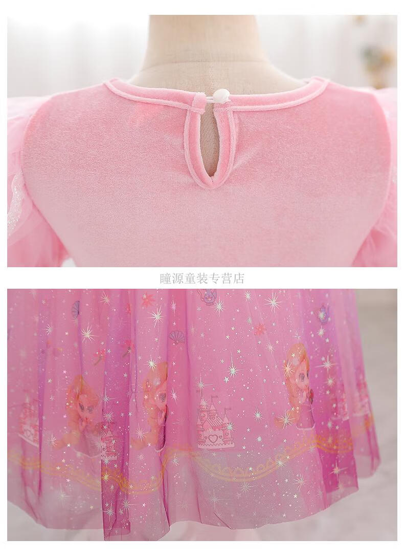 G.duck Elsa Princess Dress Girls Spring Autumn Winter 2025 New Long Sleeve Cute Birthday Puffy Mesh Midi Dress Q22209 Pink Single Skirt + Veil Velvet Fabric 110 110cm (Suitable for Height 100-110cm)