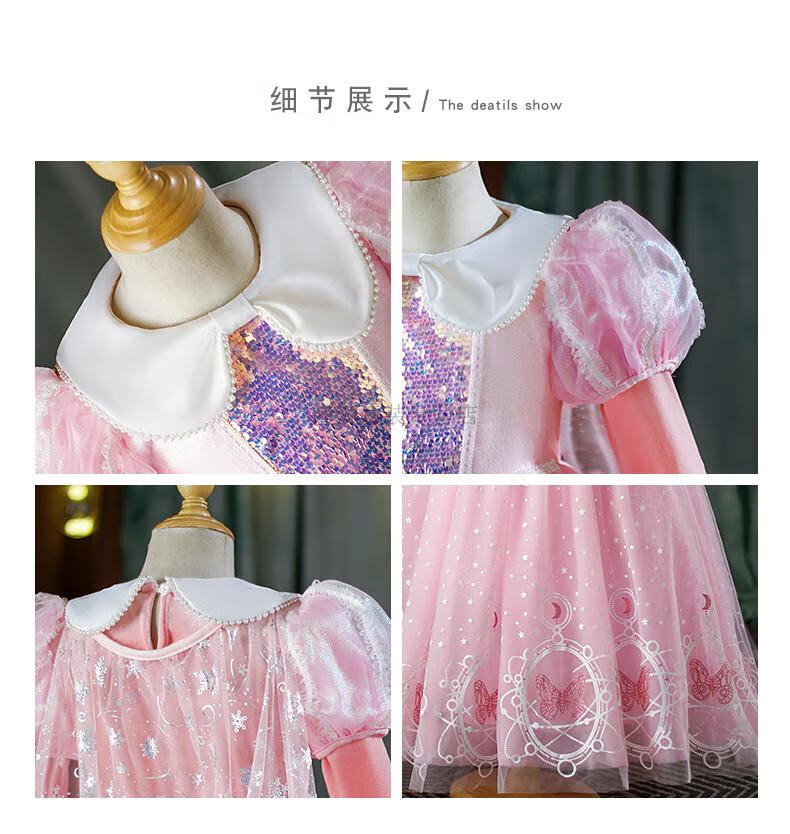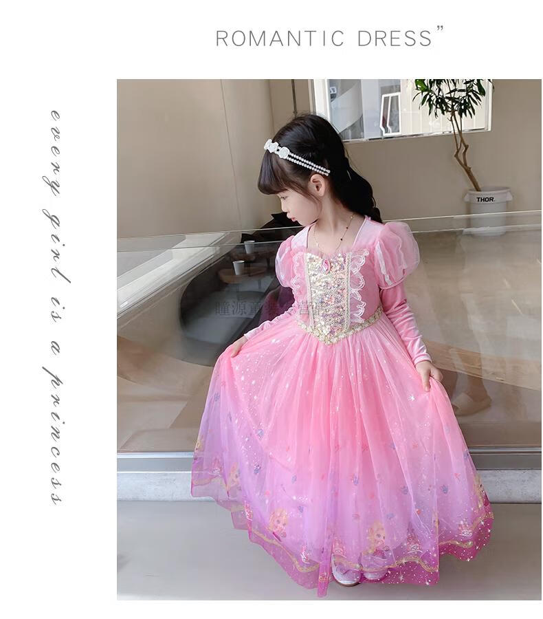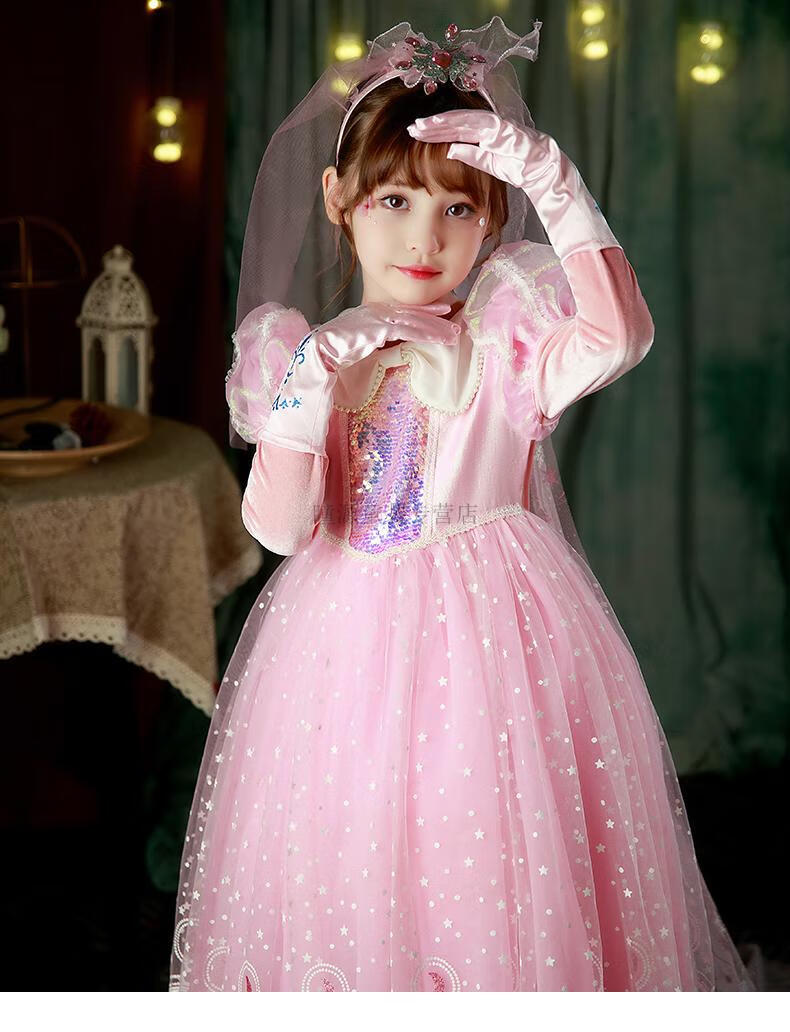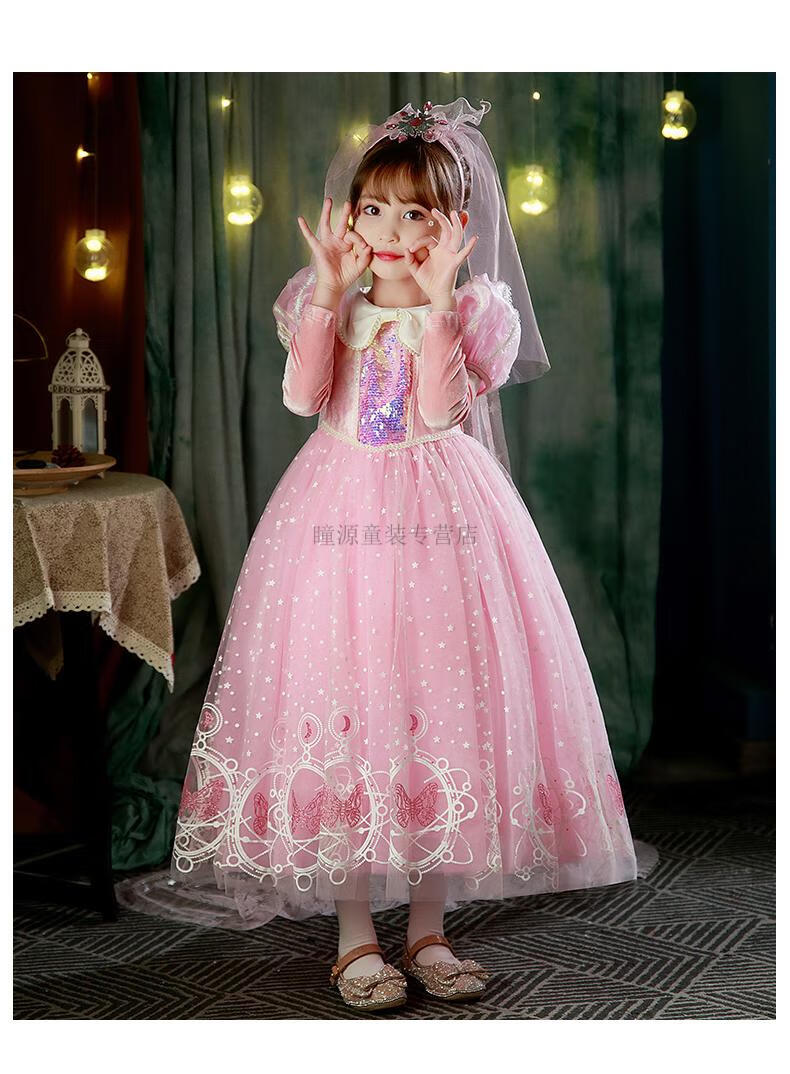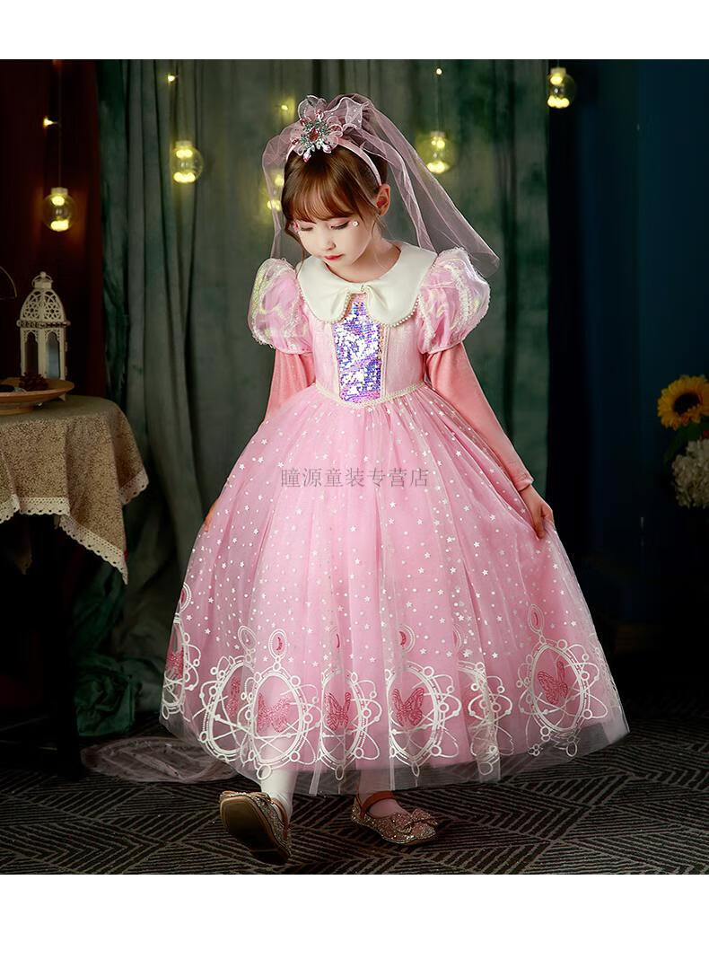 G.duck Elsa Princess Dress Girls Spring Autumn Winter 2025 New Long Sleeve Cute Birthday Puffy Mesh Midi Dress Q22209 Pink Single Skirt + Veil Velvet Fabric 110 110cm (Suitable for Height 100-110cm)