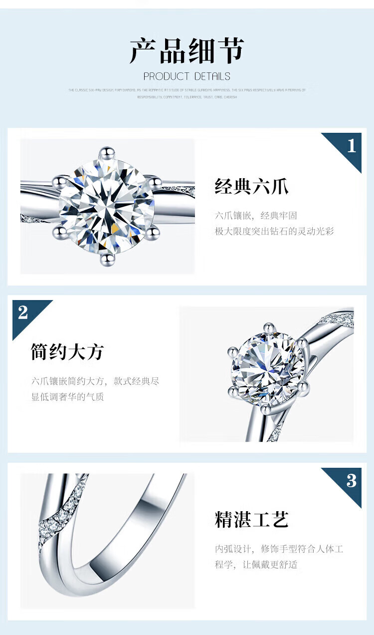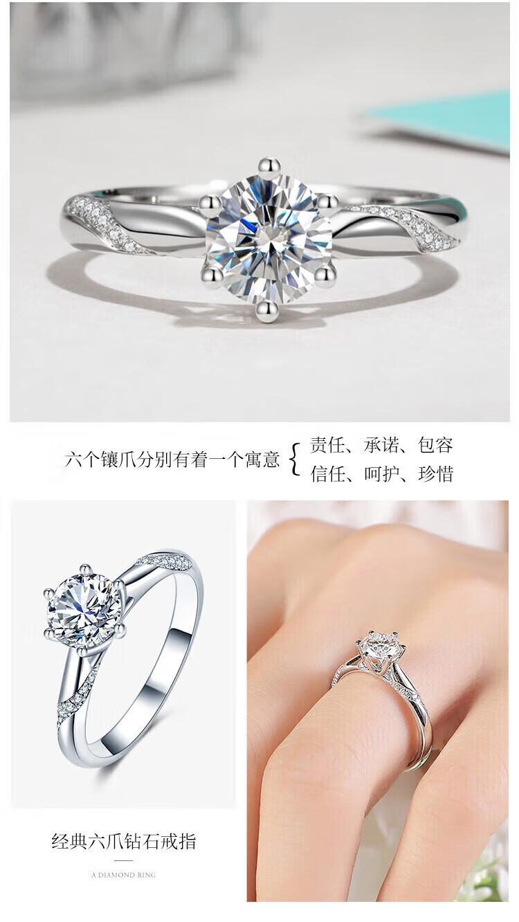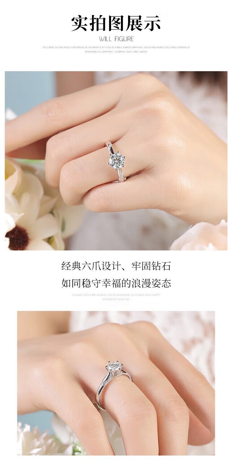 DR one carat moissanite platinum diamond ring D grade wedding ring Valentine's Day confession birthday gift for girlfriend 1 carat moissanite platinum diamond ring/D grade default opening adjustable size