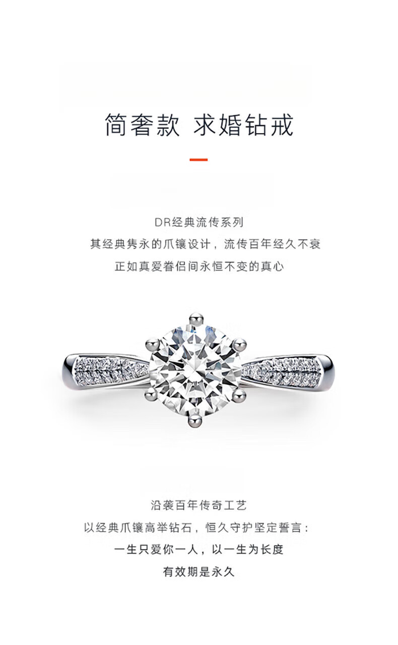 DR Proposal Diamond Ring K Gold Platinum PT950 Classic Six-Prong Simple Luxury Moissanite Diamond Ring Valentine's Day Birthday Gift 1 Carat D-E Color/Extreme White Gift Box + Certificate PT950 Closed (Remark Number)