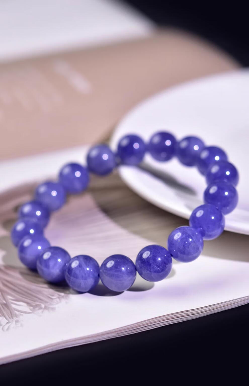 DRJEFUN Tanzanite Bracelet for Women and Men, Crystal Agate, Jadeite, Blue Gemstone Scattered Beads, Niche Colorful Treasure Bracelet, Collectible Approximately 4.5mm (Three Circles)