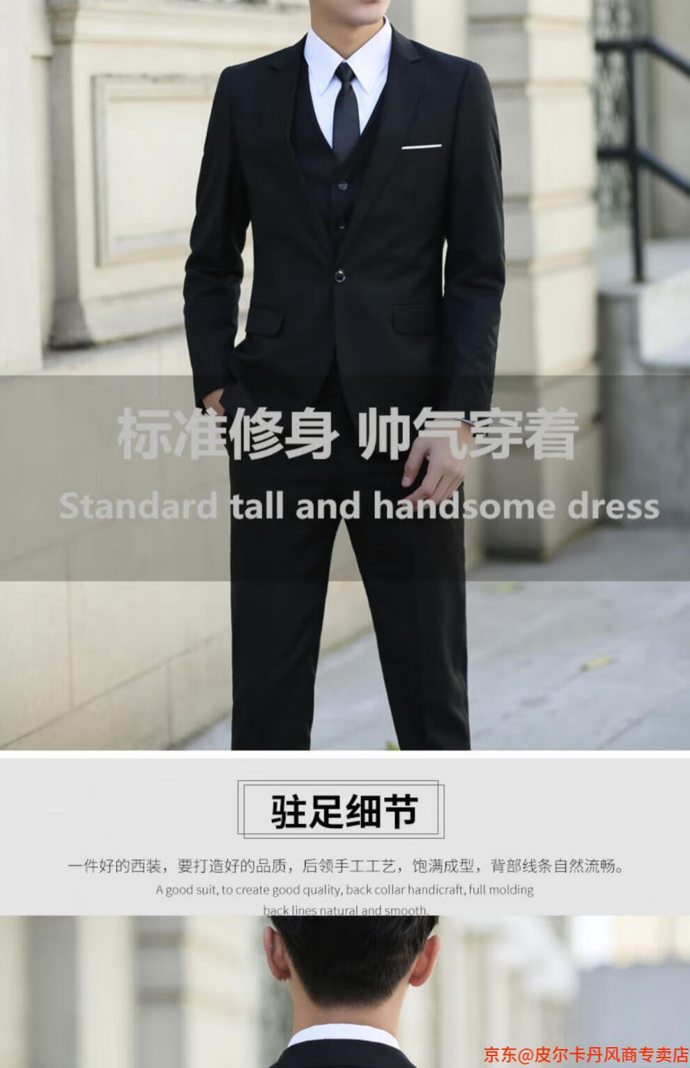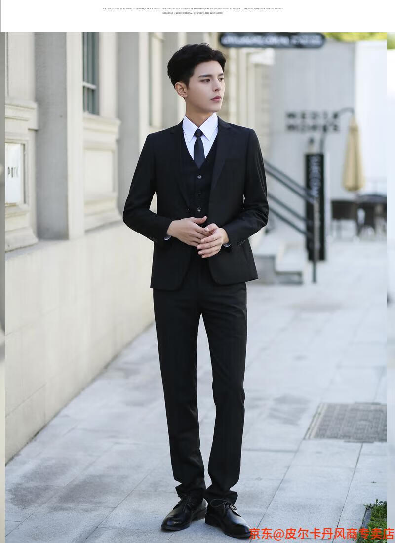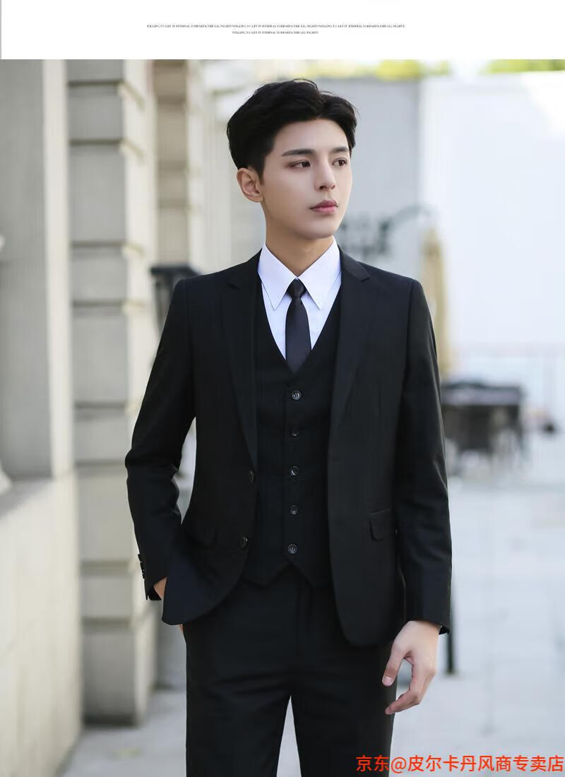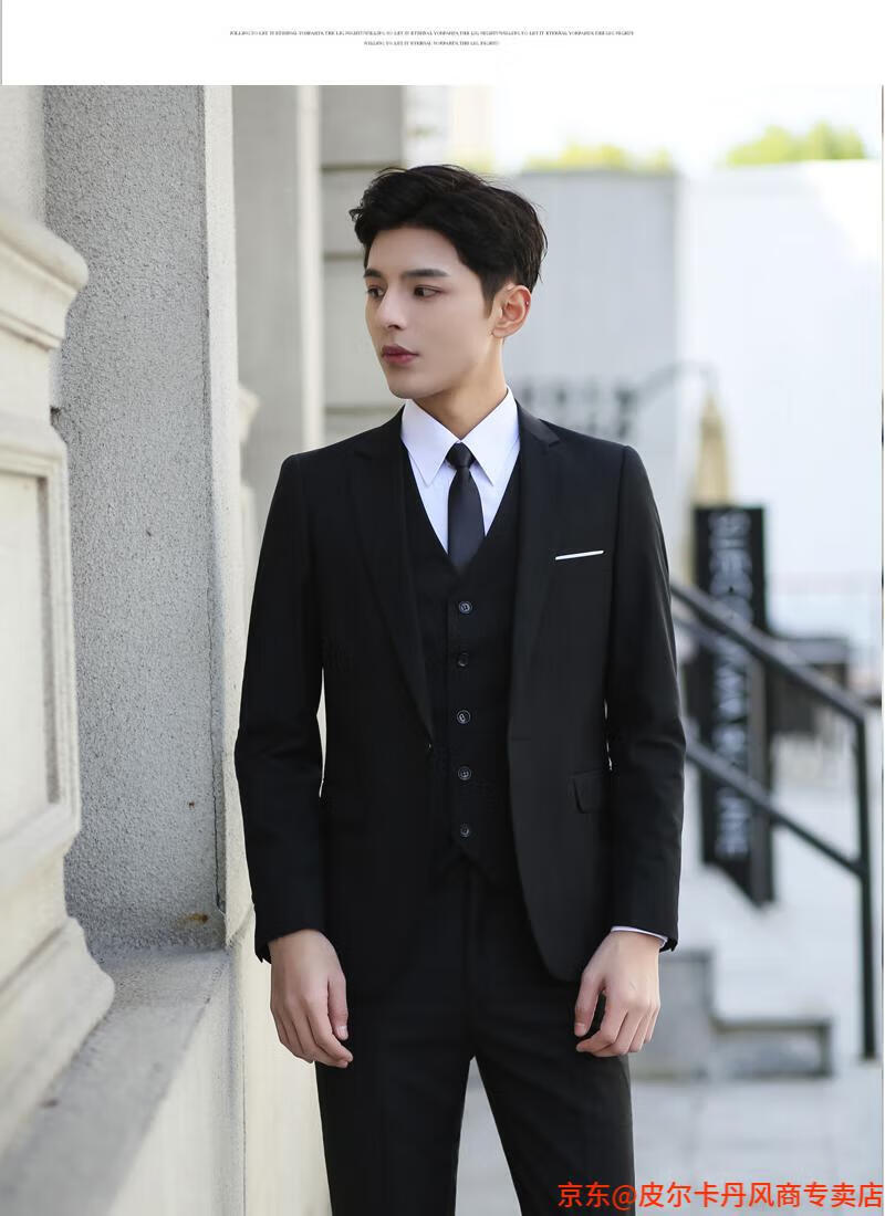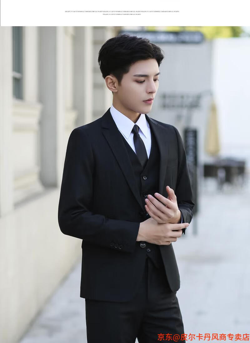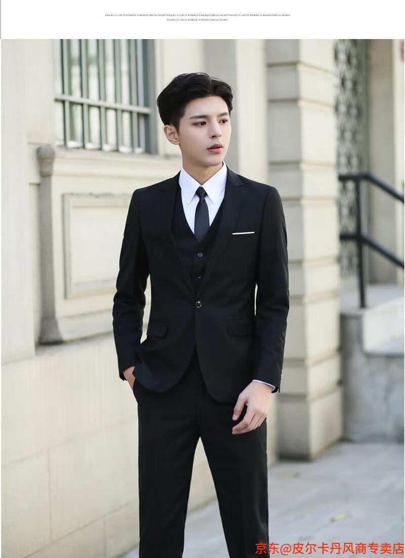 Pierre Cardin brand high school student adult dress suit boys suit 18-year-old student suit men's professional wear Korean standard two-button black suit + shirt + trousers + belt + 5XL 200-recommended 190-205Jin Jin is equal to 0.5 kg