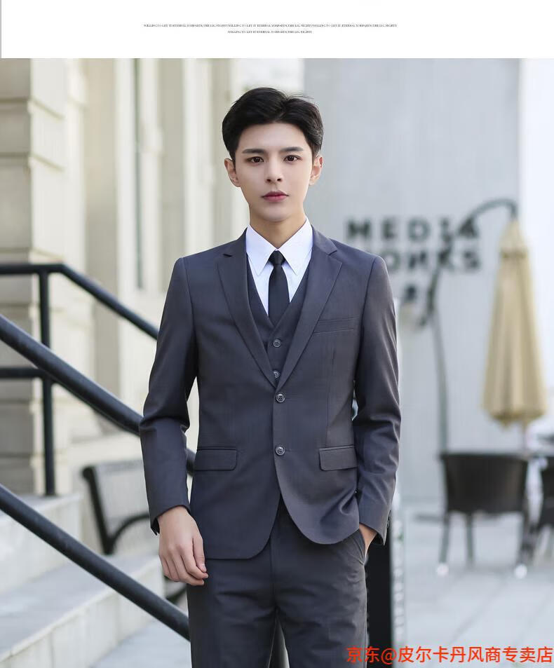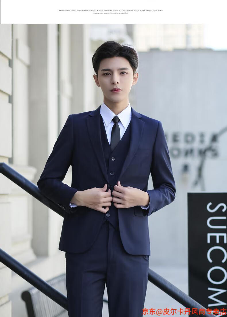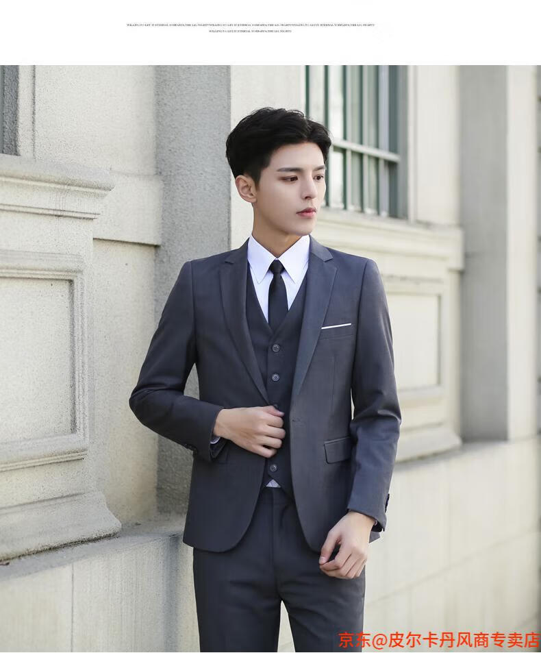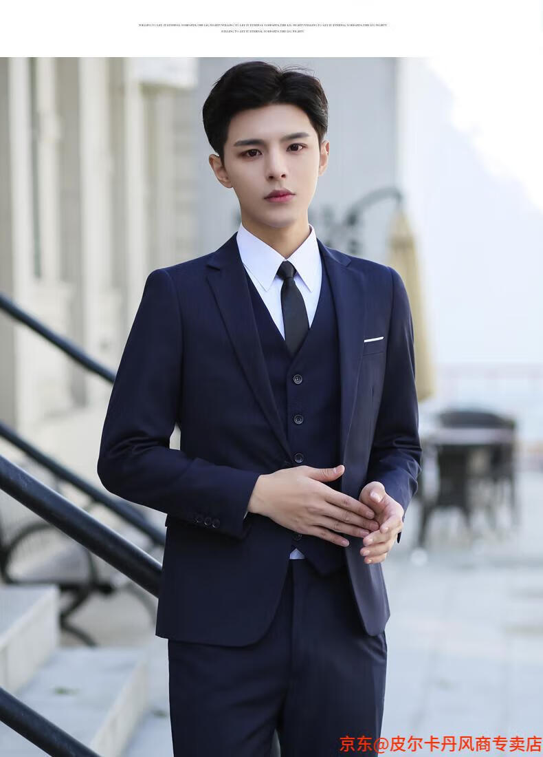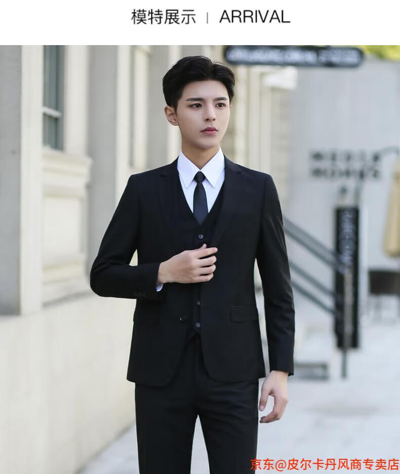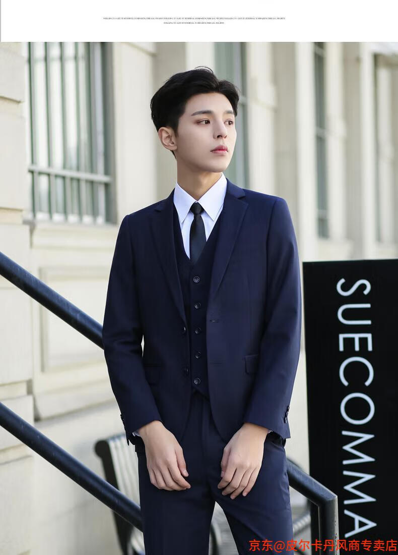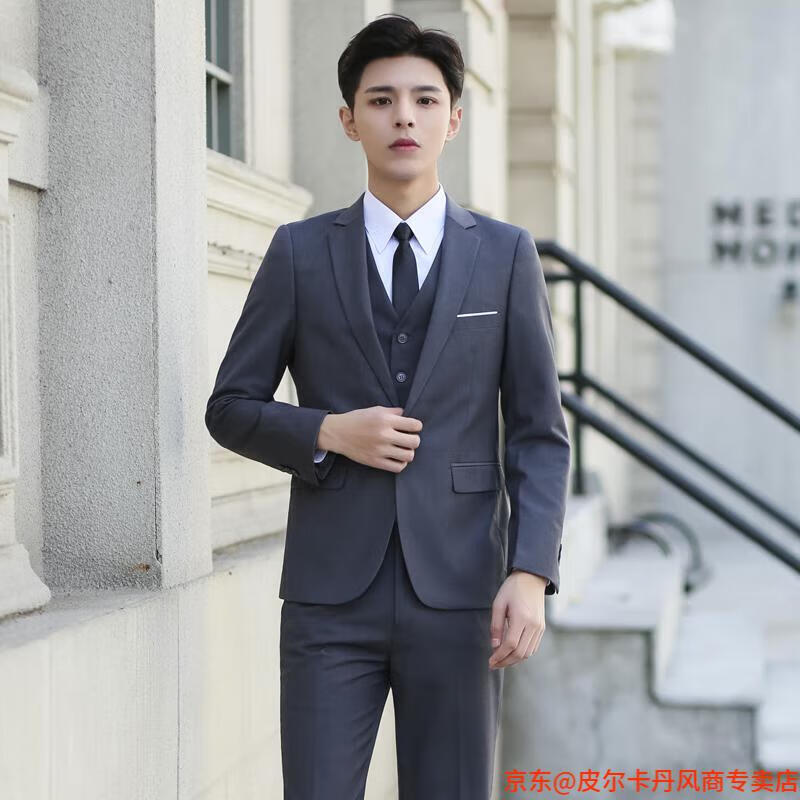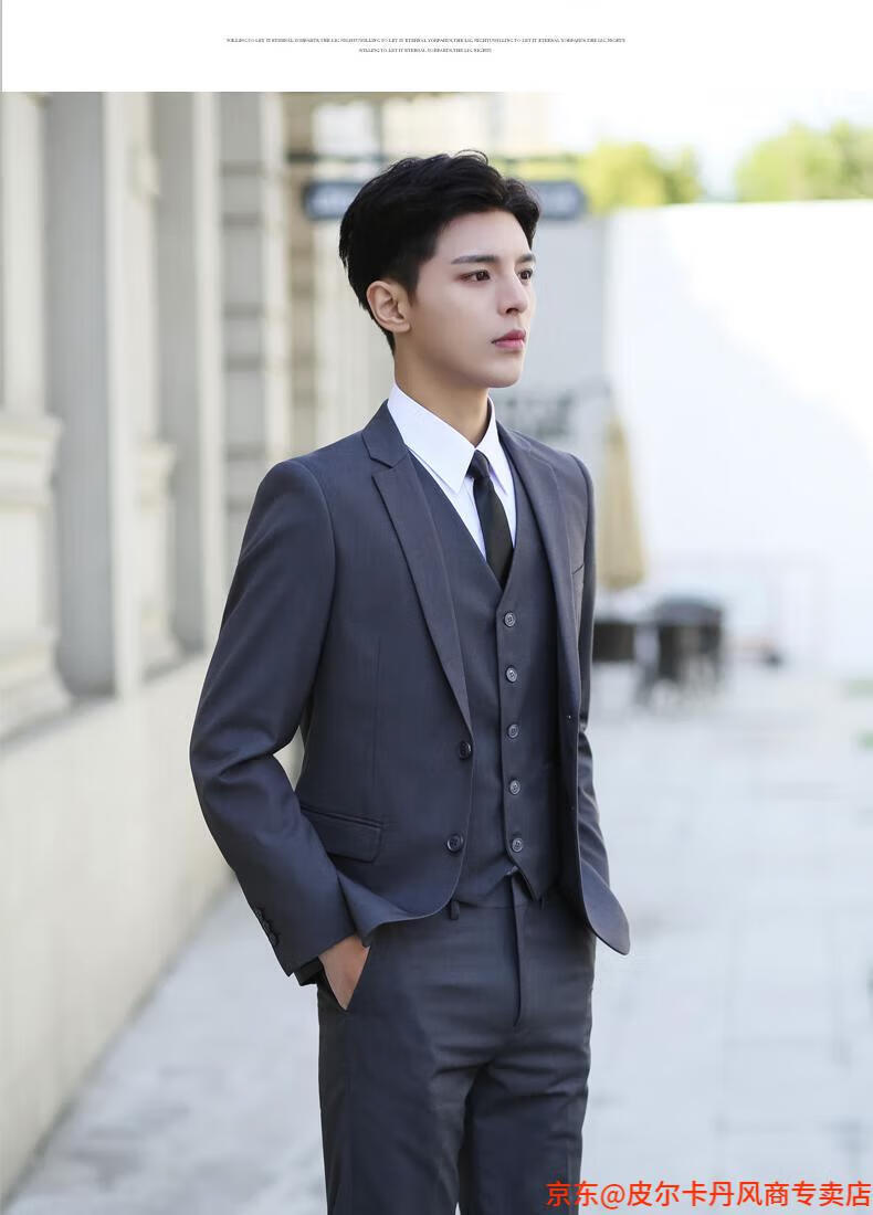 Pierre Cardin brand high school student adult dress suit boys suit 18-year-old student suit men's professional wear Korean standard two-button black suit + shirt + trousers + belt + 5XL 200-recommended 190-205Jin Jin is equal to 0.5 kg