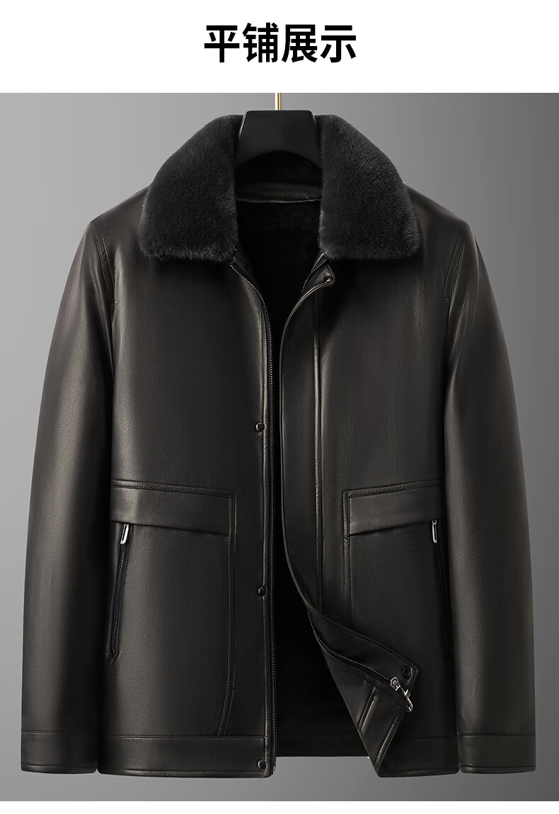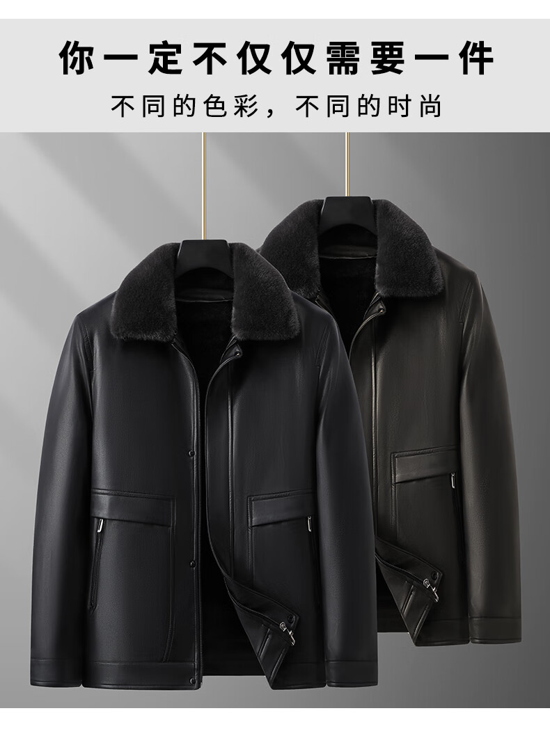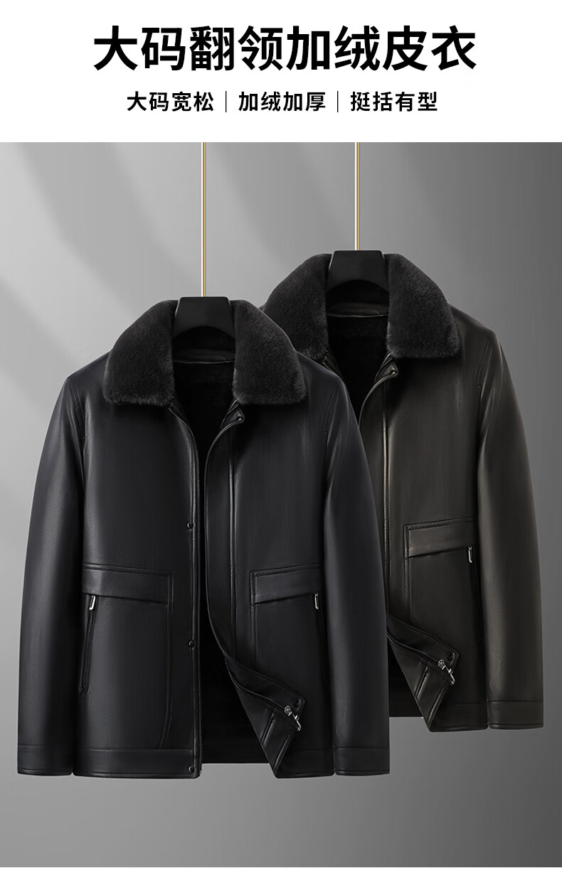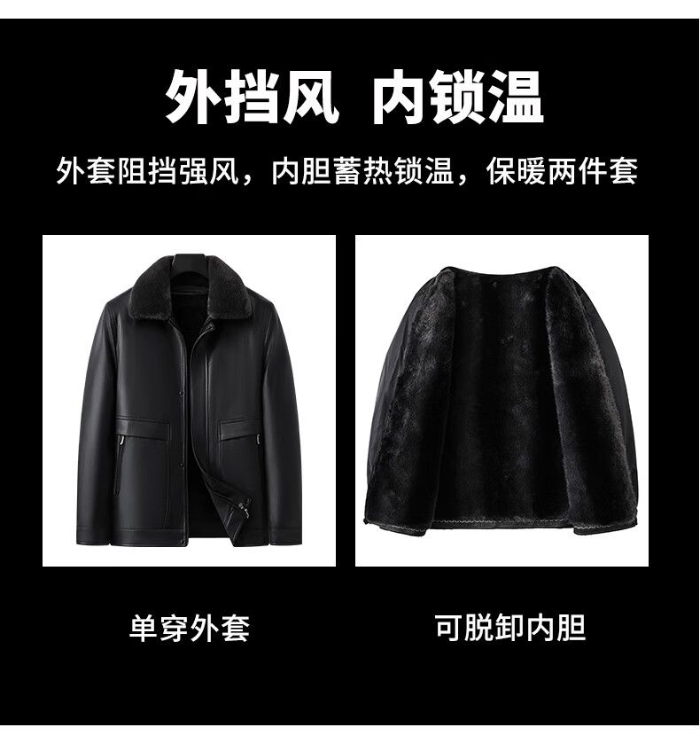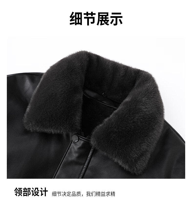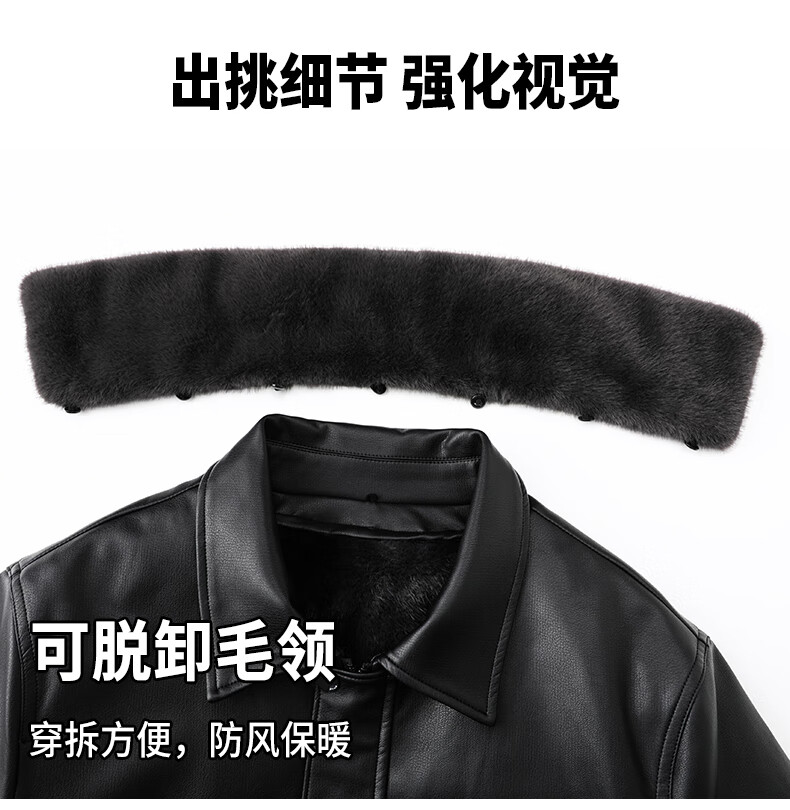 九九王九牧王带毛领皮衣男士加大码加绒保暖外套冬季胖子可脱卸内胆翻领 黑色 L (建议100-120斤)