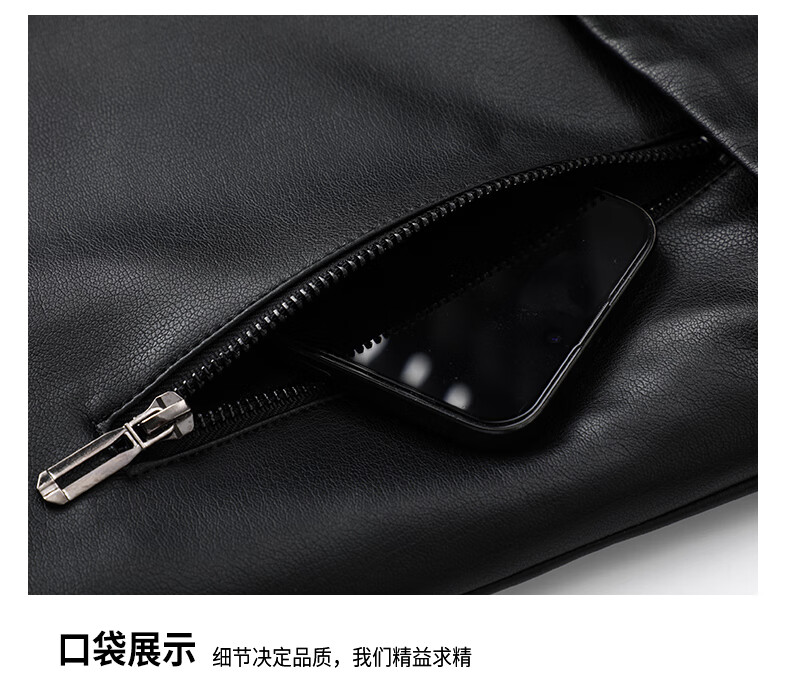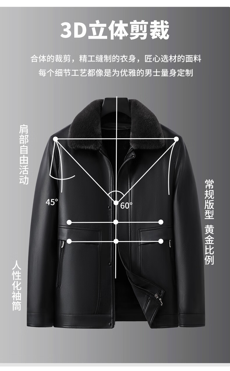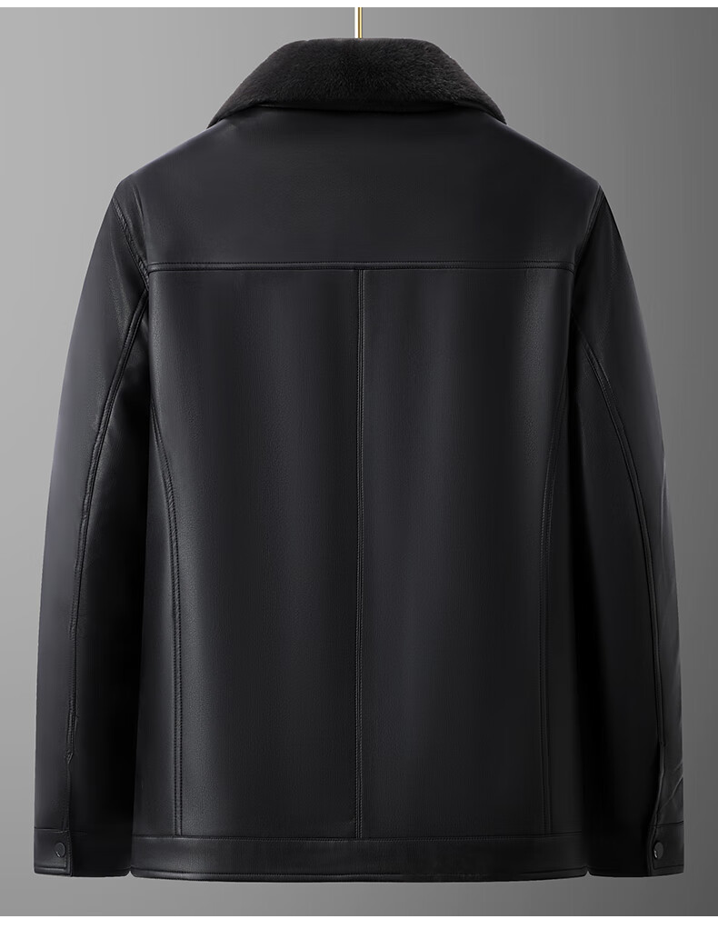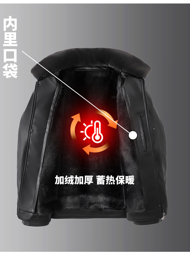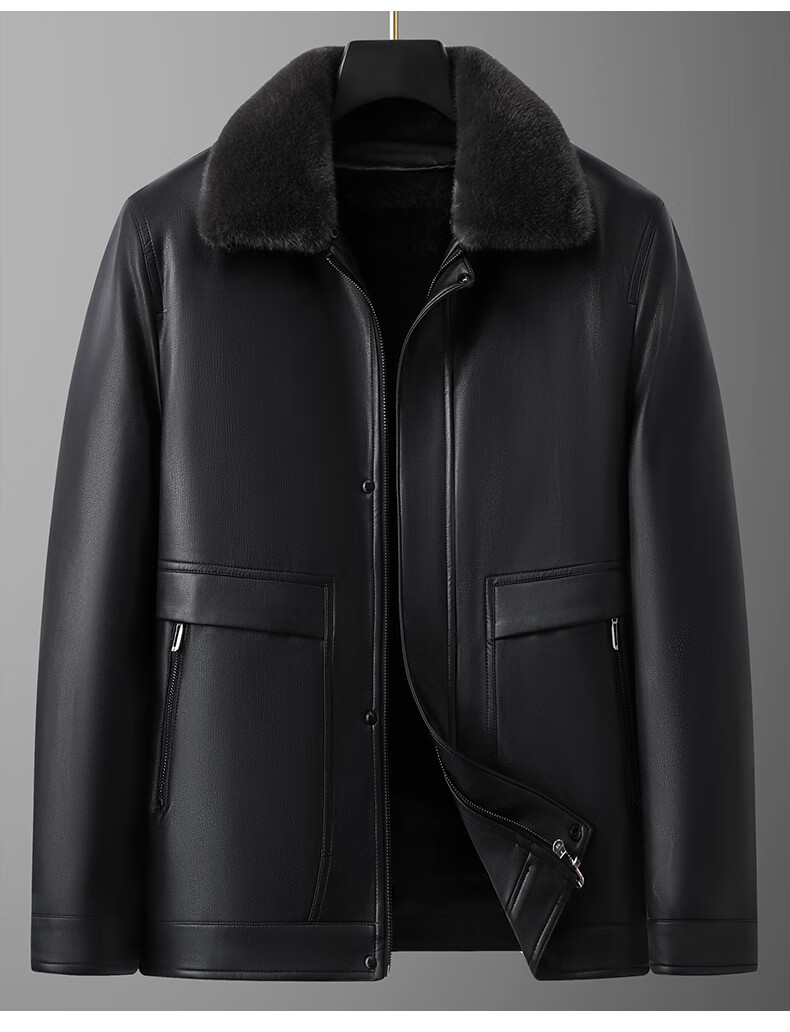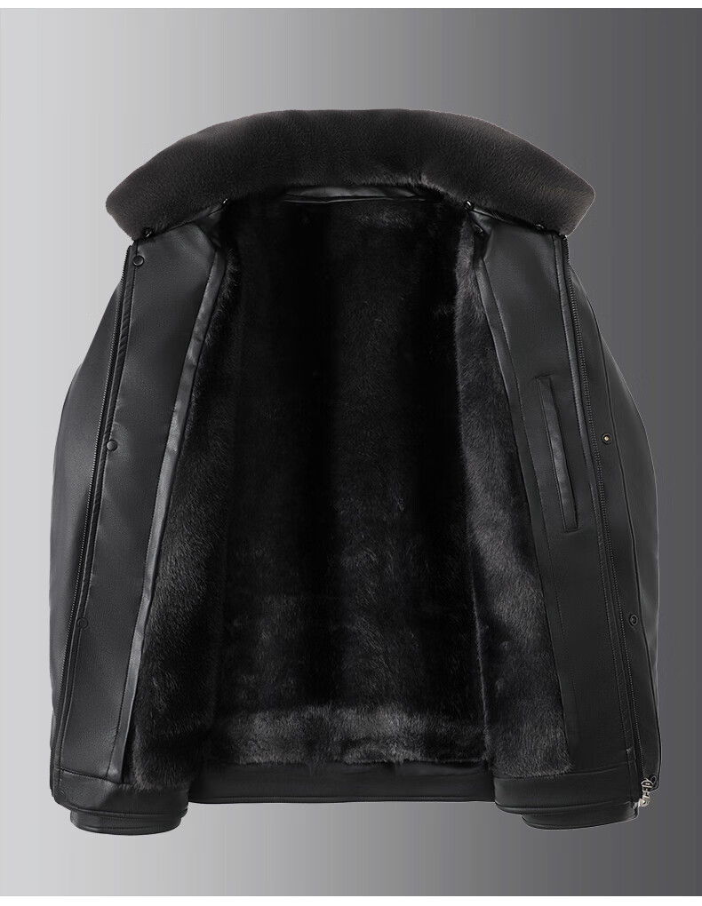 九九王九牧王带毛领皮衣男士加大码加绒保暖外套冬季胖子可脱卸内胆翻领 黑色 L (建议100-120斤)
