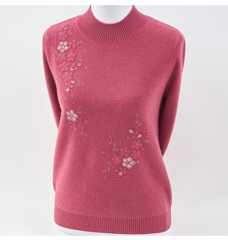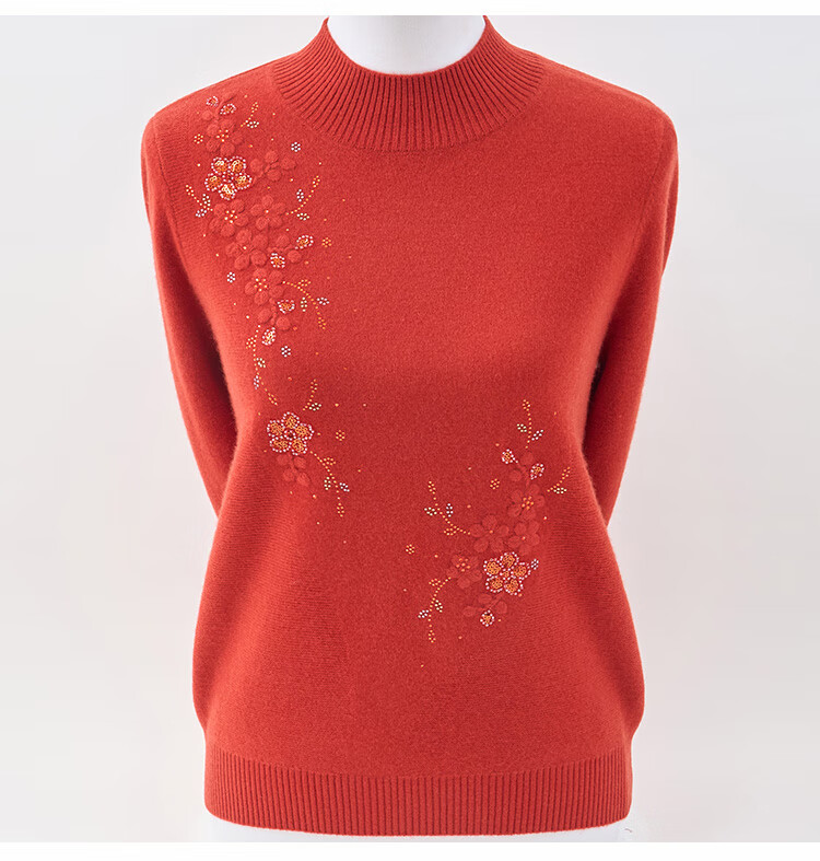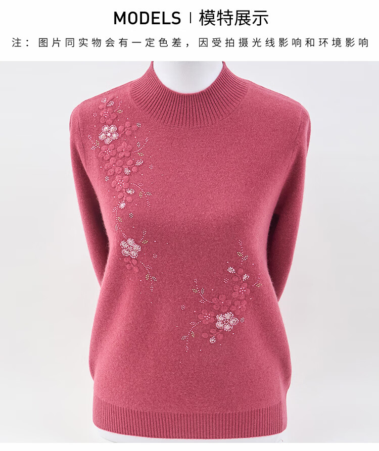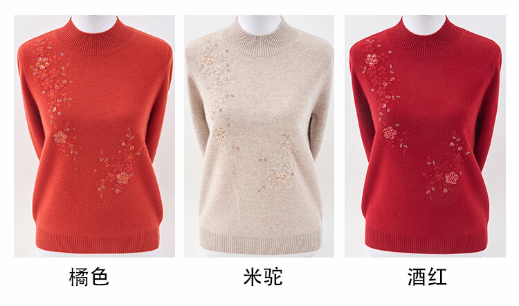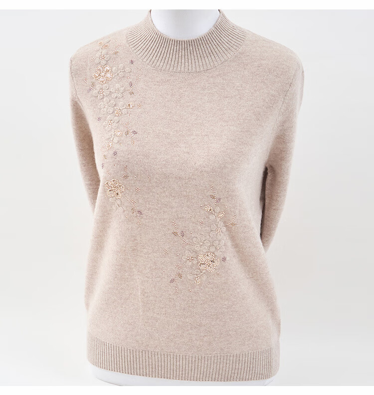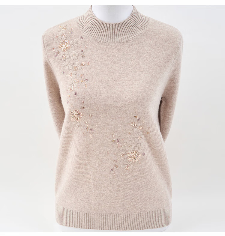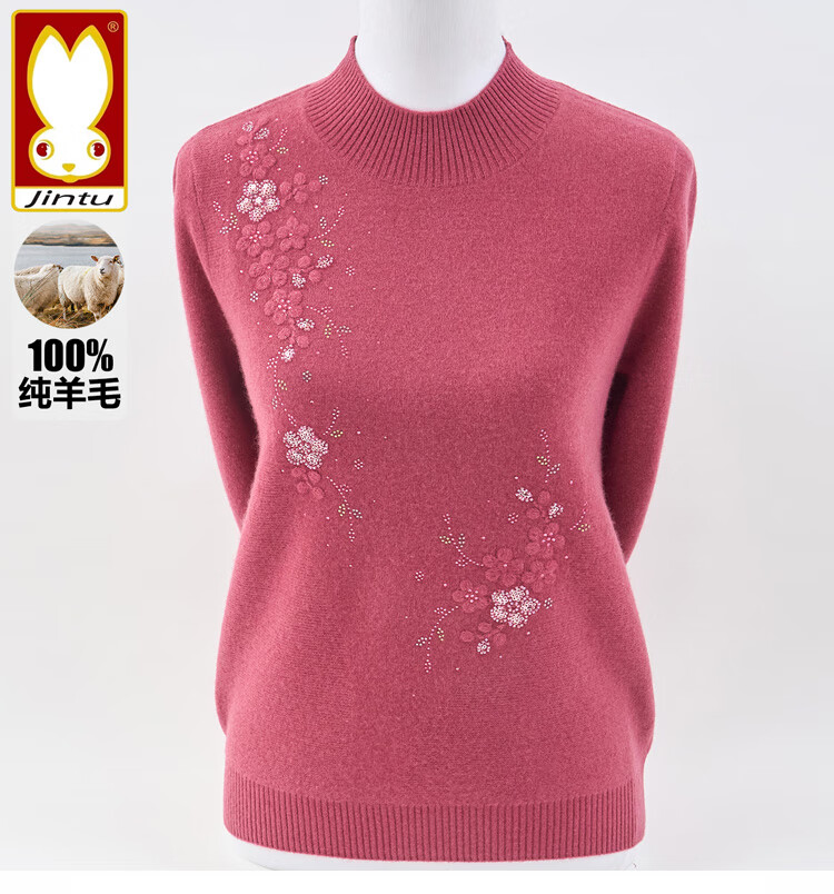 Jintu 100% Pure Wool Sweater Women's Sweater Middle-aged and Old Mothers Autumn and Winter Warm Tops Dairy Brand High-End Knitted Bottoming Sweater Beige 100% Pure Wool 2XL Recommended 120-135 Jin Jin equals 0.5 kg