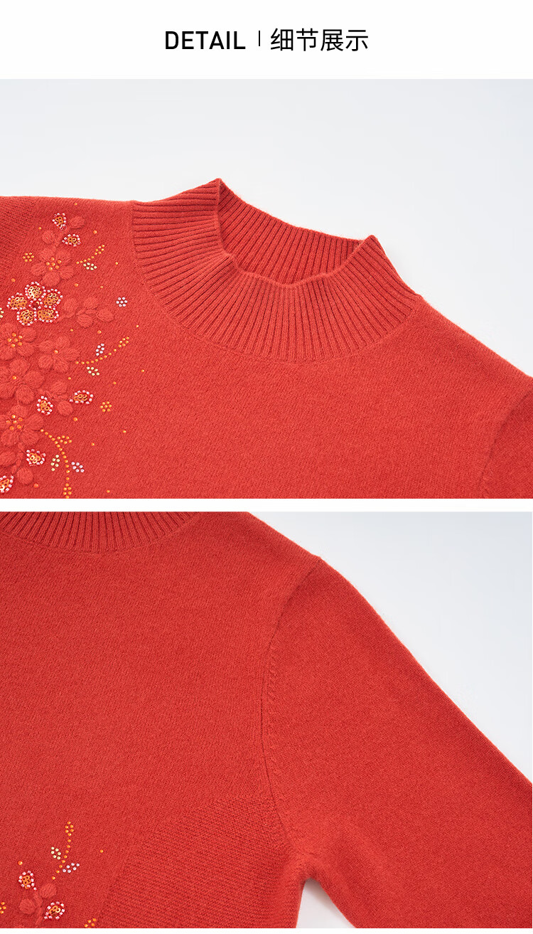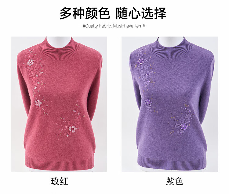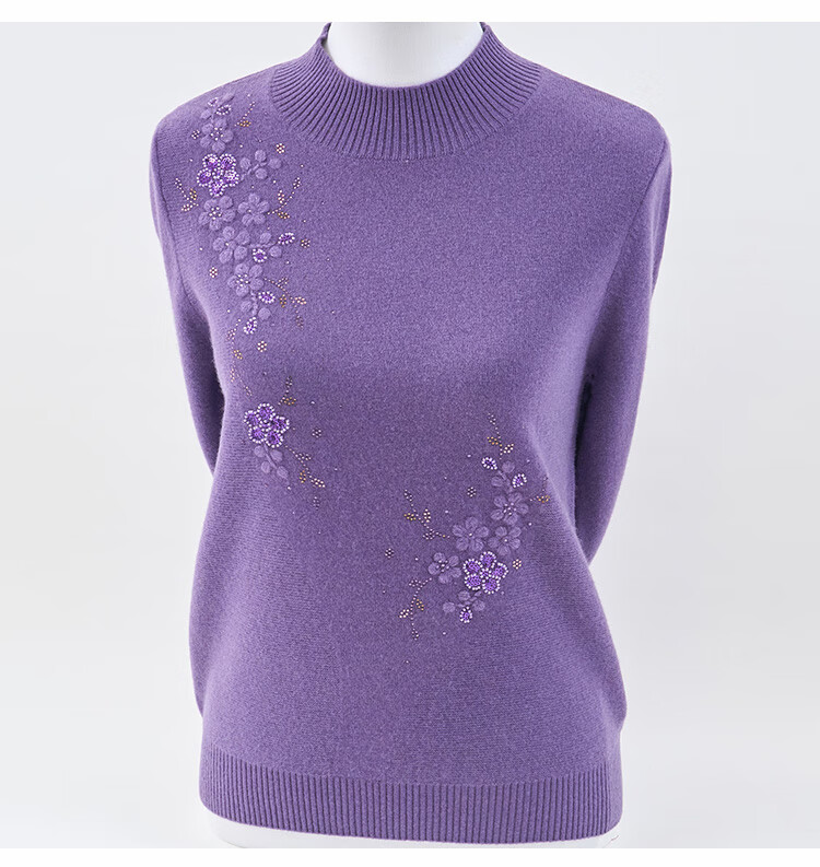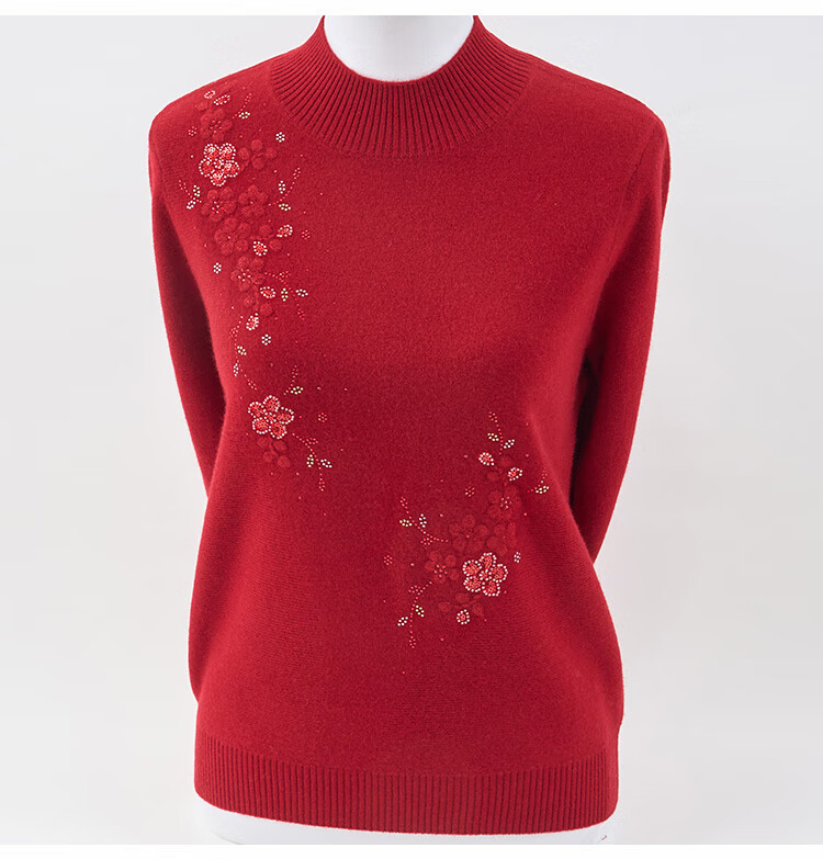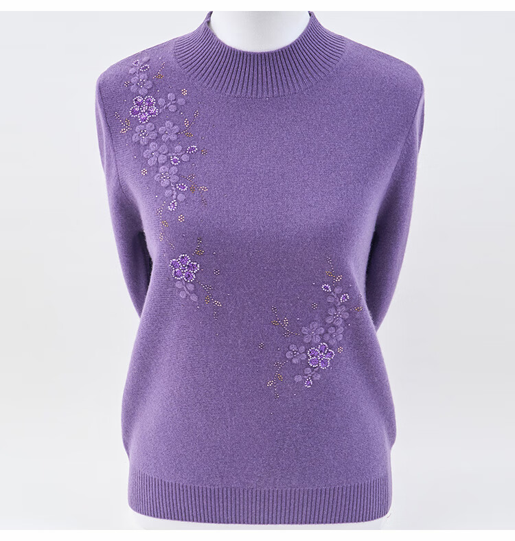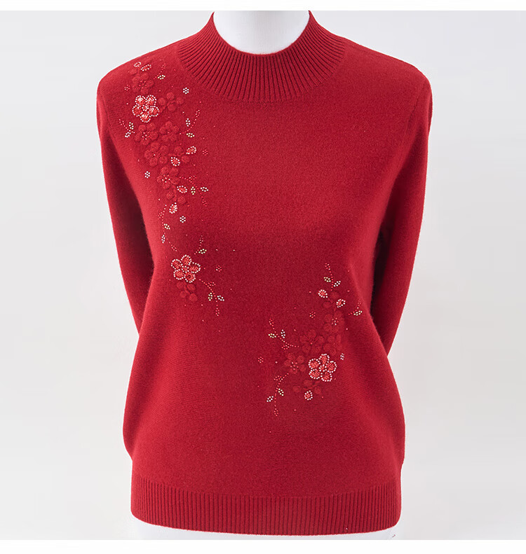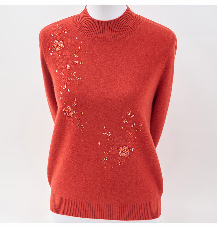 Jintu 100% Pure Wool Sweater Women's Sweater Middle-aged and Old Mothers Autumn and Winter Warm Tops Dairy Brand High-End Knitted Bottoming Sweater Beige 100% Pure Wool 2XL Recommended 120-135 Jin Jin equals 0.5 kg